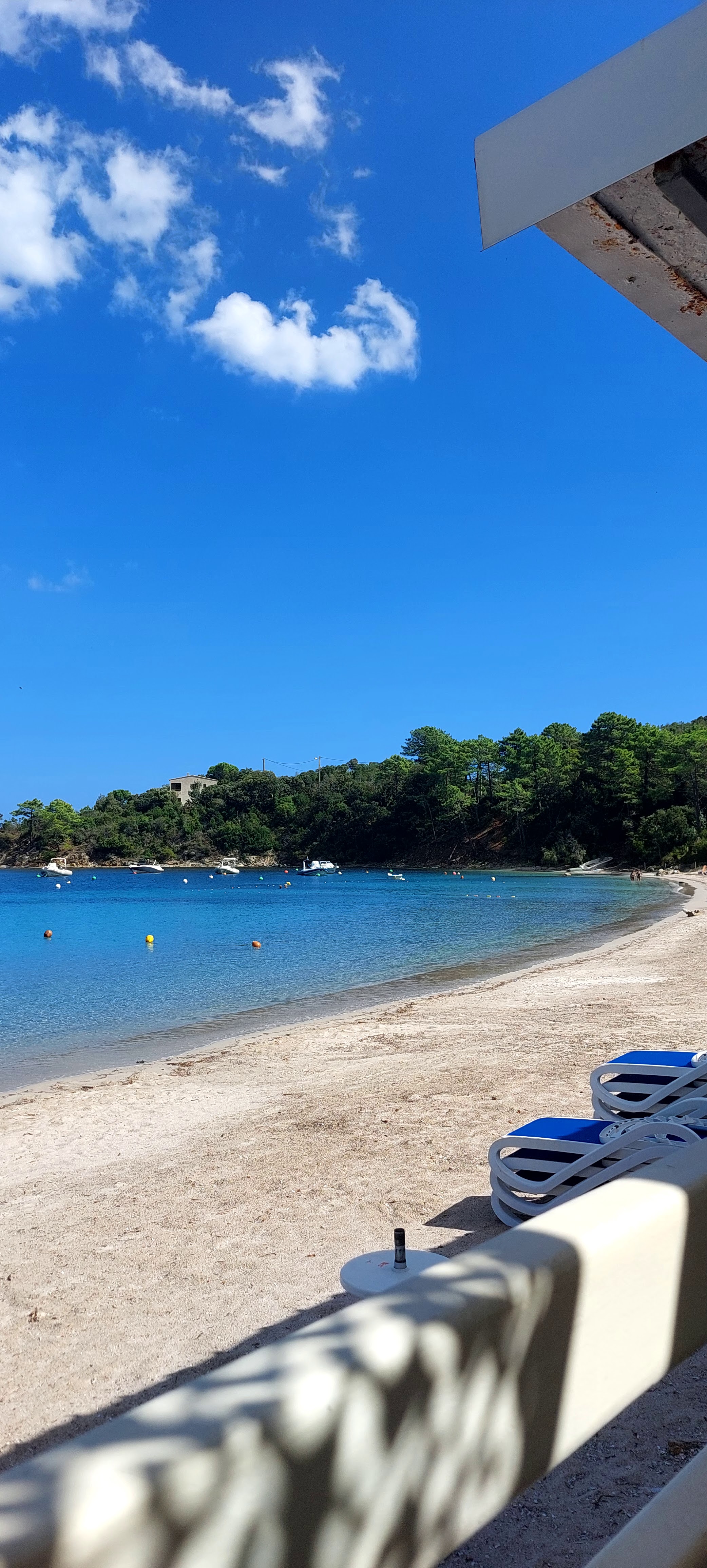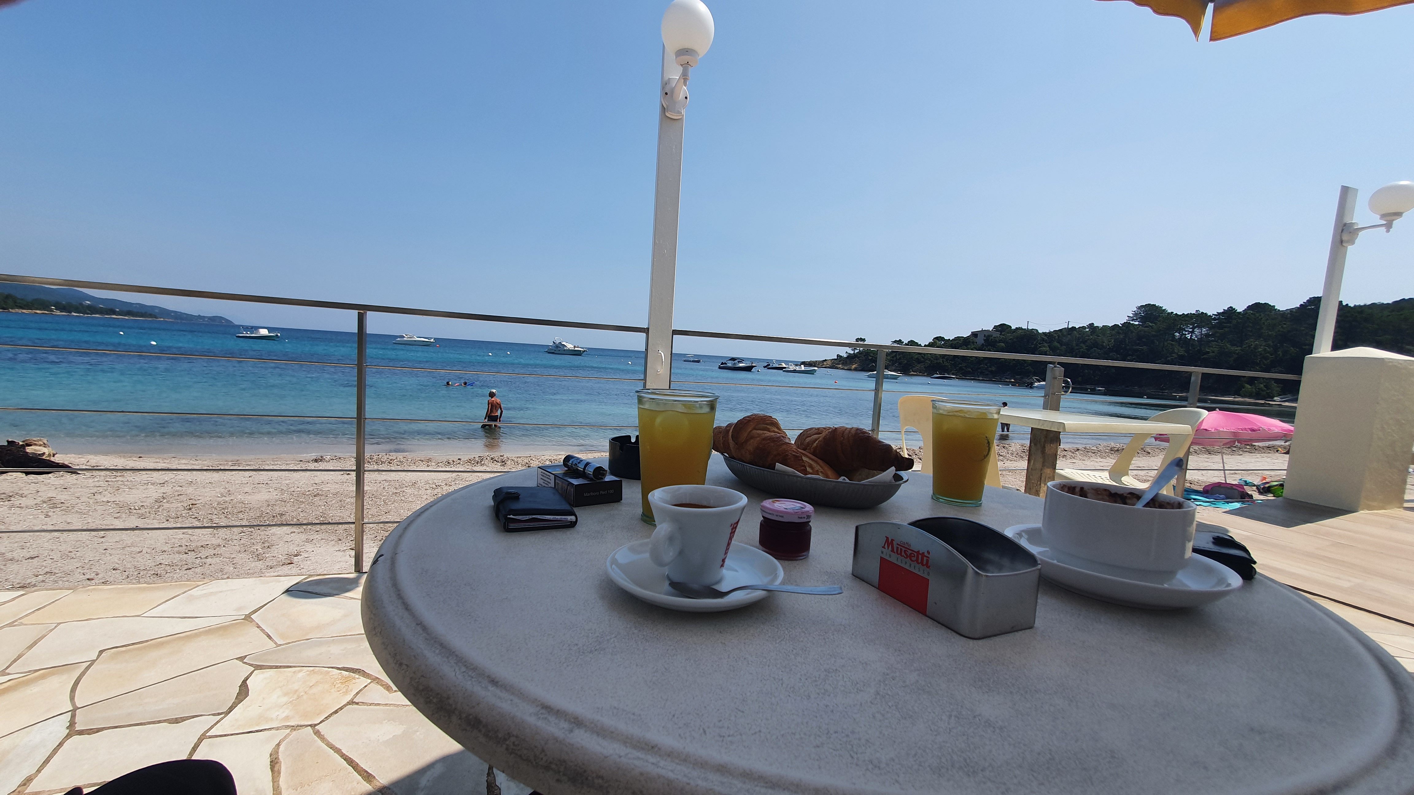 Sur la plage de favone, idéalement placé pour démarrer la journée par un café sur la plage