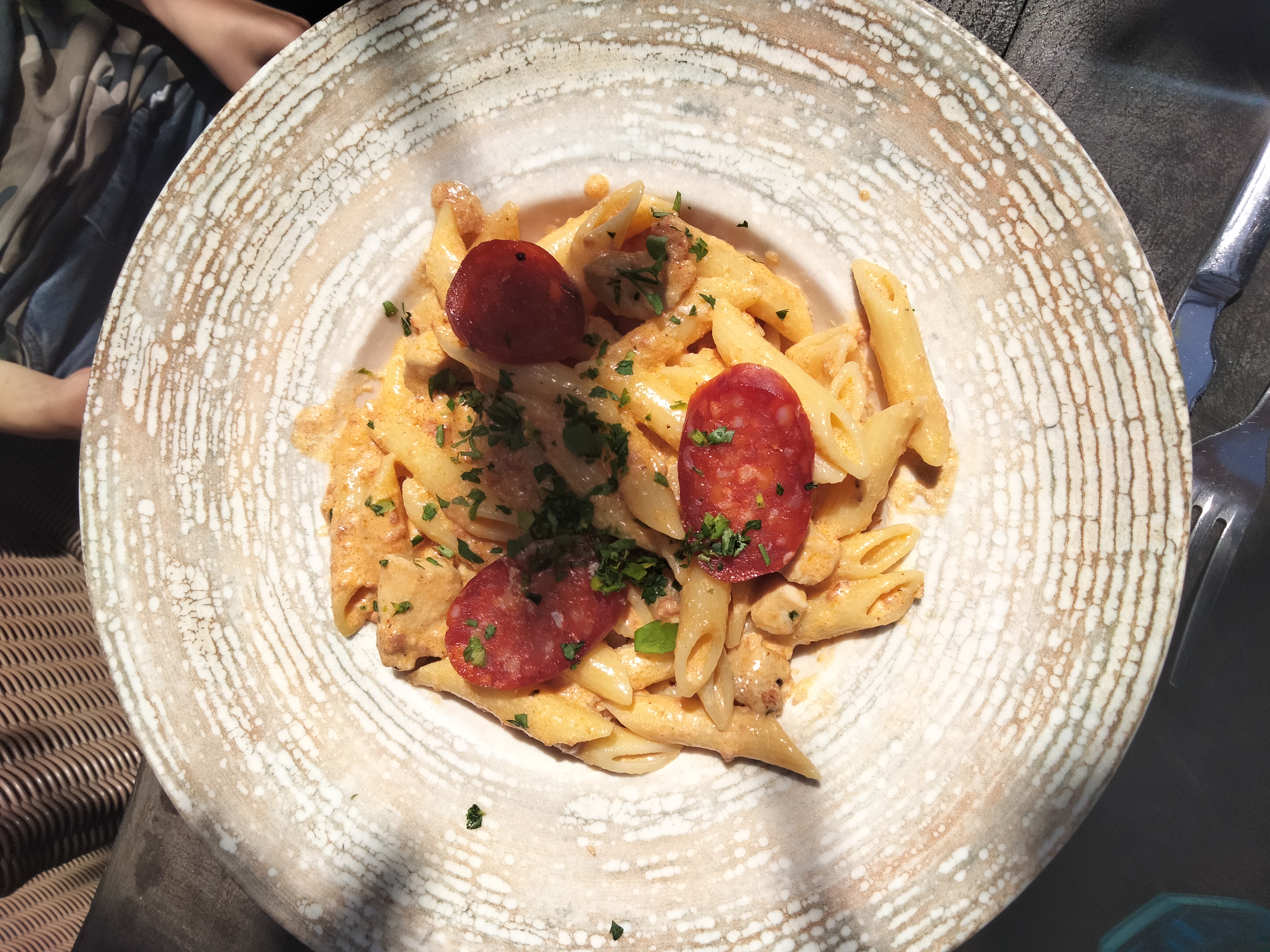 J'ai mangé des penne poulet chèvre chorizo trop trop bonne bien copieux franchement bon resto au bord de la plage avec vue sur la mer top top du top