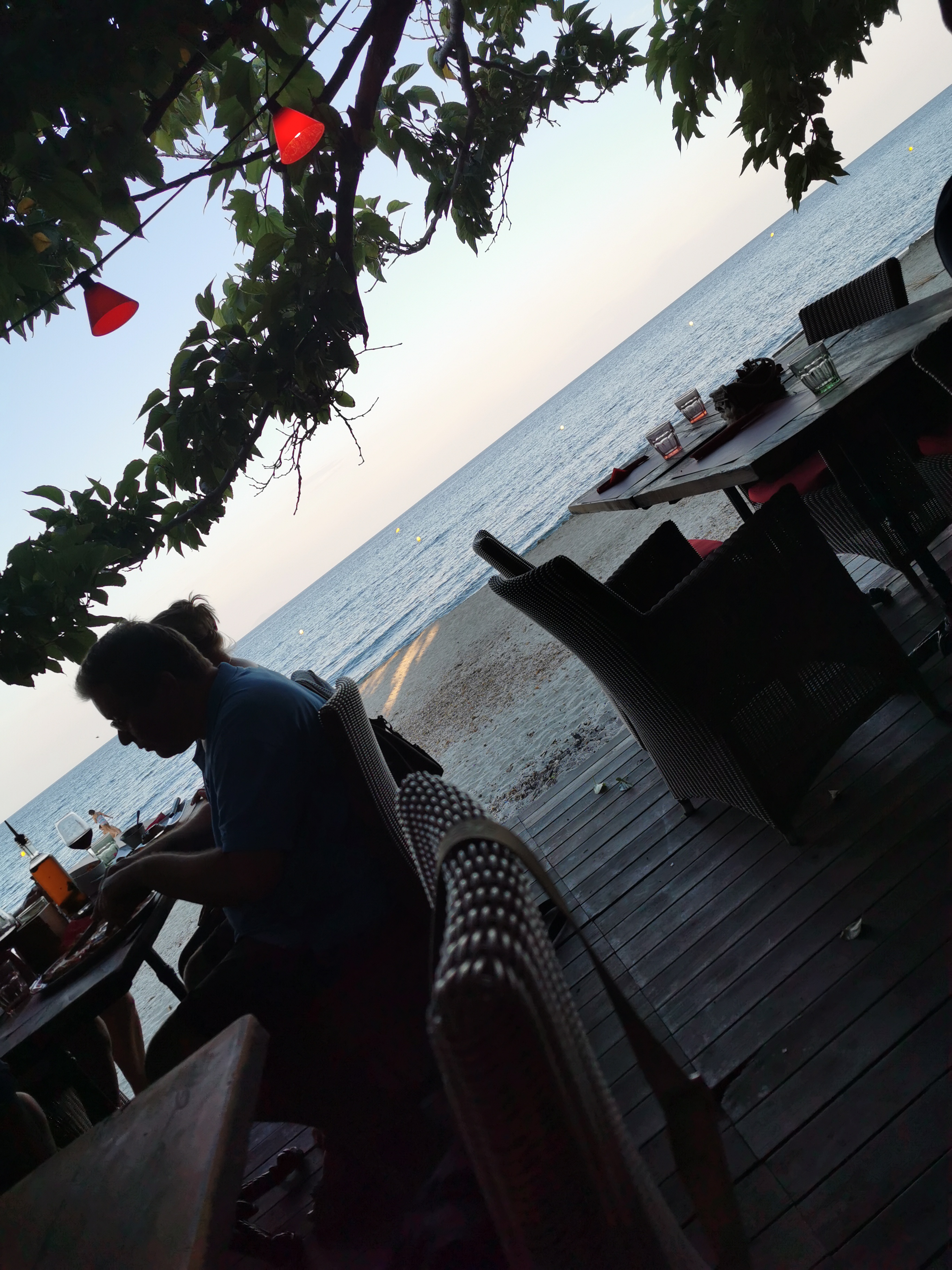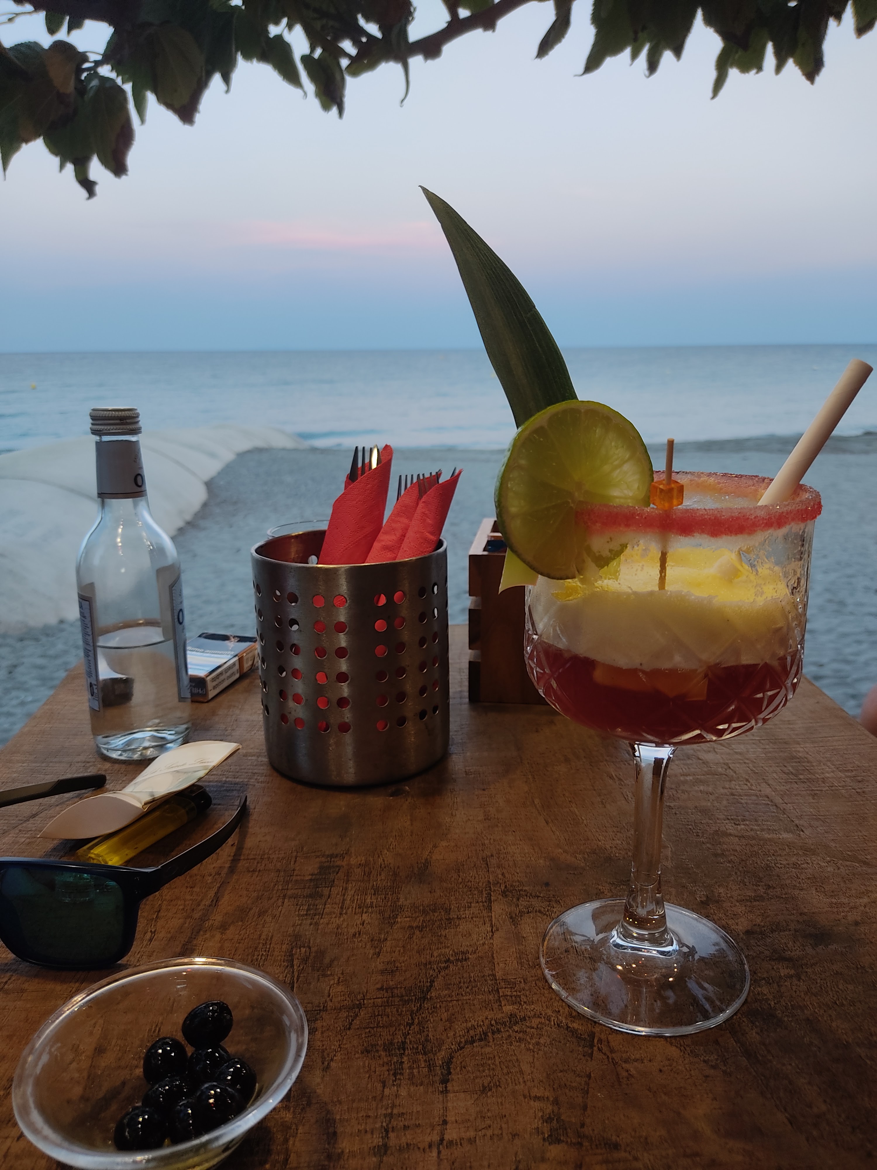 Nous sommes passé à 17h pour boire un coup, peu de monde, mais personne pour nous accueillir. Nous nous sommes installé, peut être dérangions nous le serveur dans sa mise en place car pas souriant, peu bavard, pas de carte de boisson proposée. Cadre en bord de mer sous les arbres super agréable. Impression mitigée, dommage.