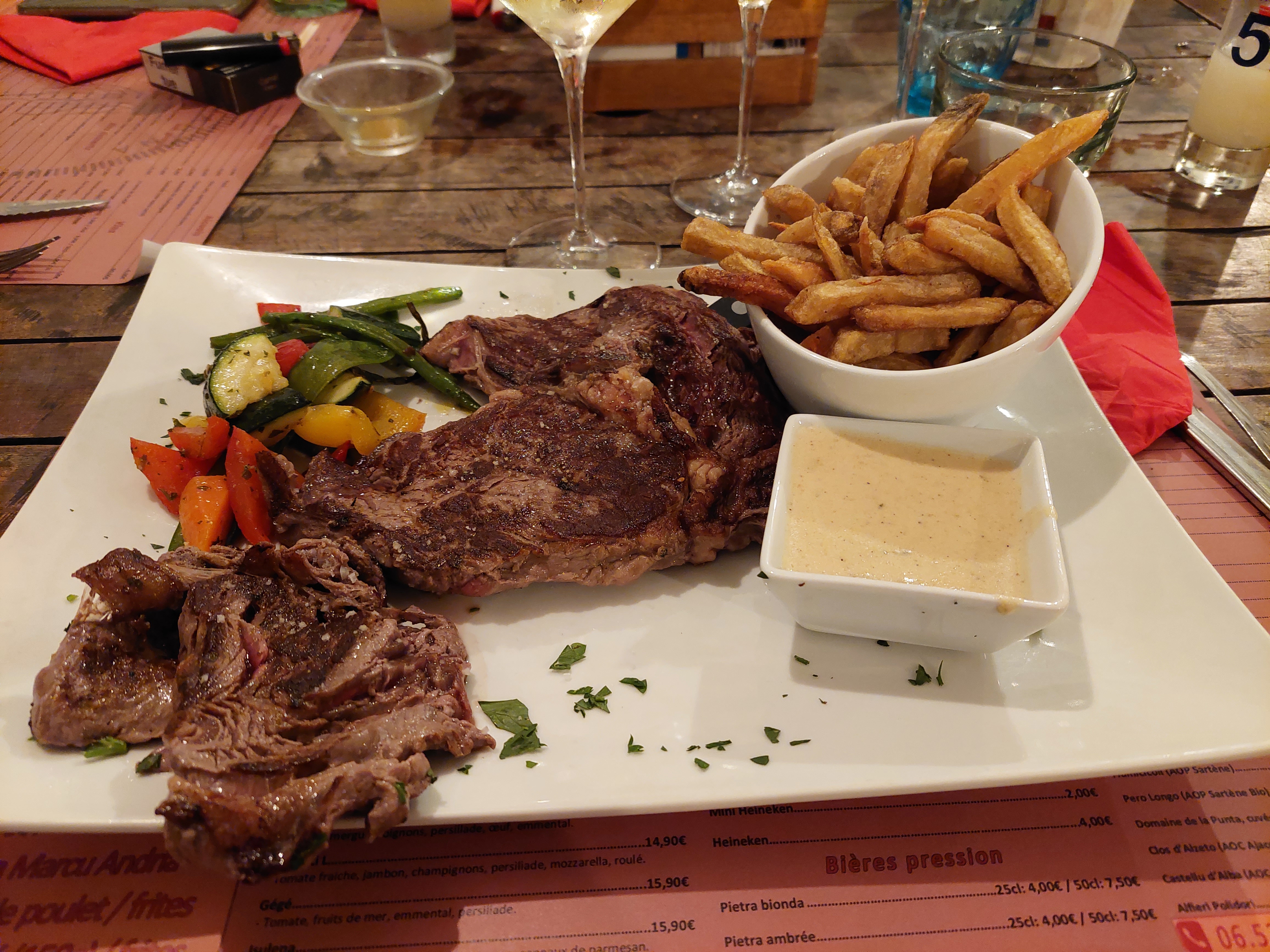 Resto de plage donc très fréquenté. On a pris une entrecôte. C'est dommage qu'elle vienne d Allemagne. Je dois dire que c'était plutôt pas mal au vu de l affluence.