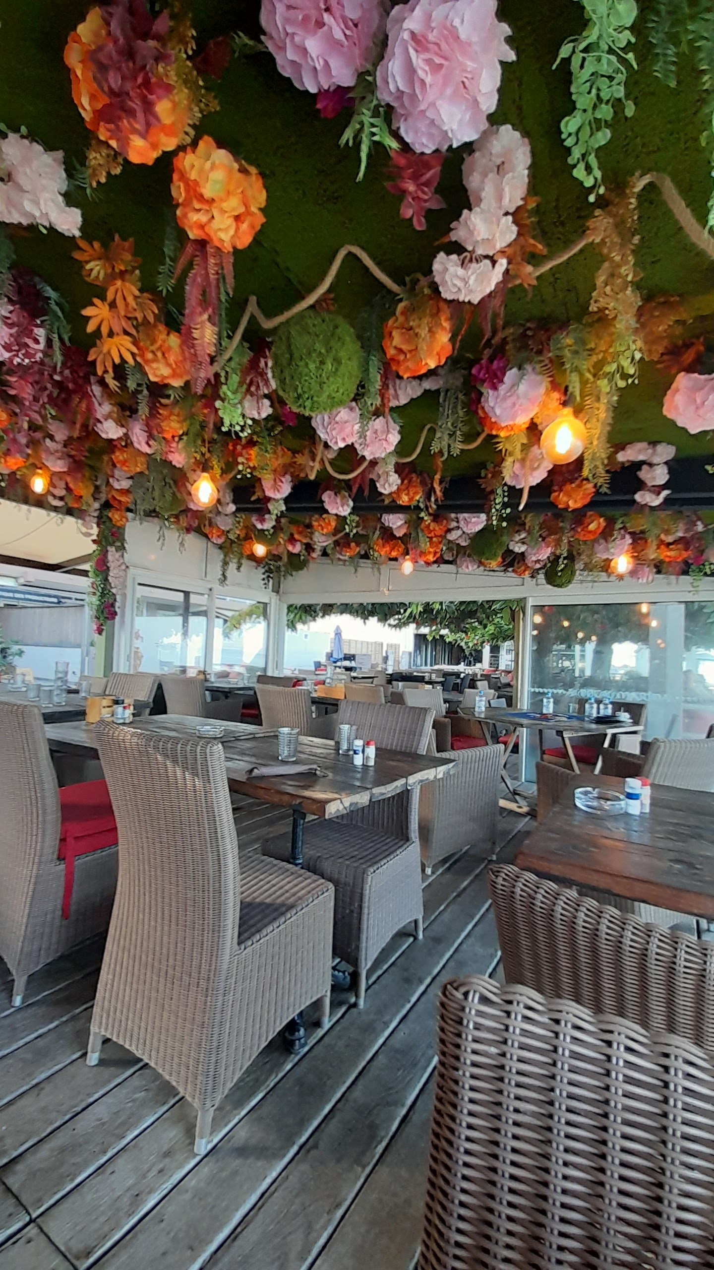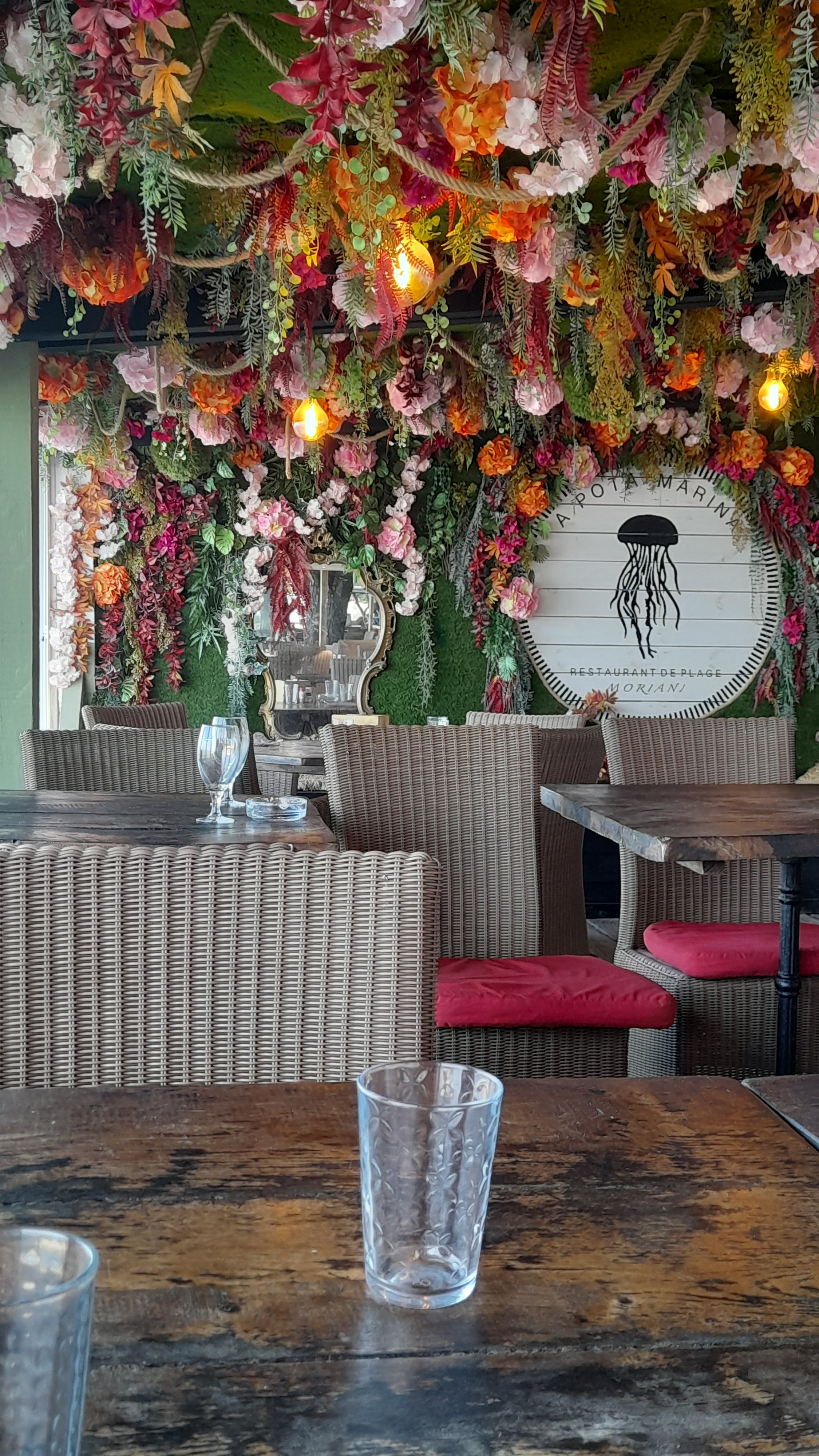 Nous sommes venu pour un EVJF, ce fut une soirée parfait !!!! Les serveurs sont à nos petit soin, ils ont mis l'ambiance pour cette belle soirée, on aurait pas pu demandé mieux. Questions plats, nous nous sommes tous régalé, de l'apéro au dessert. La décoration est magnifique le plafond de plante et de fleurs est magnifique avec ma vue sur la mer.