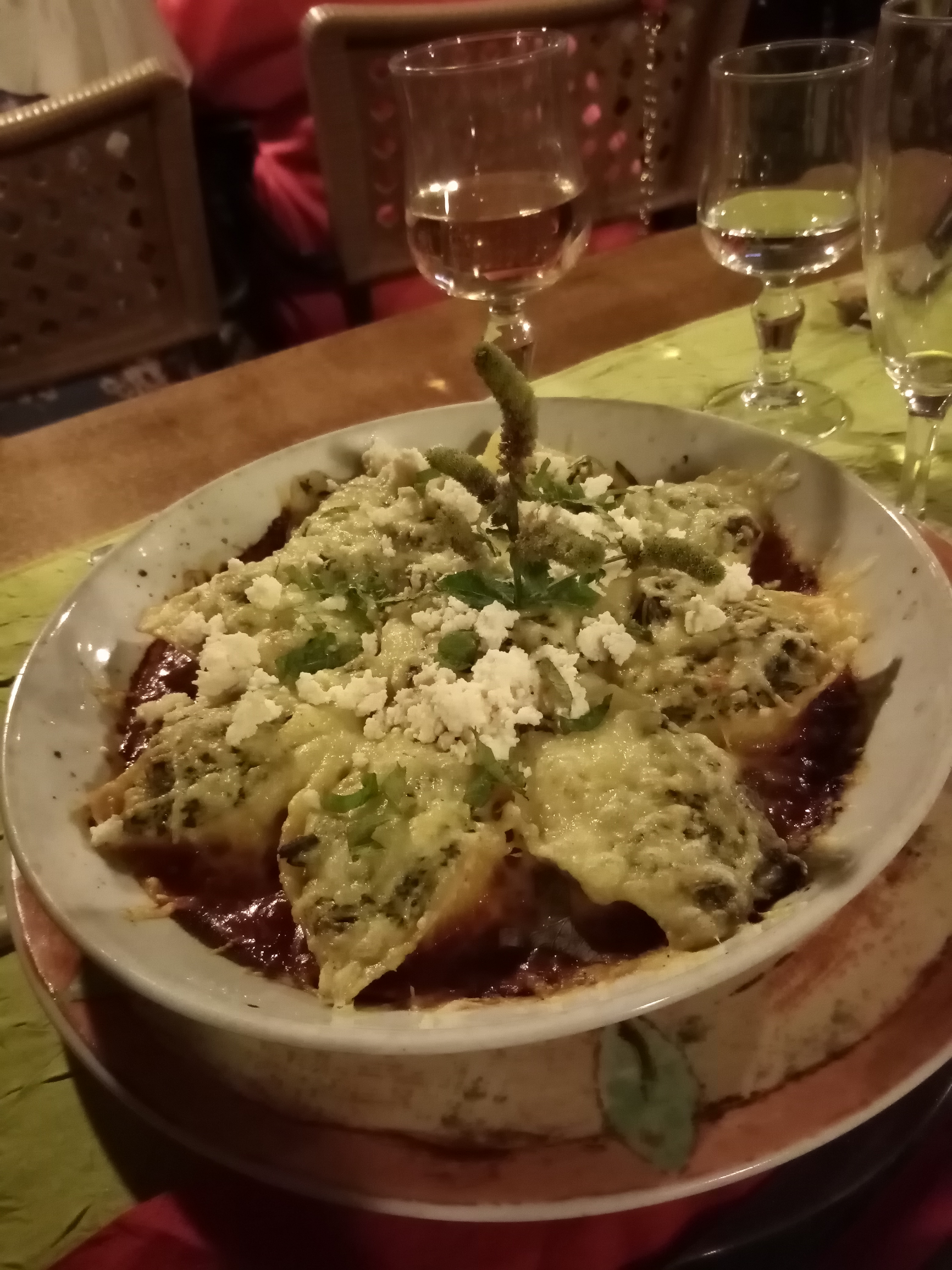Le cadre est très agréable, et la nourriture est bonne et typique de la région. Les ingrédients sont locaux. L'accueil est sympathique, les serveurs très polis. Les prix sont eux-aussi abordables. Cependant, je vous conseille de ne pas surestimer votre appétit : ce sont de grosses portions. Des plats végétariens sont disponibles, ce qui est vraiment super ! Comme plats, je recommande les canelloni et le filet de veau en croûte, des délices !