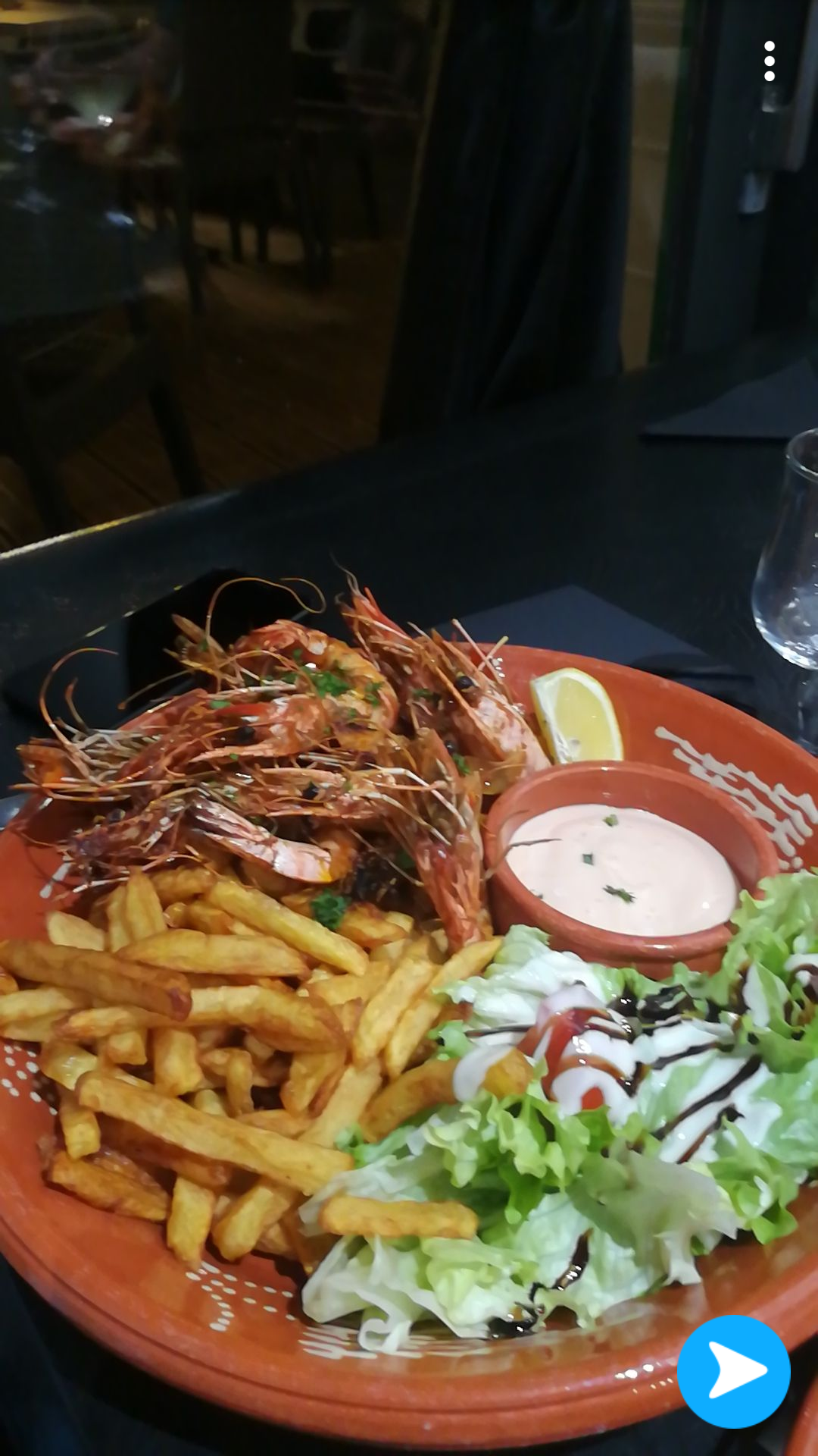 Nous avons été déçus de nos différents choix de plats, poulet pas assez cuit, gambas ( grosses crevettes plutôt) trop cuites, sangria industrielle infecte Sur 6 à table, 4 ont été malades