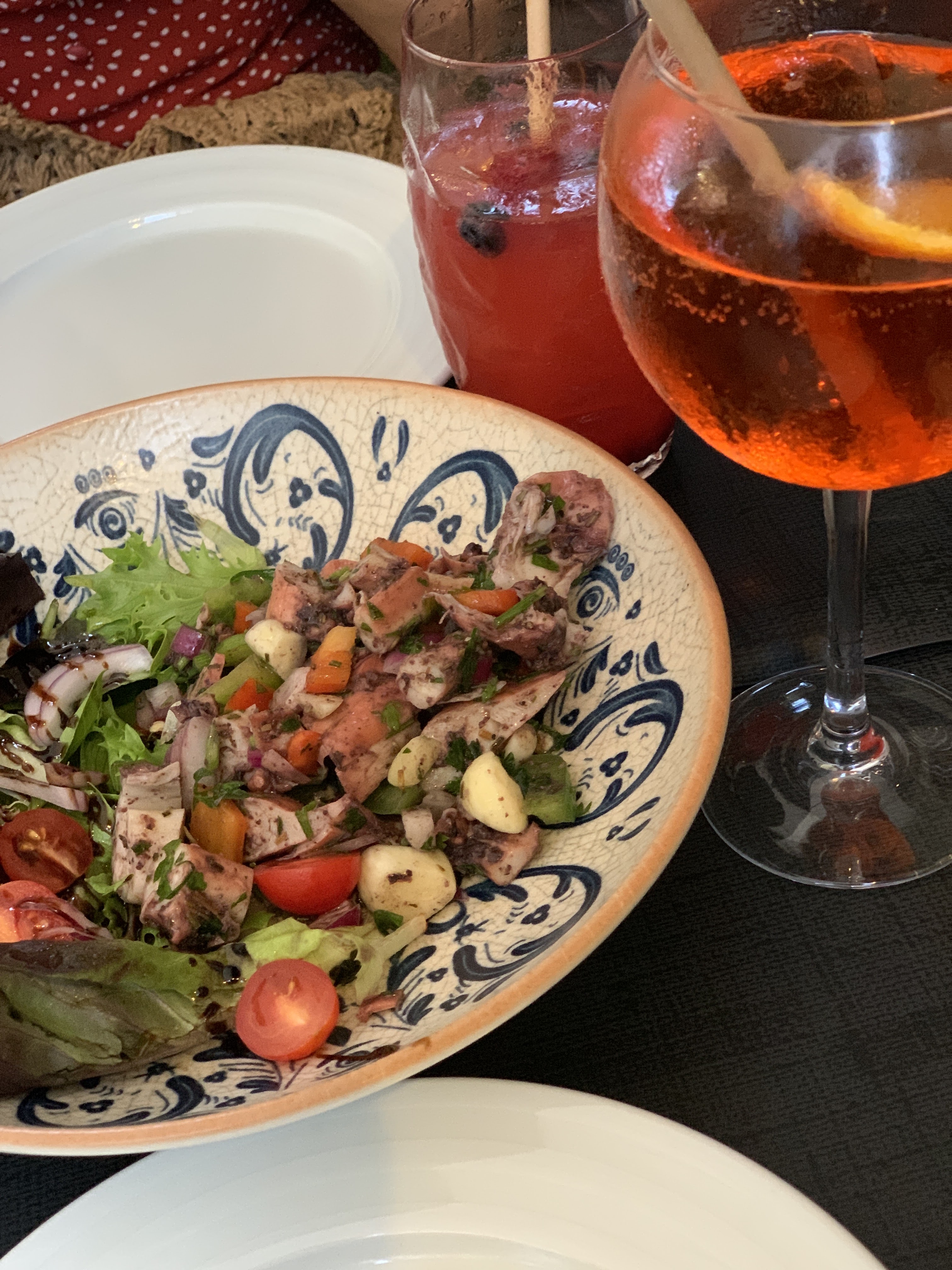 Accueil, déco, assiettes incroyables. J'ai pris l'aïoli de poulpe mon amie la joue de boeuf, Angus, tout était délicieux