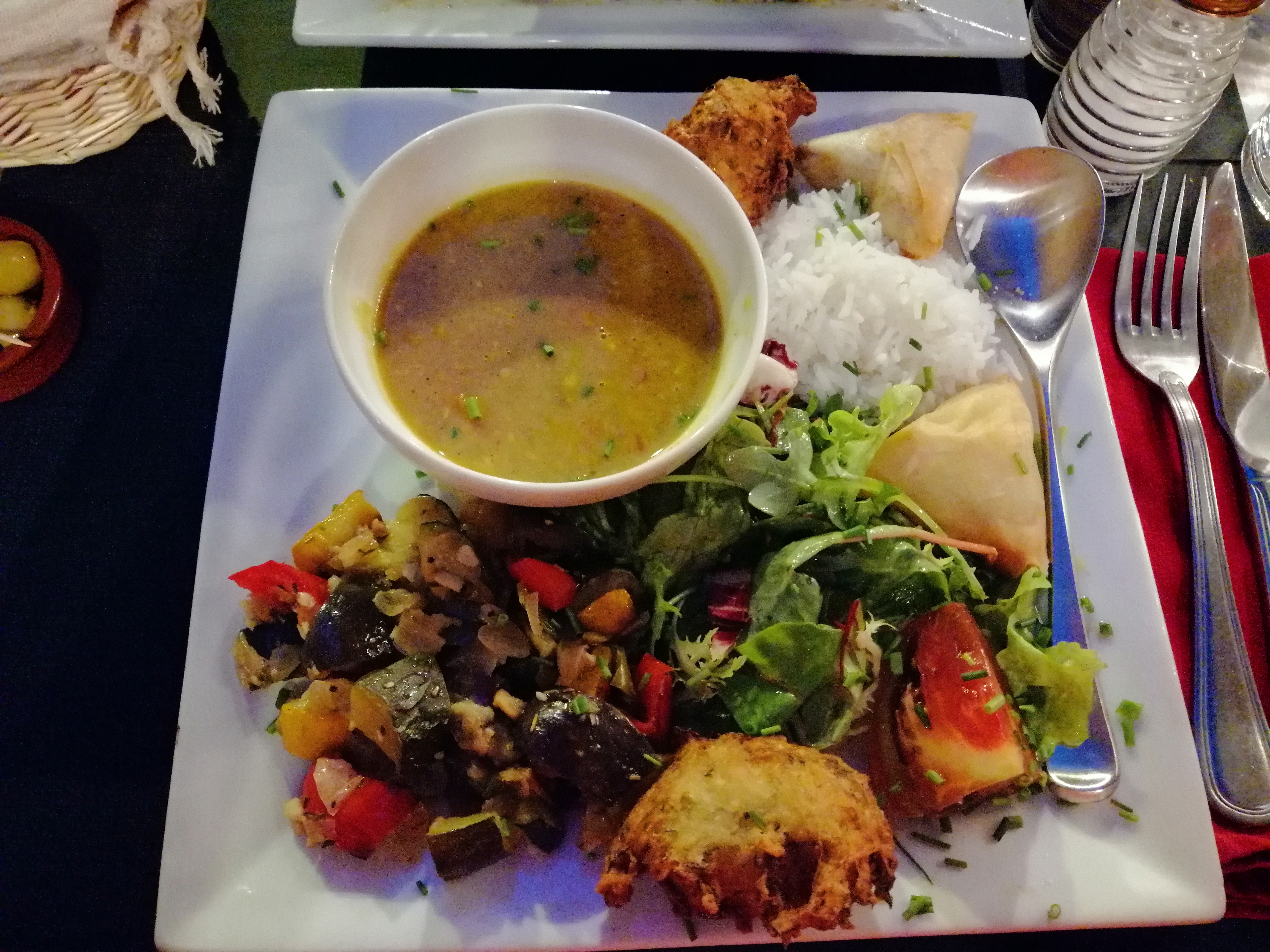 Personnels accueillant, très chaleureux, on a mangé avec les collègues et on a passé une excellente soirée. Nous ont offert des Samoussa succulentes. Parfait. Je recommande