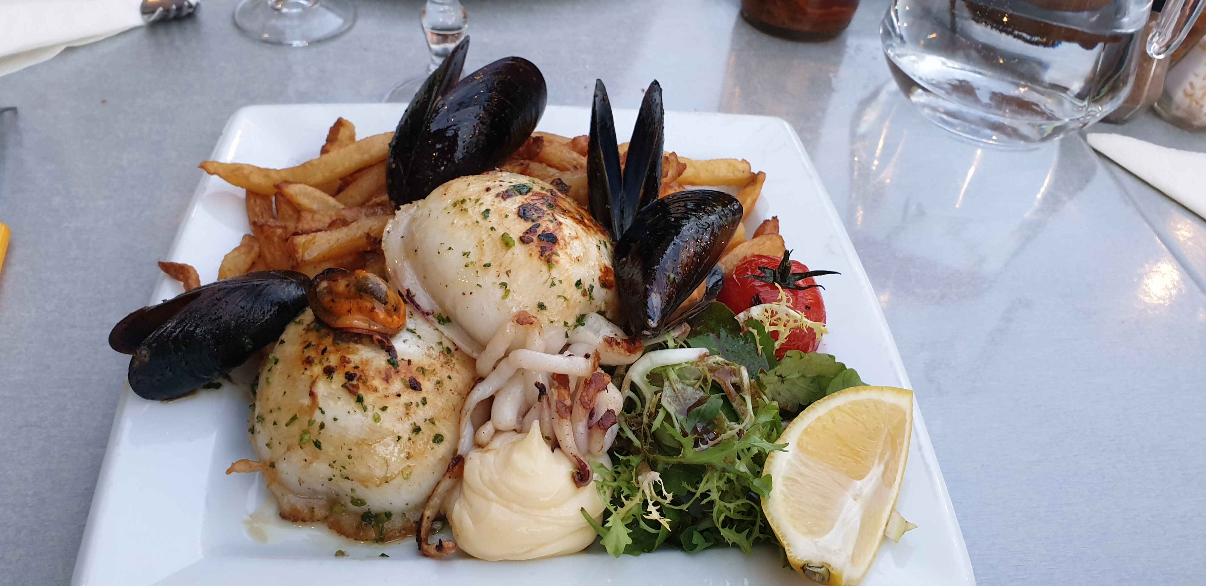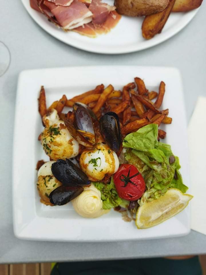 Excellent, seiches à la plancha pour Madame, camembert raclette pour Monsieur, une tuerie, trop mangé mais trop trop bon et personnel super sympa et attentionné. Mille mercis