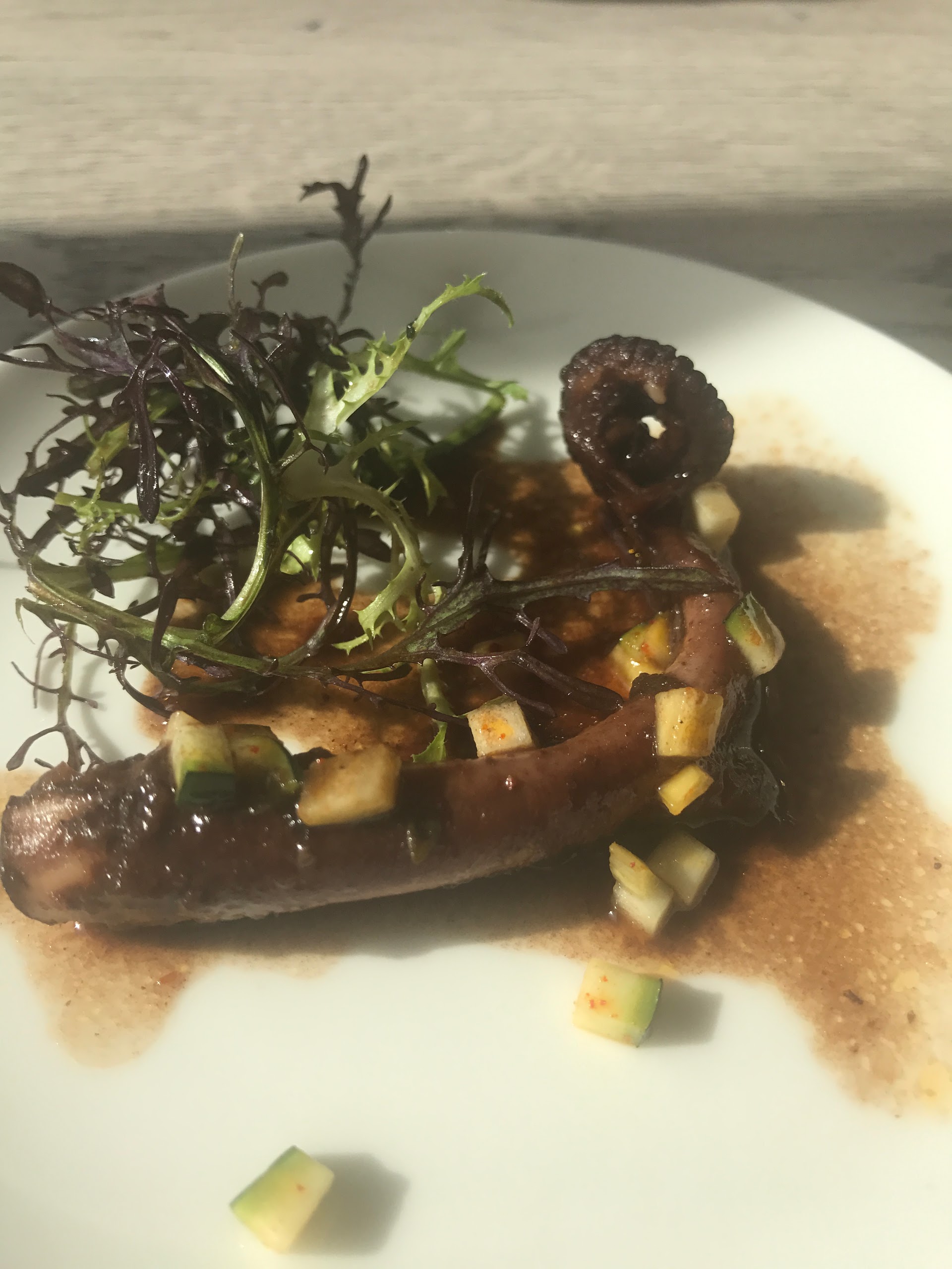 À notre tour de nous rendre chez a table de Eric Leautey, comme tout le monde, je jette un œil sur les avis de Google et de TripAdvisor, à ma grande surprise, beaucoup de mécontent, notamment sur le service et quelques fois sur la cuisine. Et après tout l’envie de me faire mon propre avis me démange. L’accueil est impeccable, ni trop ni trop peu, juste ce qu’il faut, une personne très aimable et aux petits soins. Passer le stade de la découverte, nous commandons ce qui fut un de mes meilleurs repas de cette année 2023. Un encornets garni au chorizo à tomber par terre (me rappelant au passage mes origines basque). Suivi par un riz, de veau exceptionnel. Je finis par un Baba au rhum flambée que je dévore littéralement… Et pendant le café, le chef en personne qui vient nous remercier de notre présence. Tout ça pour dire Internet c’est bien la vraie vie c’est mieux. Bonne continuation, nous reviendrons avec plaisir. David