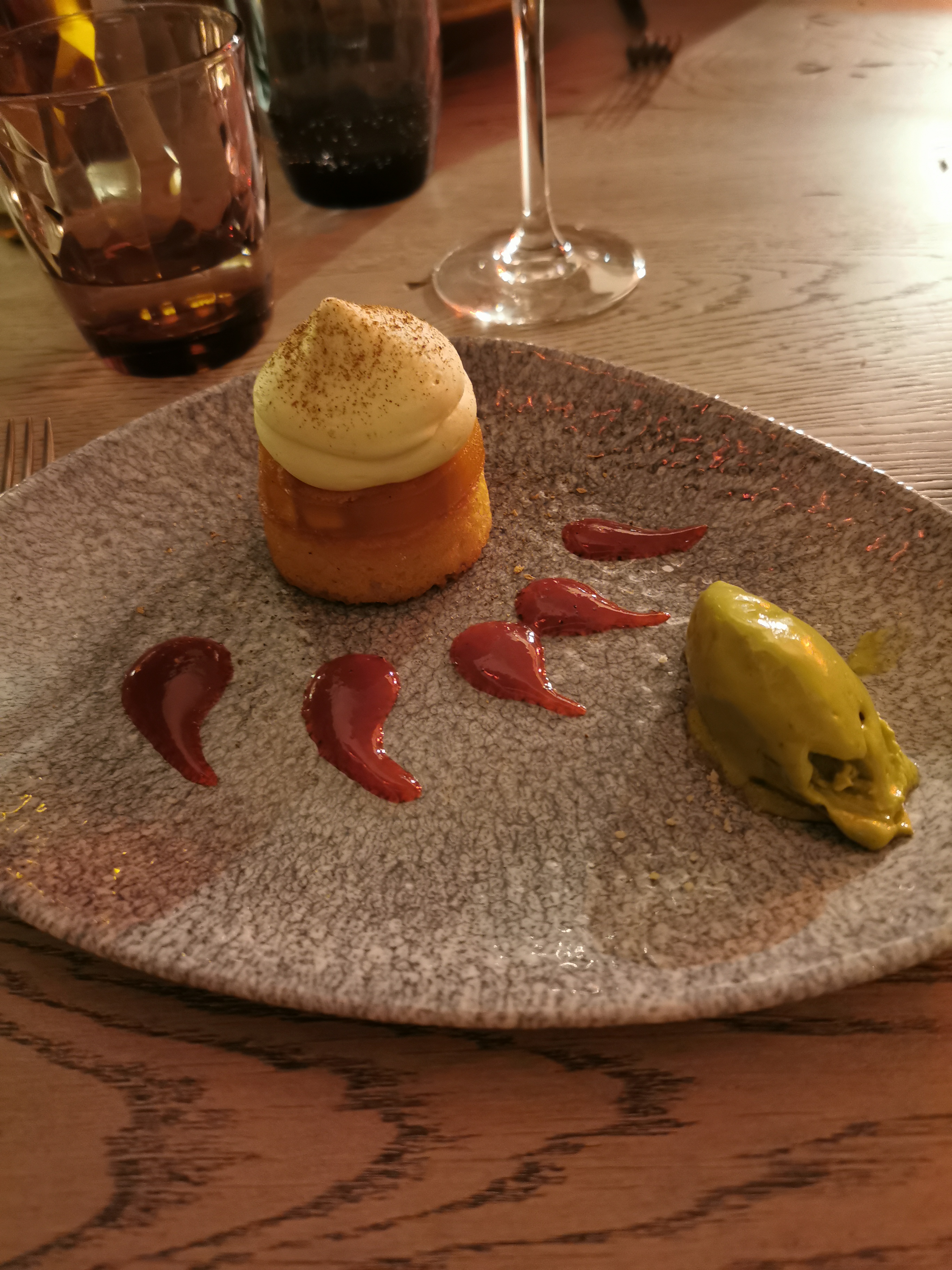 Très bien accueilli, foie gras fait maison un délice, la côte de boeuf pour deux fumée aux foins et c est fait dvt vous, pour des amateurs de viandes comme nous, un régal surtt ce qui est top, c est que nous avons pu avoir chacun sa cuisson, la purée de pomme de terre excellente et le dessert entre la baba au rhum au vrai rhum St James et le chou chocolat a été de terminer en beauté le repas. Nous reviendrons volontiers car la carte change toutes les semaines donc de nouvelles aventures à vivre. 😁