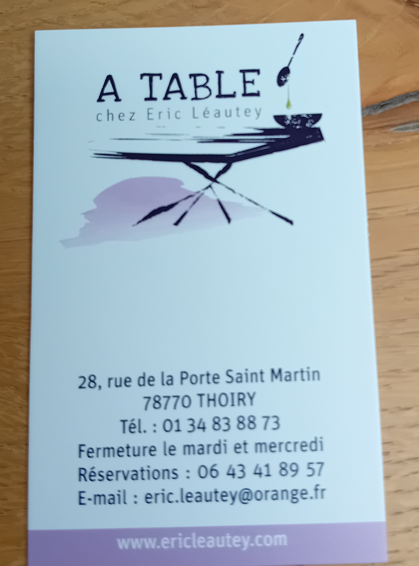 Voici toutes les informations sur le Restaurant français À Table Chez Eric Leautey qui ce trouve au 28 Rue de la Prte Saint-Martin, 78770 Thoiry (78). Sur cette fiche vous trouverez les photos, l'adresse, les horaires d'ouverture, le numero de téléphone et les avis clients.Vous pouvez églement rédiger un avis si vous le souhaitez en bas de page.
