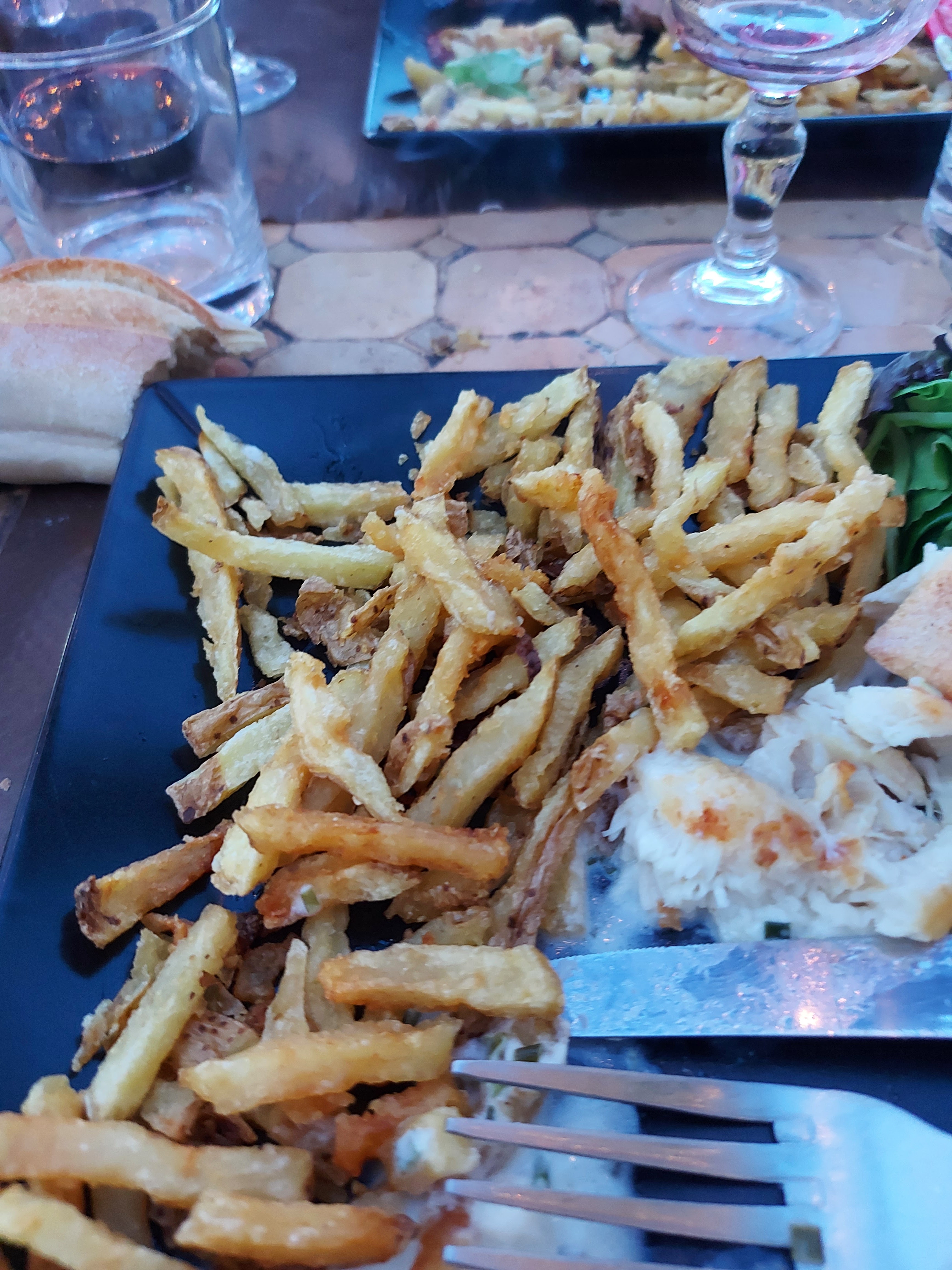 blanquette de poissons tourné, on me change le plat pr 1 bavette à l'échalote que j'ai mangé seul vu que mon fils et mon mari avaient fini depuis longtemps, niveau hygiène pas top je dirais même deguelasse, ls cartes collent aux doigts,ns étions placés vers le bar et cuisine donc on voit ds choses que l'on ne devrait pas, comme quand on vs met 1 bouteille d'eau qui était à moitié vide et qu'on à rempli avant de ns la servir a nettoyer en période covid je trouve que l'hygiène n'yest pas quand j'ai vue le cuisinier alors là c'était le bouquet, il se doit d'être propre, mais là c bien le contraire la cuisine enfin côté vaisselle laisse à déplorer je pense qu'il devrait mettre 1 porte pr que ls clients n'ai pas à voir ça. Très déçu et ne parLons pas de l'attente qui est interminable je déconseille fortement.