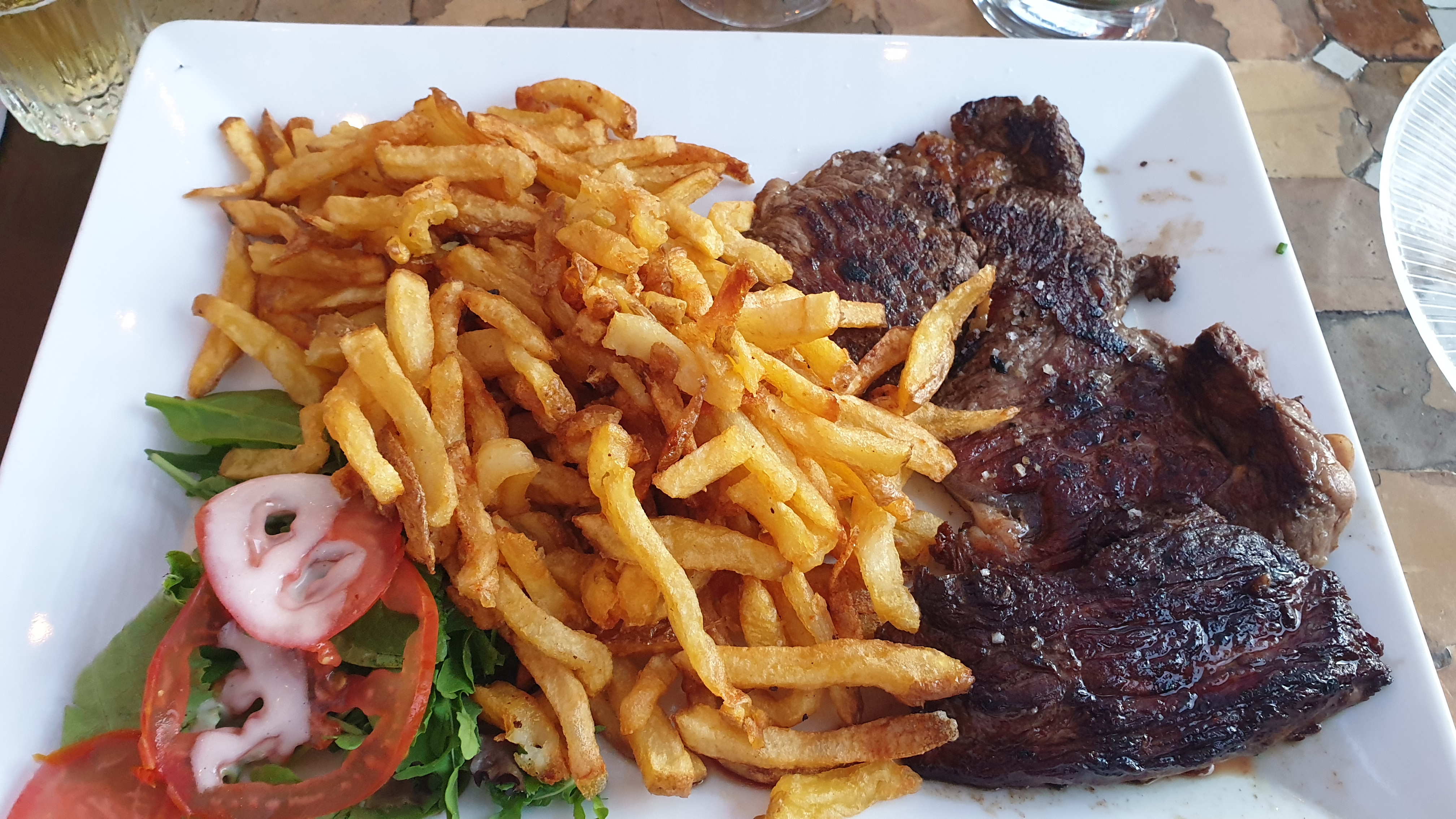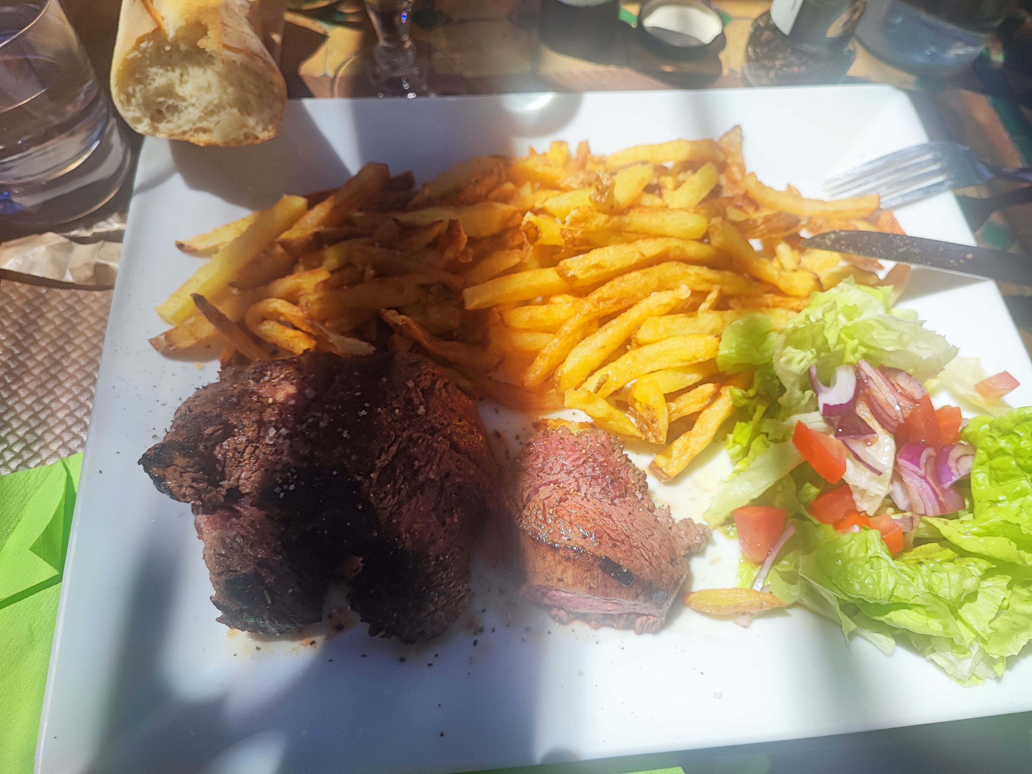 Le repas était délicieux...de la viande exquise, des frites et salade 🥗 très bonne. 🤤