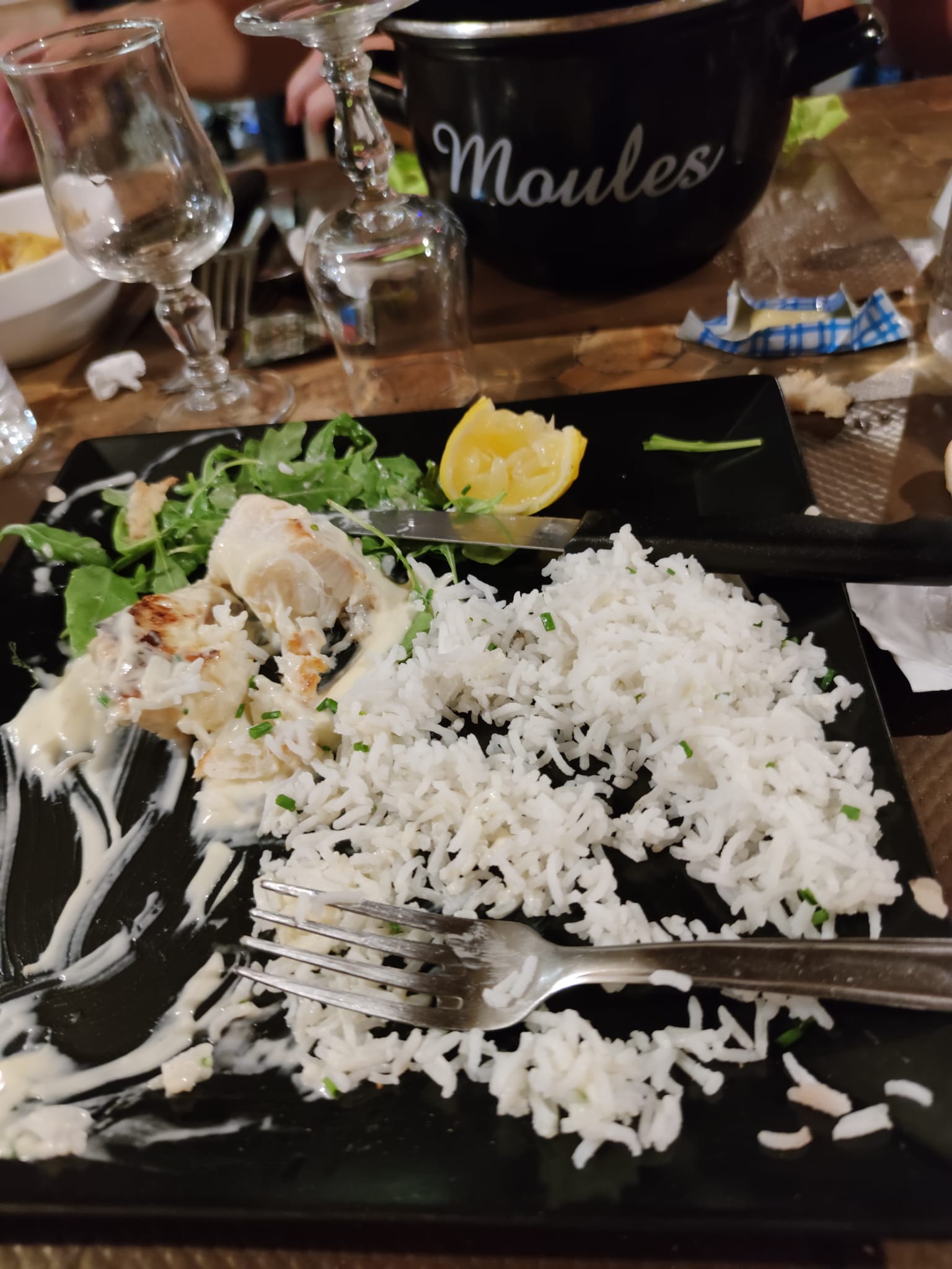 Très bon, moules crème pour moi et gambas pour mon amie copieux. Service très bien 👍