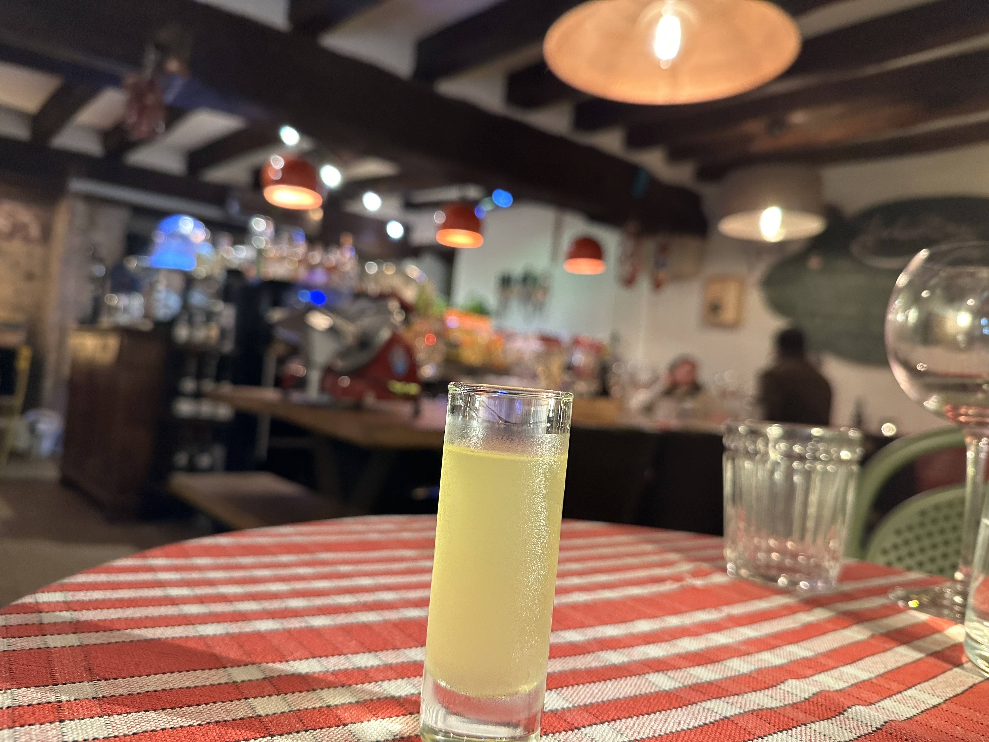 Nous avons passé un super moment en famille. Merci Dimitri (le cuisinier). Nous avons appelé 1h avant de venir et le cuisinier nous a dit qu’il n’y avait aucun soucis pour nous faire un repas pour 10 personnes dont un végétarien. Nous avons eu à manger de la super charcuterie de qualité d’Italie, deux pizzas maisons, des pâtes à deux saveurs différentes et en dessert un excellent tiramisu. Pour certains il s’agirait d’aliments de base mais ils sont cuisinés d’une telle manière qu’on ne mange plus par besoin mais par envie et pur le goût. Par ailleurs le lieu est très chaleureux, on s’y sentait très bien presque comme chez nous. A tel point qu’on y est resté 3h. Nous n’avons pas déjeuné dans le restaurant car fermé à cause des inondations mais dans l’appartement du dessus avec le cuisinier qui cuisinait juste à côté de nous. La table se trouve à côté de la cuisine ouverte ce qui nous a permis de voir comment le cuisinier préparait le repas avec les bonnes odeurs. Dimitri a même laissé le plus jeune d’entre nous dresser le tiramisu en partie. Il est super chaleureux et gentil, veille à ce que tout se déroule pour le mieux et en bonus une musique de fond qui donne une très bonne ambiance à ce moment convivial. Dès que nous en aurons l’occasion nous reviendrons sans hésiter car c’est une parfaite adresse mais qui aborde des prix très convenables. Nous en avons eu pour moins cher par personne que si nous étions allé dans un bar classique ou restaurant en commandant entre plat dessert et café. Je recommande vivement cette expérience culinaire et humaine. Merci encore