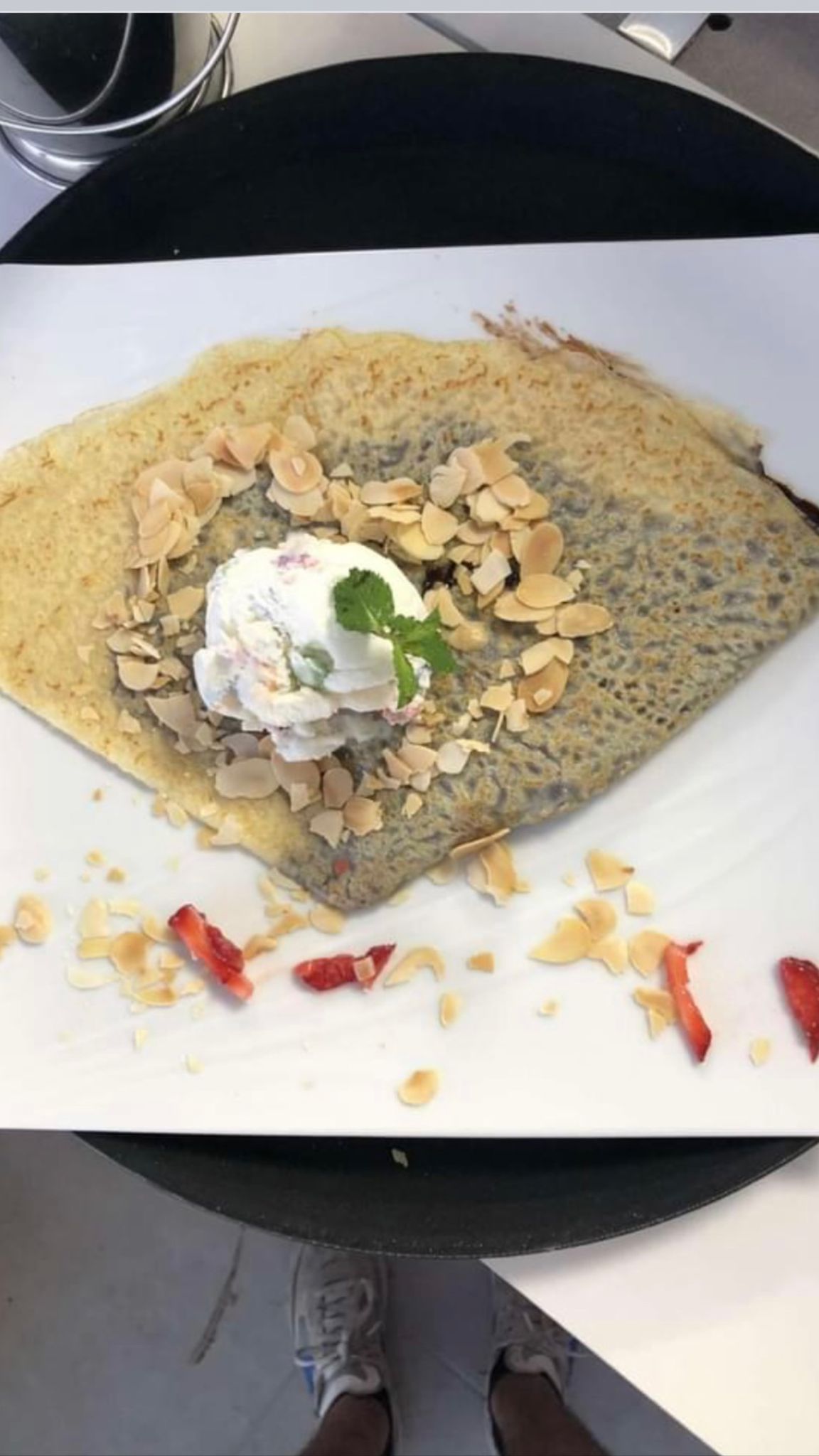 crepes légères et savoureuses. Un peu d attente vu le succès. Établissement et personnels très agreable. Le détour en vaut la chandelle