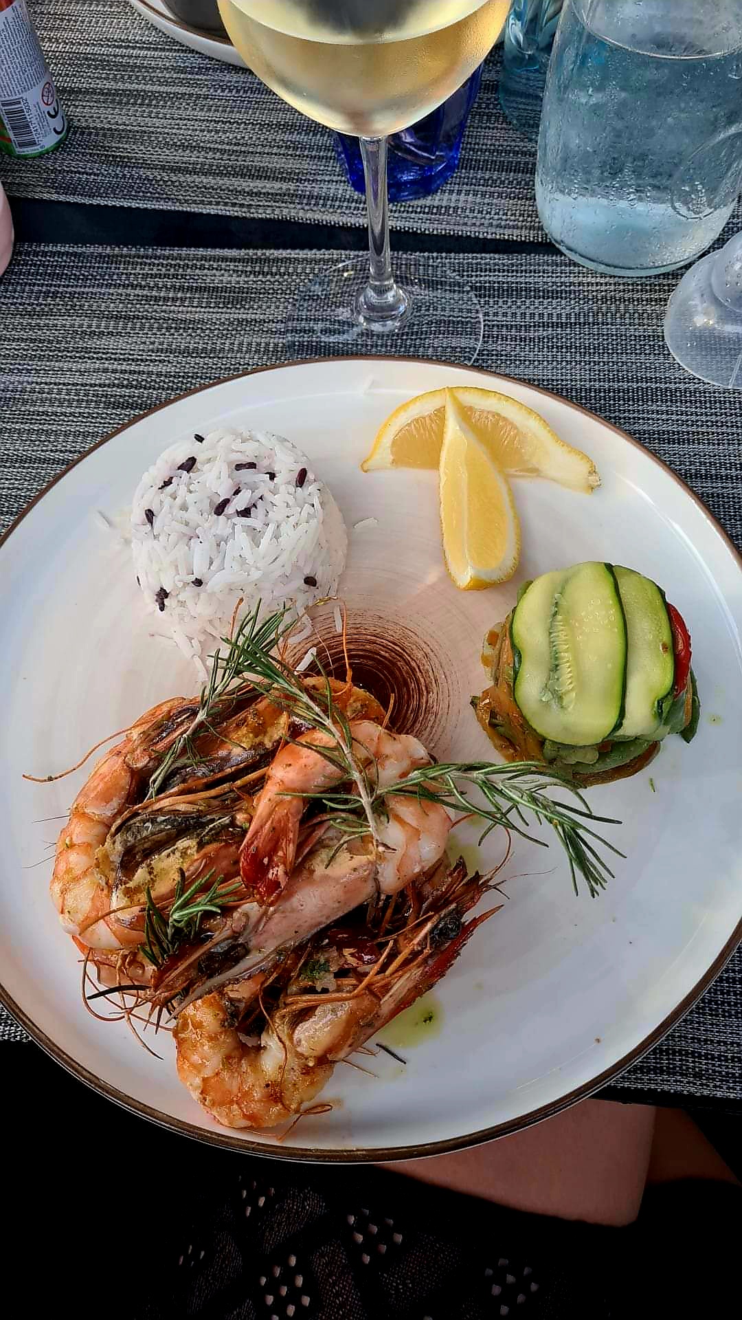 Attente de plus de 1h30 avec 2 enfants en bas âge ! Repas froid! Langoustines à faire recuire ! Cuisine déplorable quand on voit les cuistos, ça fait peur! De l eau coulait du plafond ! Je déconseille fortement et pour un tarif bien sûr à la hauteur de la vue... Vraiment déçu pour notre dernier resto en Corse!