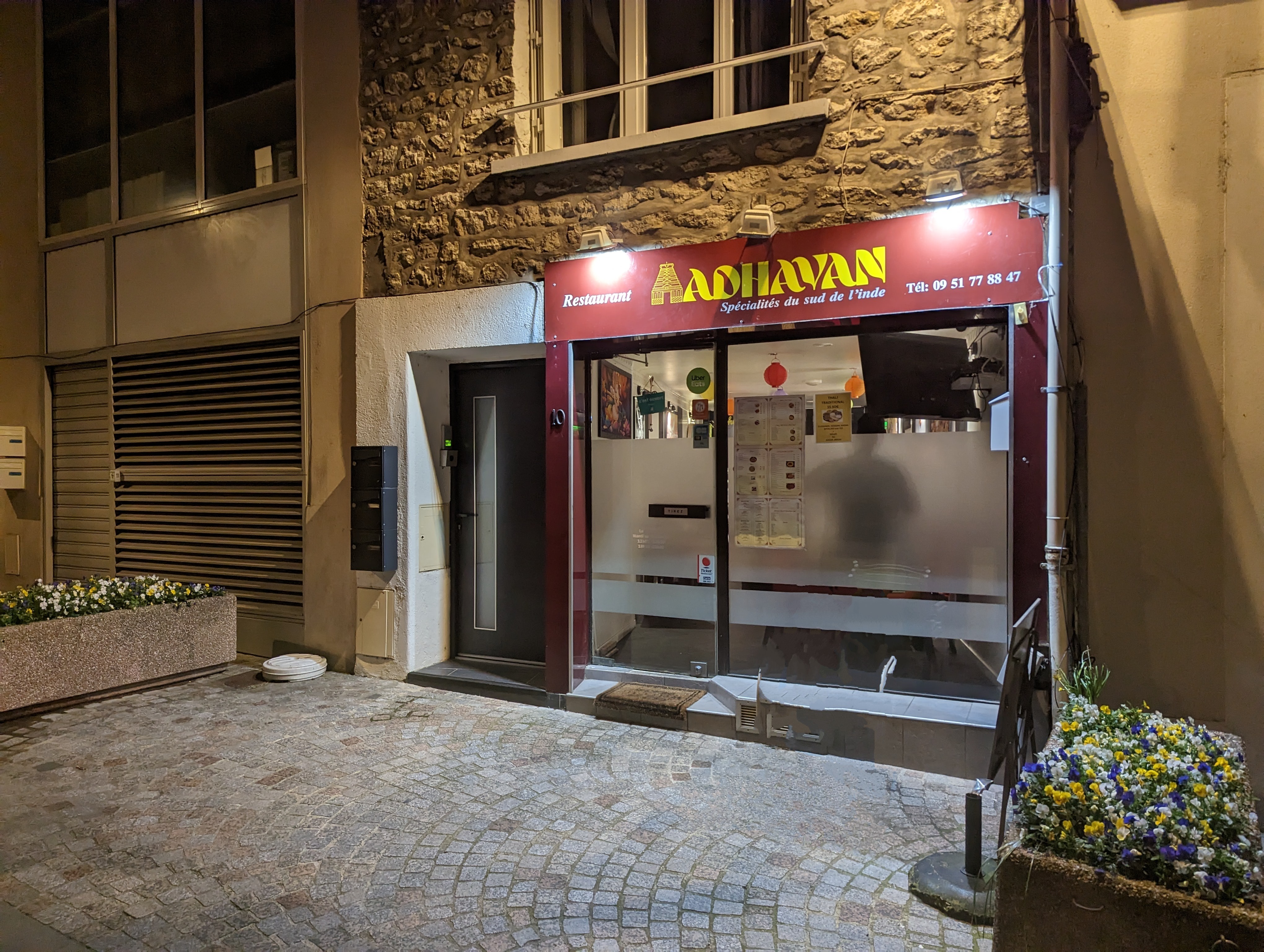 I really recommend this restaurant. Je recommend ce restaurant. Leurs idli, dosas, thalis.... sont delicieux. Que vous soyez vegan, végétarien ou carnivore, vous allez trouver quelque chose à votre goût. Puis ça vous sort de la routine et la nature repététive des plats indiens qu'on trouve partout en france, qui ne représentent pas la cuisine du sud du tout! Si on aime essayer du nouveau, c'est Aaadhavan qu'il faut essayer. Ce petit restaurant dans la rue piétonne a en plus un parking tout à côté. Les propriétaires sont accueillants. I had a really enjoyable meal!