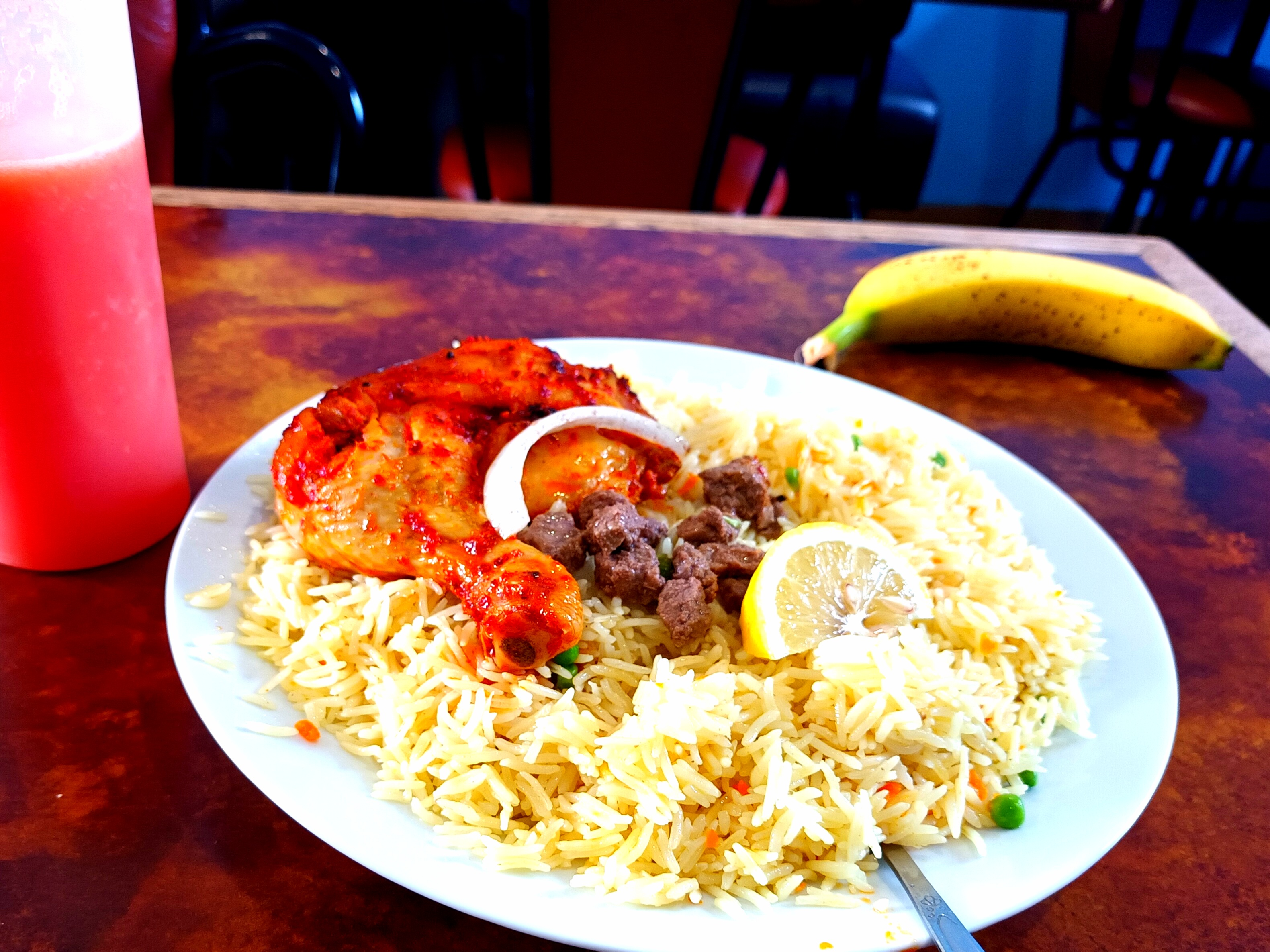 Vraiment super bon, proportions très généreuses et plats pleins de saveurs, 2 bananes offerte, merci beaucoup