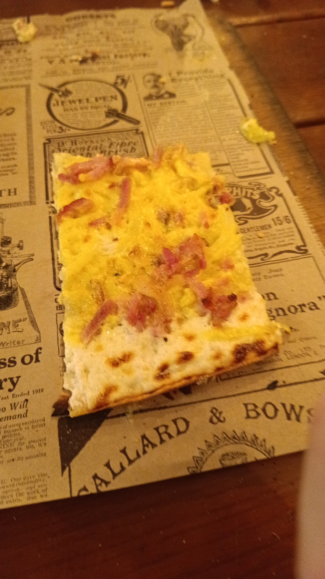 Nous y avons dîner un vendredi soir. Nous n'avons pas été accueillies à l'entrée, et avons dû nous installer seules. Le bar était assez animé ce soir là, je ne vais pas en tenir rigueur au personnel. Nous avons pris deux tartes flambées (végétarienne pour ma part), celles-ci étaient généreuses et plutôt savoureuses, accompagnés de bière et panaché. En desserts, nous avons choisi une dame blanche et un tiramisu révisité (très revisité puisqu'il n'y avait que de la crème... il a manqué des biscuits cuillères).