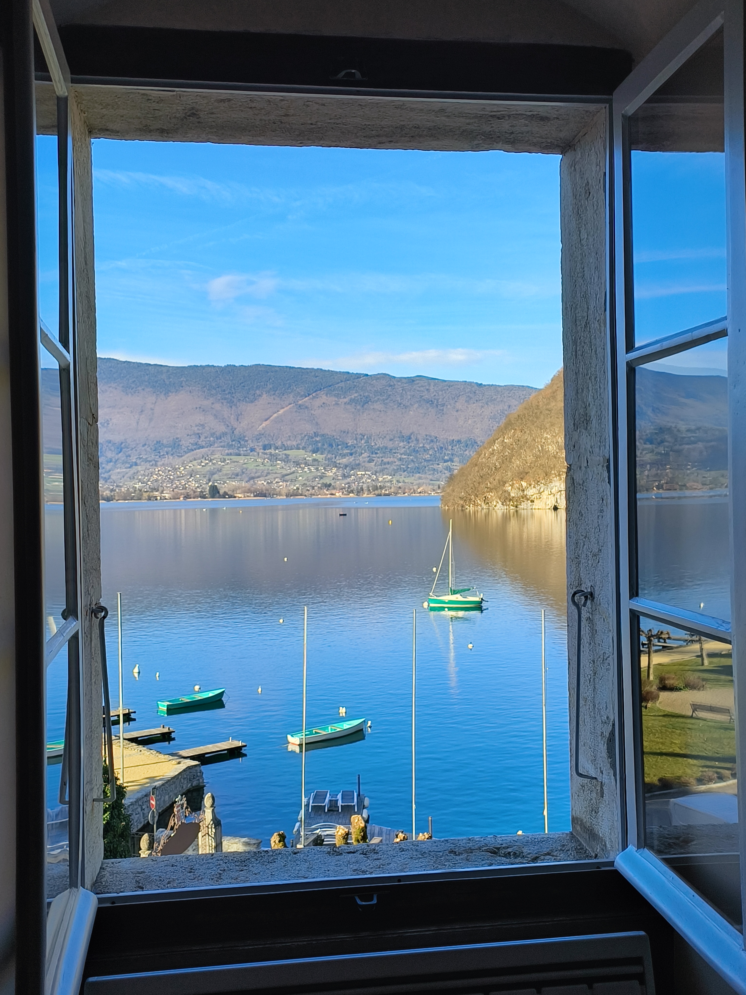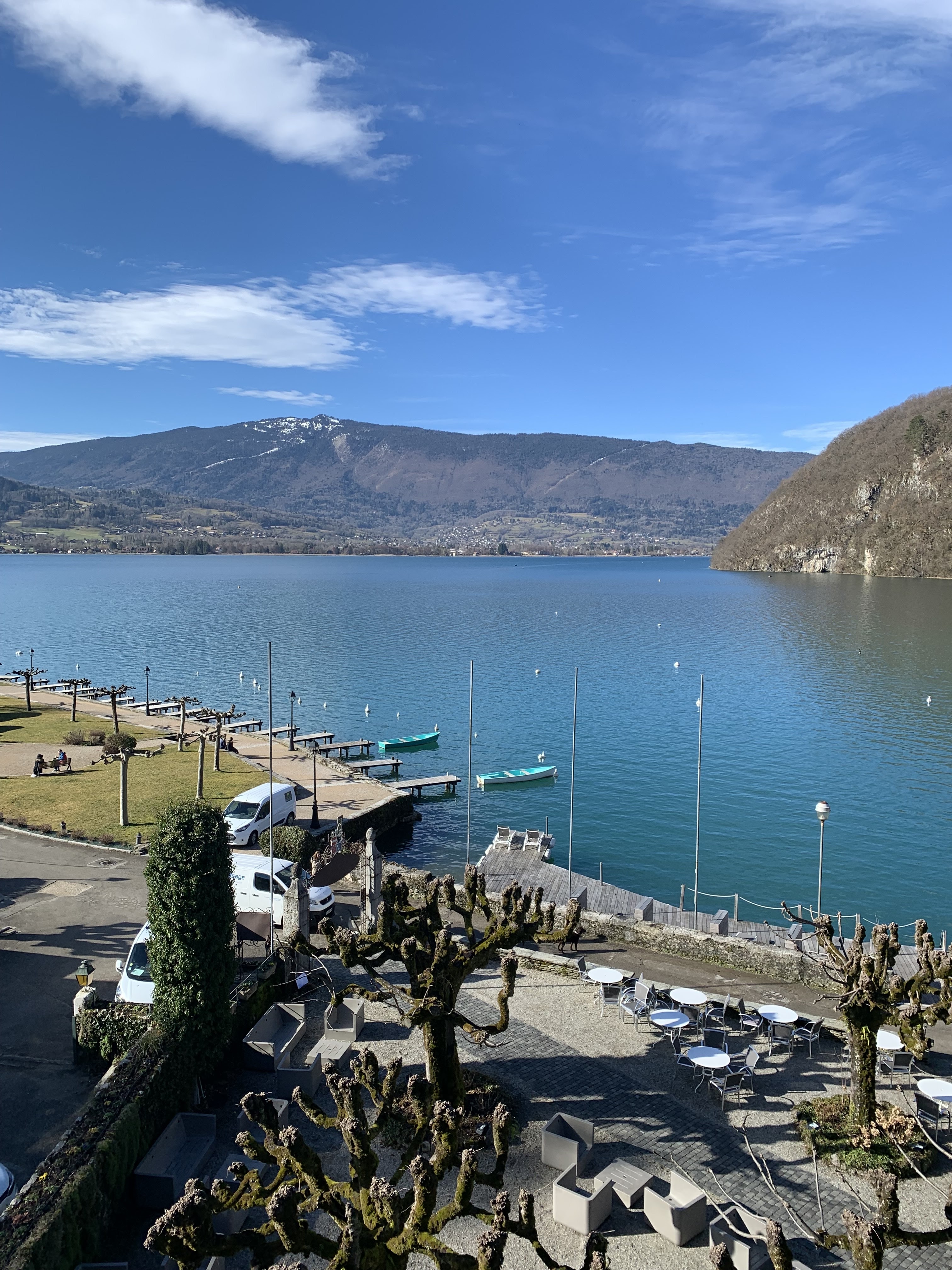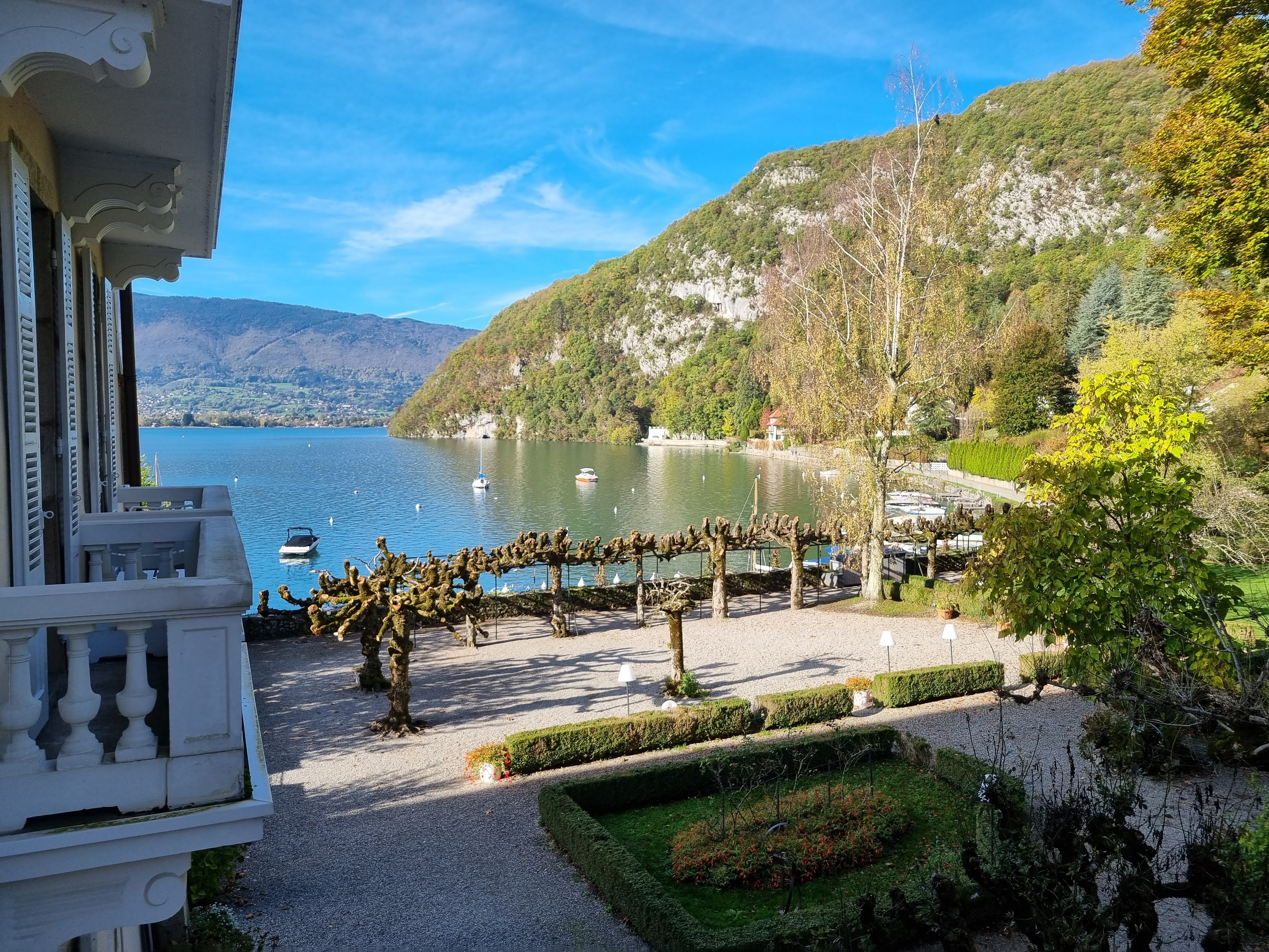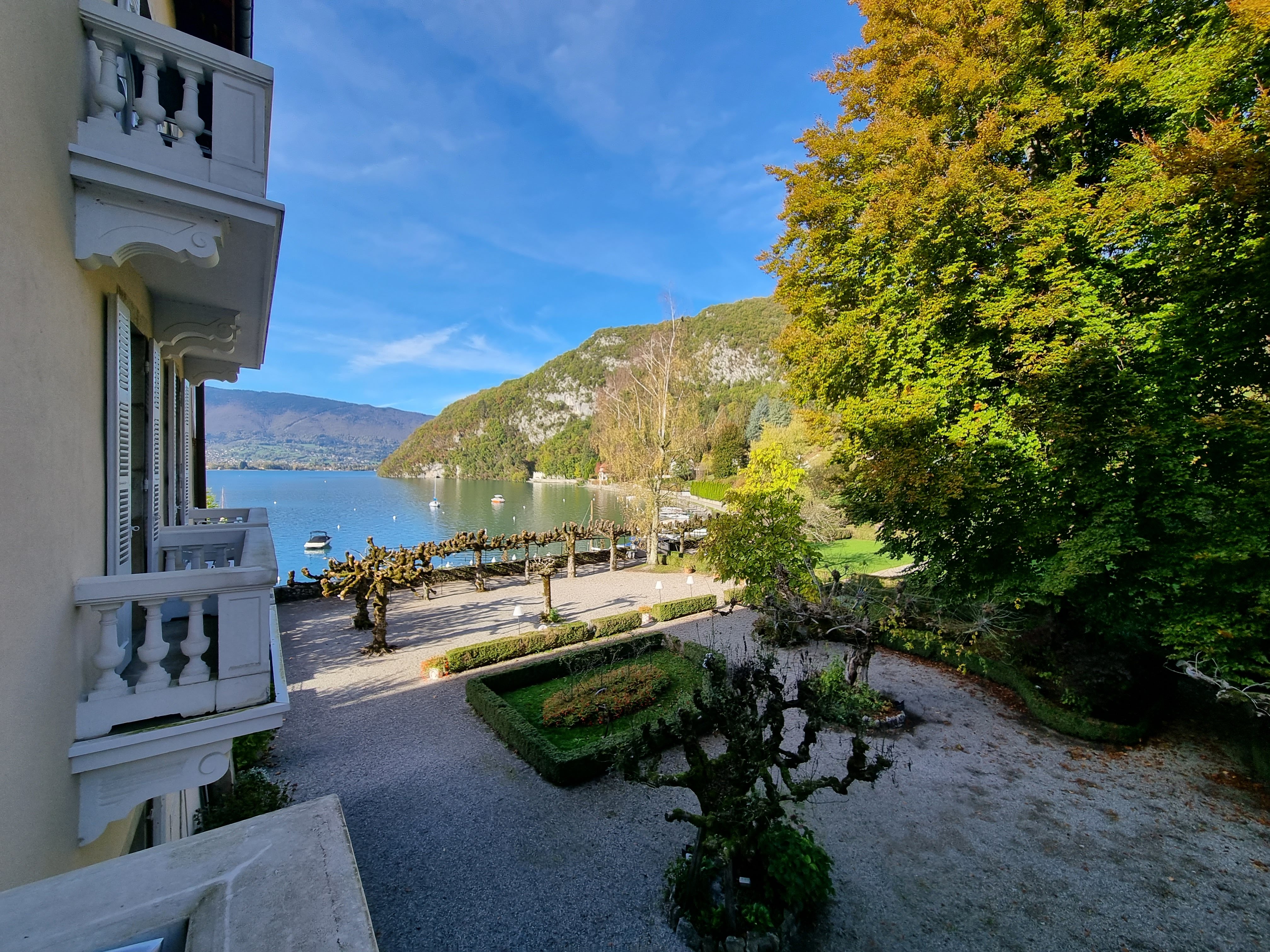 Juste magnifique. L'emplacement est imbattable dans l'un des plus beaux endroits de la planète. Le service est excellent. Le bâtiment est historique, enchanteur et classique ; ne vous attendez pas à la modernité. Les chambres peuvent être petites (tout comme les salles de bains) - un très petit prix à payer pour toute l'expérience lorsque vous pouvez avoir une vue sur le lac comme celle-ci. Bien meilleur rapport qualité/prix que plusieurs alternatives de Talloires, et fortement recommandé.