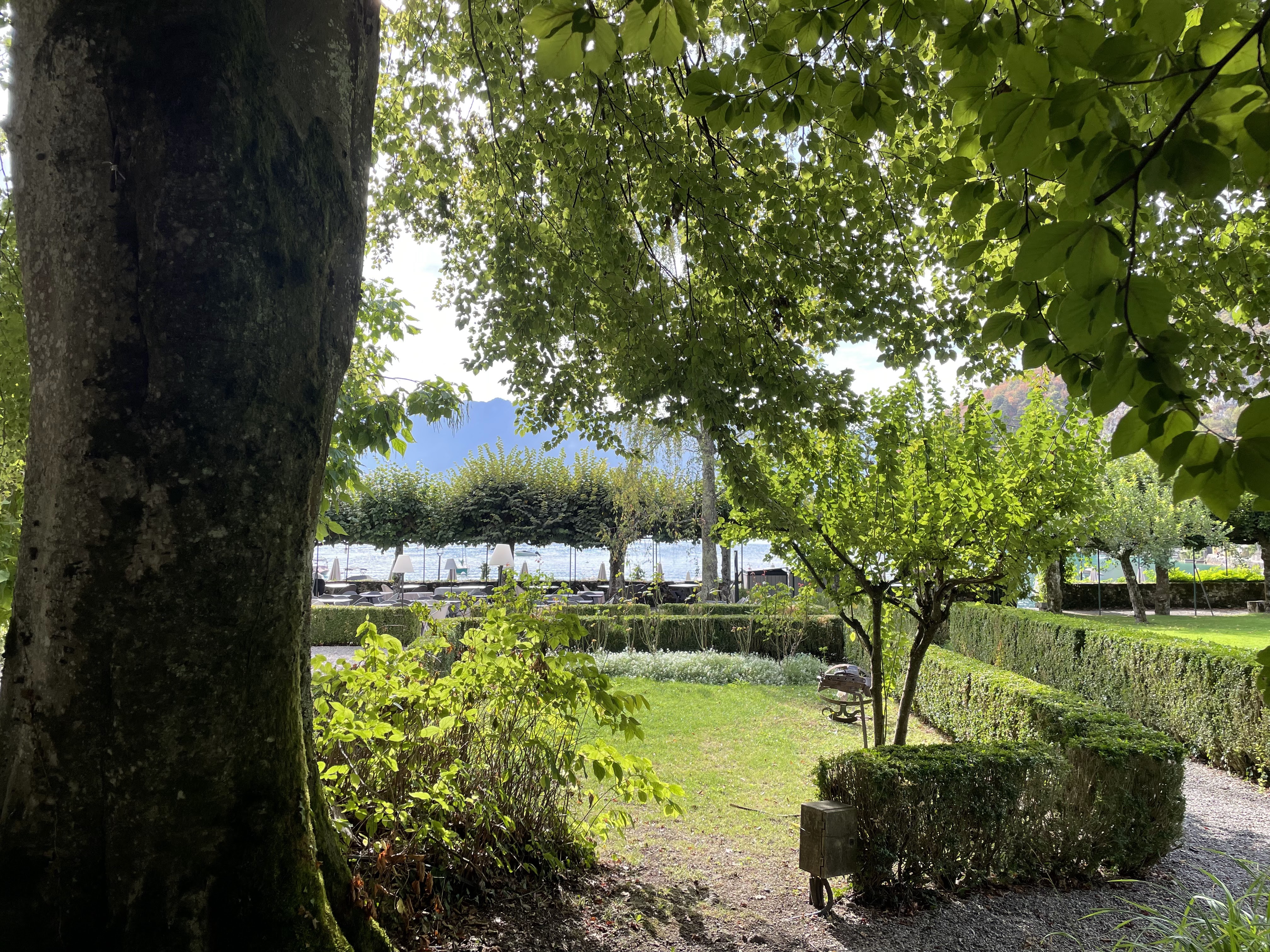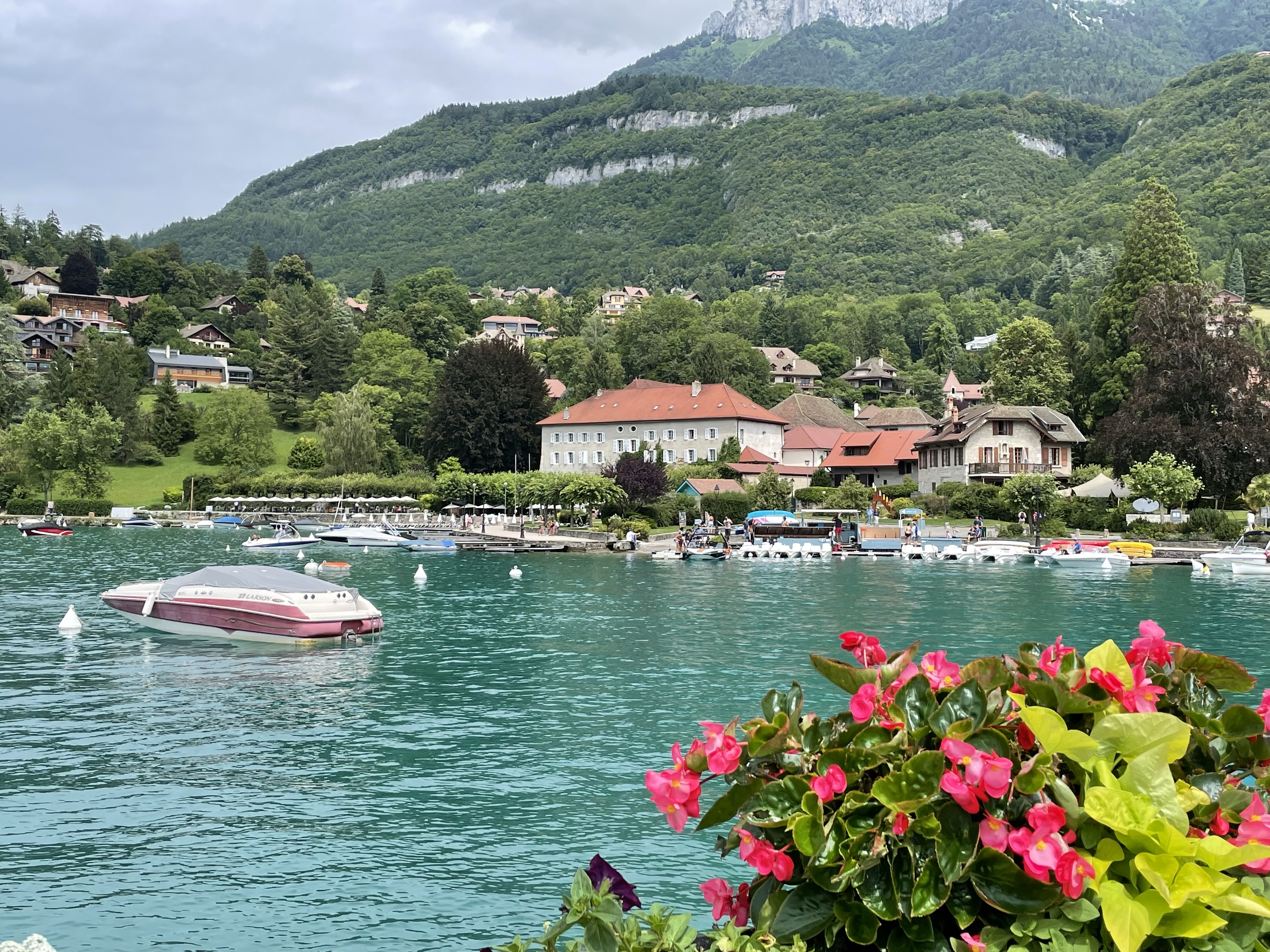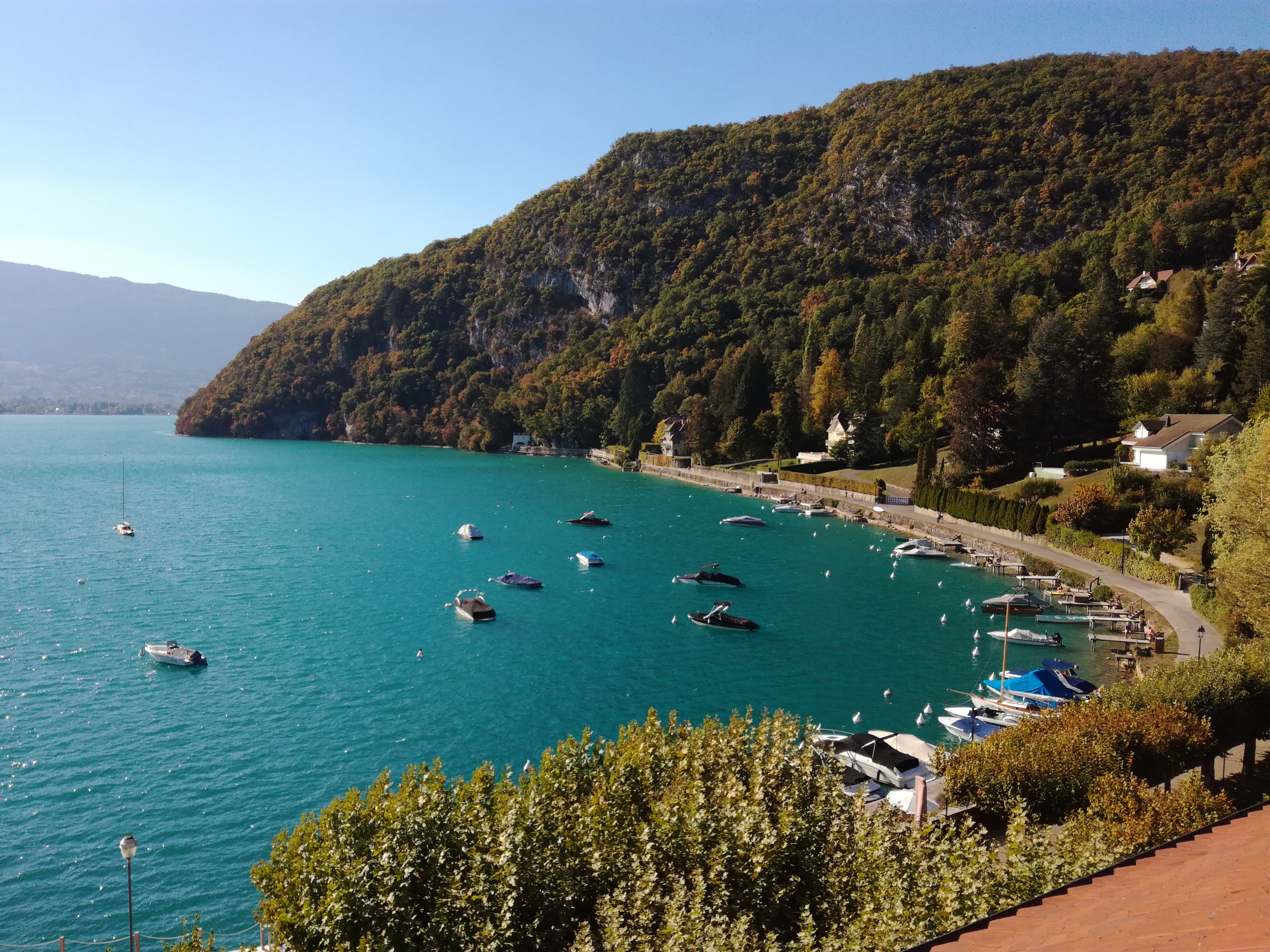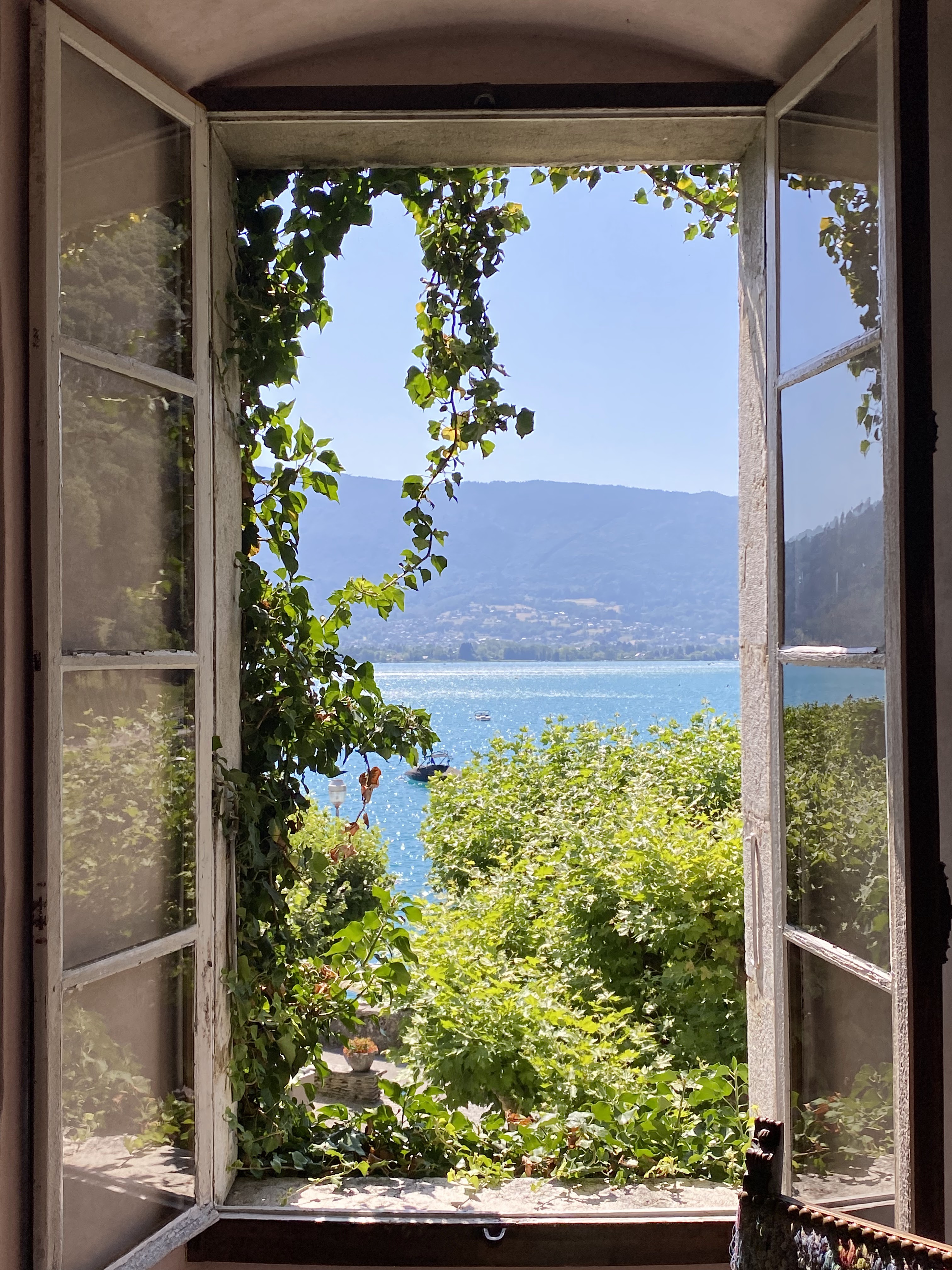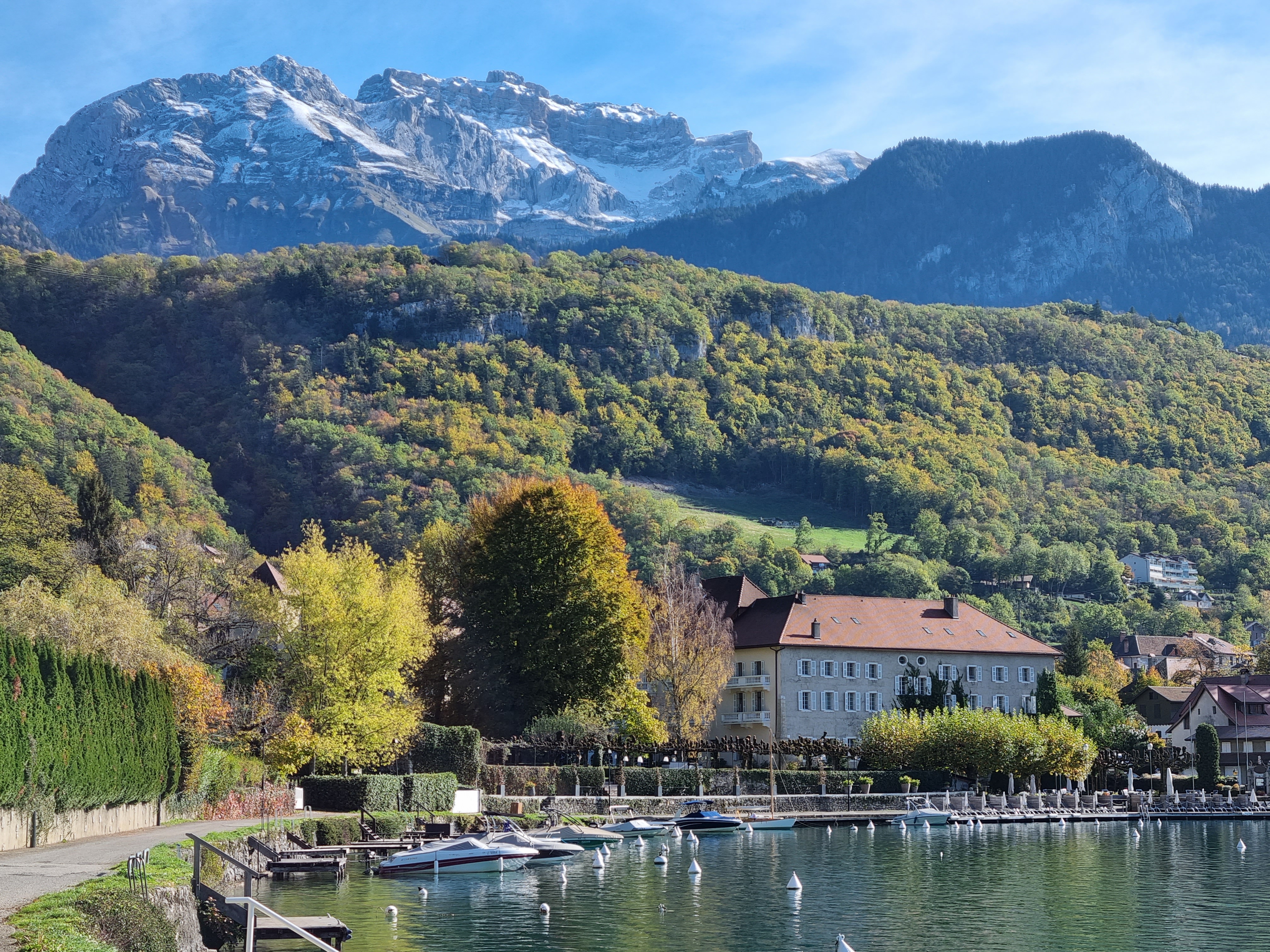 Juste magnifique. L'emplacement est imbattable dans l'un des plus beaux endroits de la planète. Le service est excellent. Le bâtiment est historique, enchanteur et classique ; ne vous attendez pas à la modernité. Les chambres peuvent être petites (tout comme les salles de bains) - un très petit prix à payer pour toute l'expérience lorsque vous pouvez avoir une vue sur le lac comme celle-ci. Bien meilleur rapport qualité/prix que plusieurs alternatives de Talloires, et fortement recommandé.