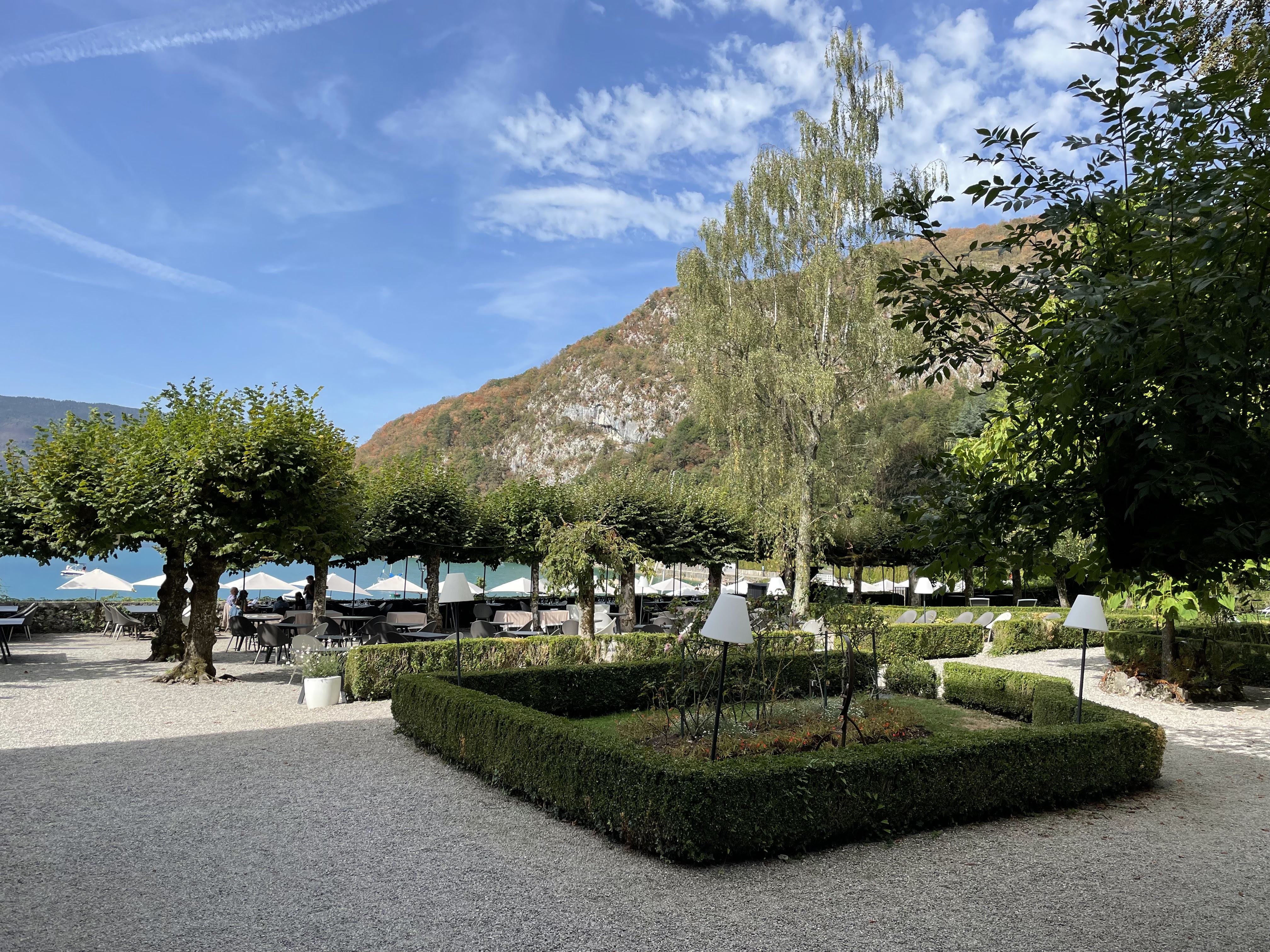 Lieu idyllique où la quietude est la maîtresse de l'endroit. Restaurant gastronomique mais où chacun se sent à l'aise car les hôtes qui vous serventsont chaleureux, courtois, très professionnels. Hôtel chargé d'histoire décoré et meublé avec du mobilier d'époque, très calme jour et nuit. Le spa sous les toits, poutres apparentes, très cosy et apaisant est génial et pas sur fréquenté. Endroit luxueux mais pas guindé je recommande vivement, sans parler que ce lieu est au bord du Lac d'Annecy.