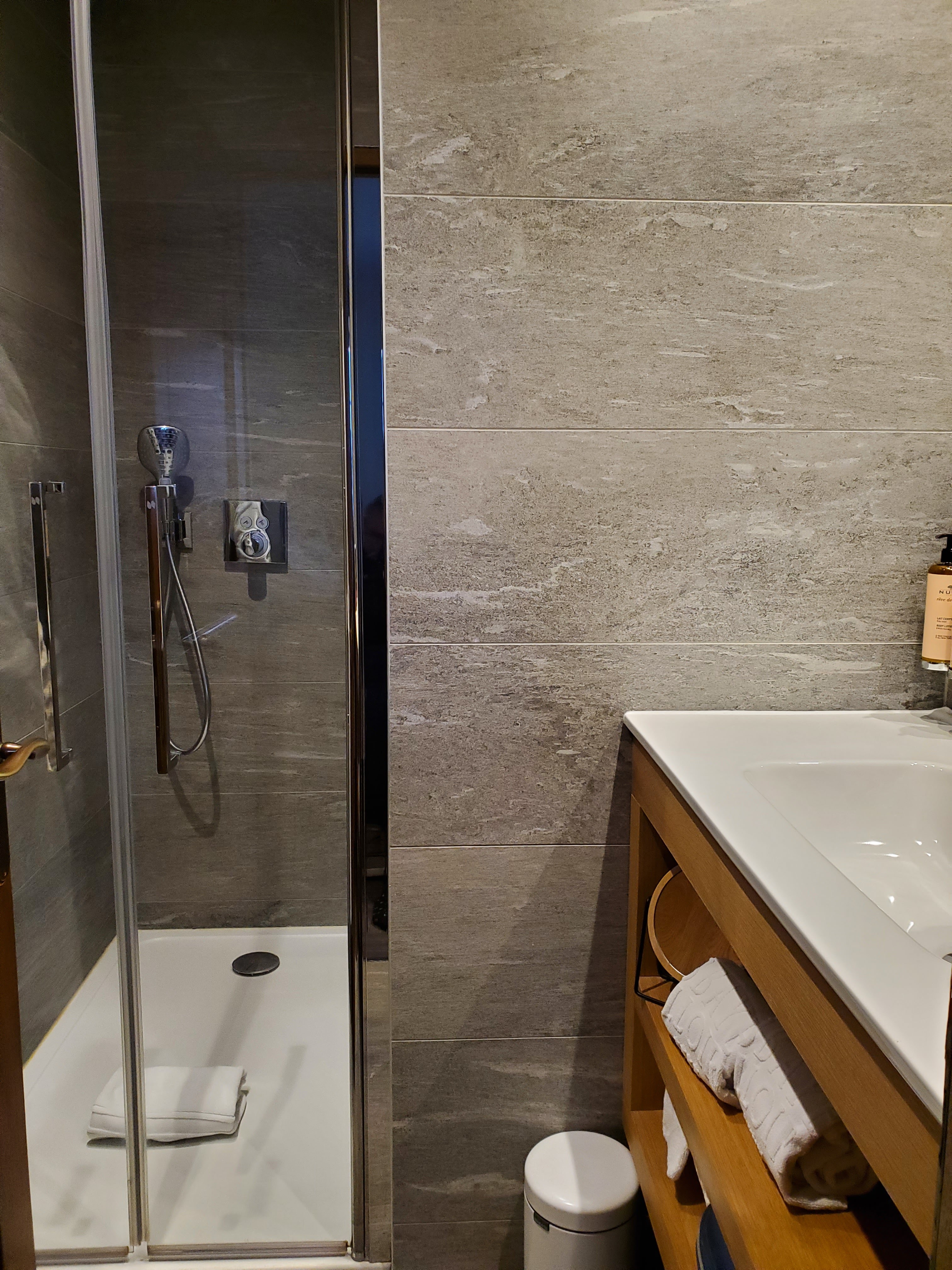 Nous avons passé un très bon séjour dans cet hôtel qui mérite chacune de ses étoiles. Un lieu propre, calme, et joliment décoré avec un personnel sympathique et prévenant. Le restaurant gastronomique est très bon et nous y avons mangé comme des rois. Une liste ci-dessous des points notoires : Axes d'amélioration : - le hamam ne semblait pas en très bon état de marche (ne faisait quasiment pas de vapeur les derniers jours) et avait une odeur assez désagréable. - du sel/poivre sur les tables aurait été bien (au restaurant comme au petit déjeuner/brunch). - le pain du restaurant gastronomique était plutôt sec le soir où nous y sommes allés. - nous aurions apprécié avoir des fruits frais (bananes, kiwis, clémentines) pour le petit déjeuner. - d'un point de vue éco, au SPA dommage que les chaussons soient jetables, tout comme les gobelets (il existe des gobelets en bois ou en bambou qui limitent les déchets). - nous avons regretté le fait qu'il n'y ait que 6 transats au SPA. Les places y sont chères alors qu'il y aurait la place d'en rajouter au moins 4. - nous avons trouvé qu'il manquait quelques degrés au jacuzzi. Bonus : - les jus de fruits frais pressés pour le petit déjeuner (orange, pamplemousse, pomme, kiwi) - un buffet de petit-déjeuner/brunch accessible jusque tard (10h30!), très varié et fourni de bons produits. - des produits Nuxe qui sentent divinement bon dans la chambre comme au SPA - le personnel aux petits soins et attentionné, désireux de nous simplifier le séjour en tous points - un restaurant de qualité avec un plateau de fromages à tomber par terre et une grolle originale qui offre un beau spectacle au milieu du repas
