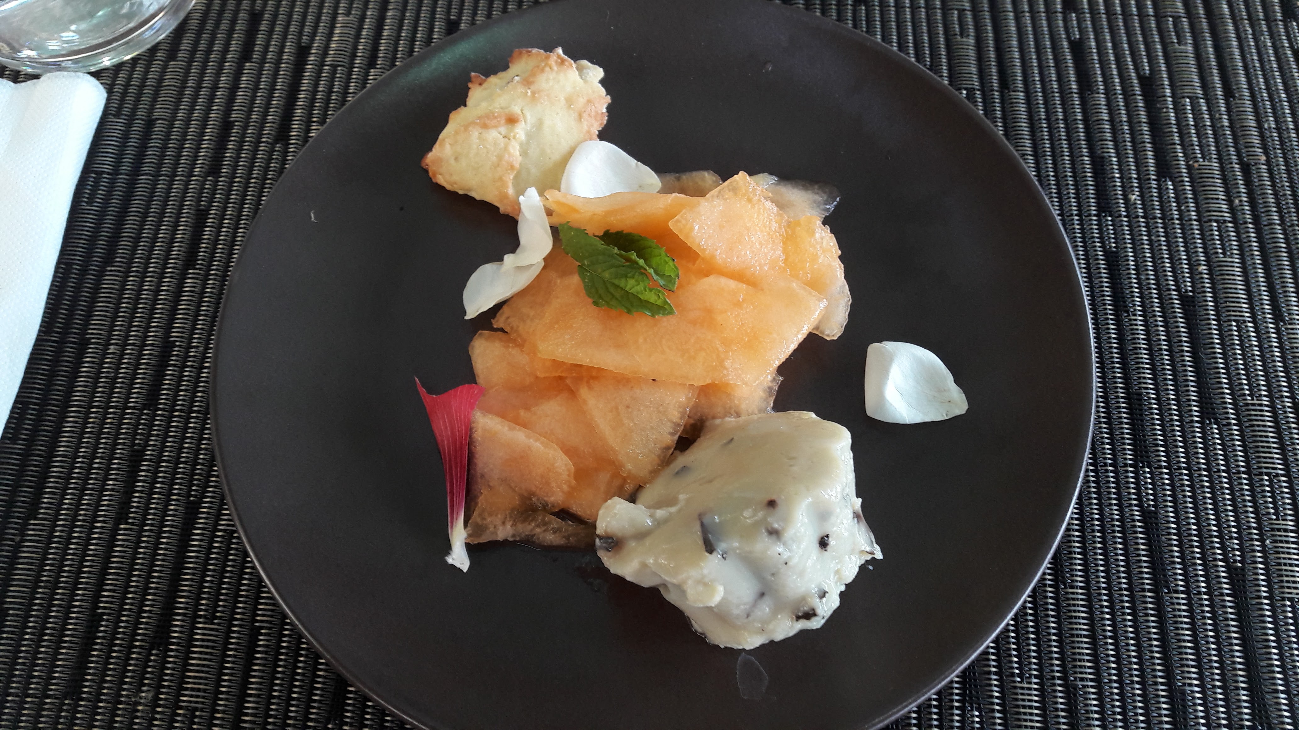 Une belle terrasse ombragée très appréciable en cette période de canicule. Un accueil mitigé,en tout cas peu souriant. Des produits frais et de région En entrée : une sphère tomate basilic insert chèvre goûteuse et savoureuse / un crémeux de courgettes fade et un œuf parfait pas si parfait. Les plats : Duo de cochon/boudins et 2côtes d'agneaux au jus corsé petits légumes confits (aubergines courgettes tomates) et pommes de terre , le tout cuit à point et réussis Impeccable. En dessert : la tarte au citron destructurée juste parfaite (voir les photos) mais c'était plutôt une verrine Côté vin : peu de choix. Uniquement le vin de leur vigne ! Pour un verre de blanc c'est Portis et si tu veux autre chose c'est obligatoirement la bouteille. Question apéro c'est pareil un seul choix, leur vin doux.