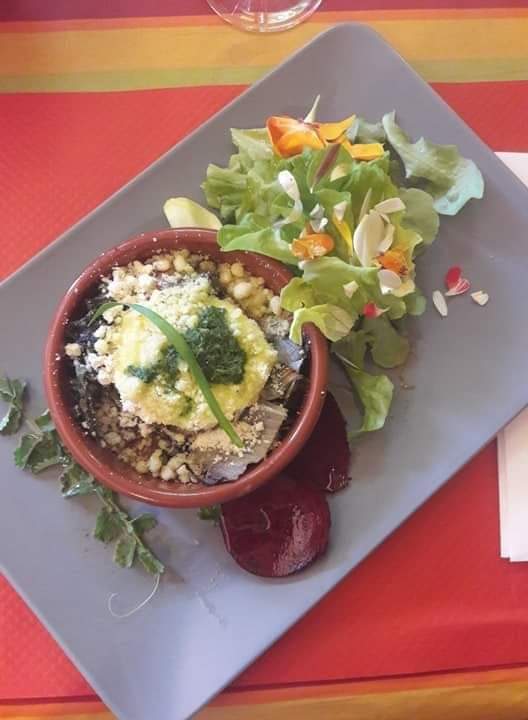 Endroit agreable ,cuisine simple élaborée avec des produits locaux bio de qualité. Repas accompagné d un tres bon vin