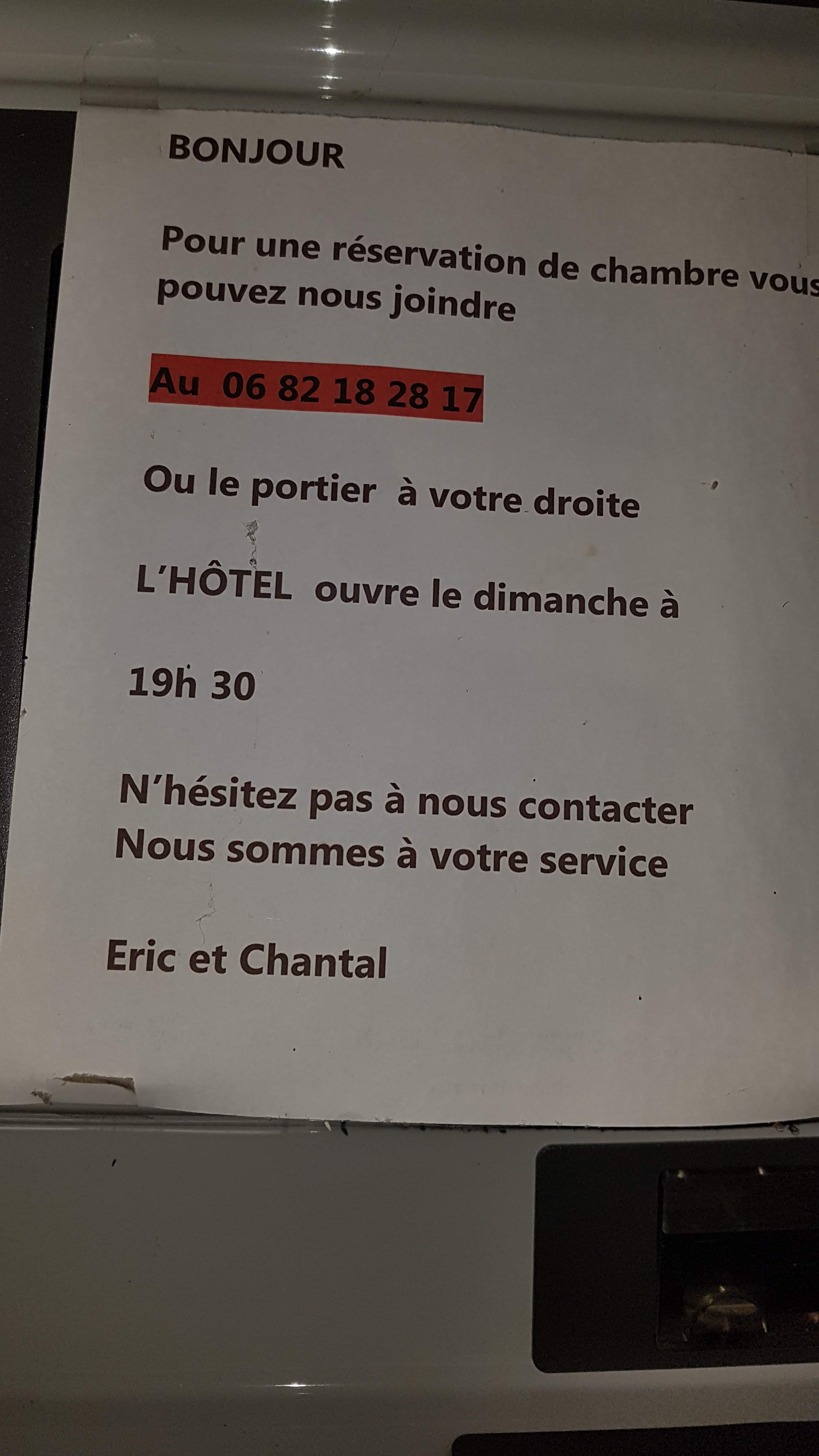 A priori seul l argent interesse ce couple, réservation faite, nous avons effectué un détour de plus d une heure de notre trajet pour qu' en arrivant , la gérante nous informe qu' elle a donné notre chambre a un couple. Nous lui avions précisé que nous avions confirmé et que nous étions avec 2 enfants en bas age ... Elle nous a réservé une chambre dans un autre hôtel à proximité (20km) et qui nous a également refusé à 1h30 du matin par craintes des étrangers. .. Chapeau bas et honte à vous madame. De toute évidence l hôtel paraissait assez vieillot mais ce n est a priori pas ce qui compte pour ce couple. Méfiez vous en cas de reservation surtout en période de vacances. .