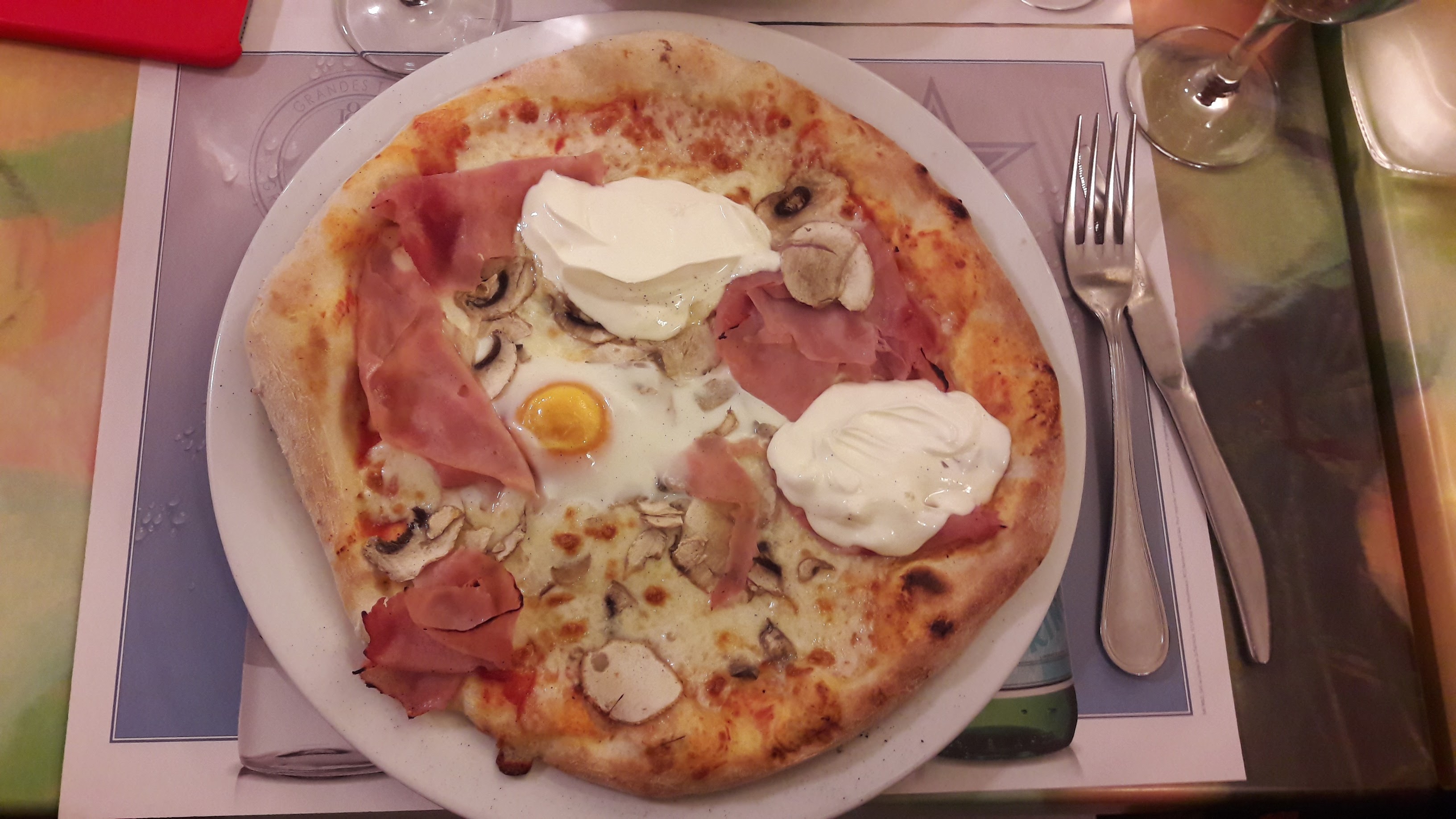 Par où dois-je commencer ? Je préférerais passer 20 ans au purgatoire plutôt que de manger ici à nouveau. Les couverts étaient visiblement sales. Vous pouvez utiliser la serviette pour nettoyer le couteau et la fourchette. Malheureusement, cela n'a pas fonctionné avec les lunettes. Complètement sale, ce sera probablement le point de départ du virus Covid-23. La pizza ne mérite pas son nom, c'est plutôt un gant de toilette sale recouvert de produits finis. L'œuf sur la pizza était encore cru (c'est étonnant qu'il n'ait pas fini dans la coquille). Je préférerais passer le reste de ma vie dans la jungle à manger des asticots plutôt que de manger à nouveau dans ce restaurant. Mon assiette a été emportée alors que j'étais encore en train de mâcher. Apparemment, ils n'ont pas assez de vaisselle, je ne peux vraiment pas imaginer qu'il en soit autrement.