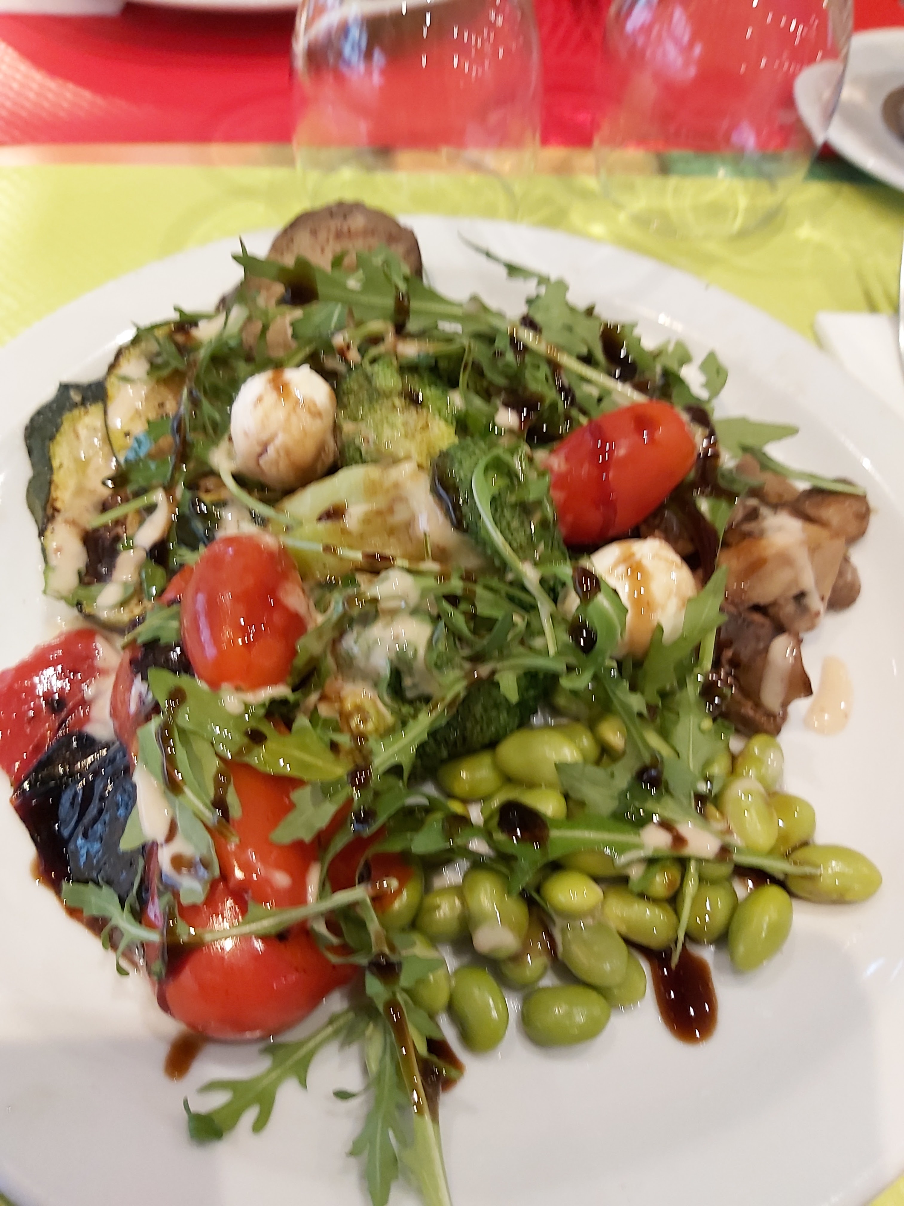 Lieu très agréable. Carte et menu variés dommage qu'il a fait trop chaud donc je n'ai pas fait honneur à ma gourmandise cependant la Salade de chèvre chaud était délicieuse. Salade fraîche, tomates également fromage de chèvre goûteux. Avec cette chaleur plat parfait. Ambiance italienne avec la décoration composée de très beaux tableaux. Bel endroit pour Amoureux ou familiale.