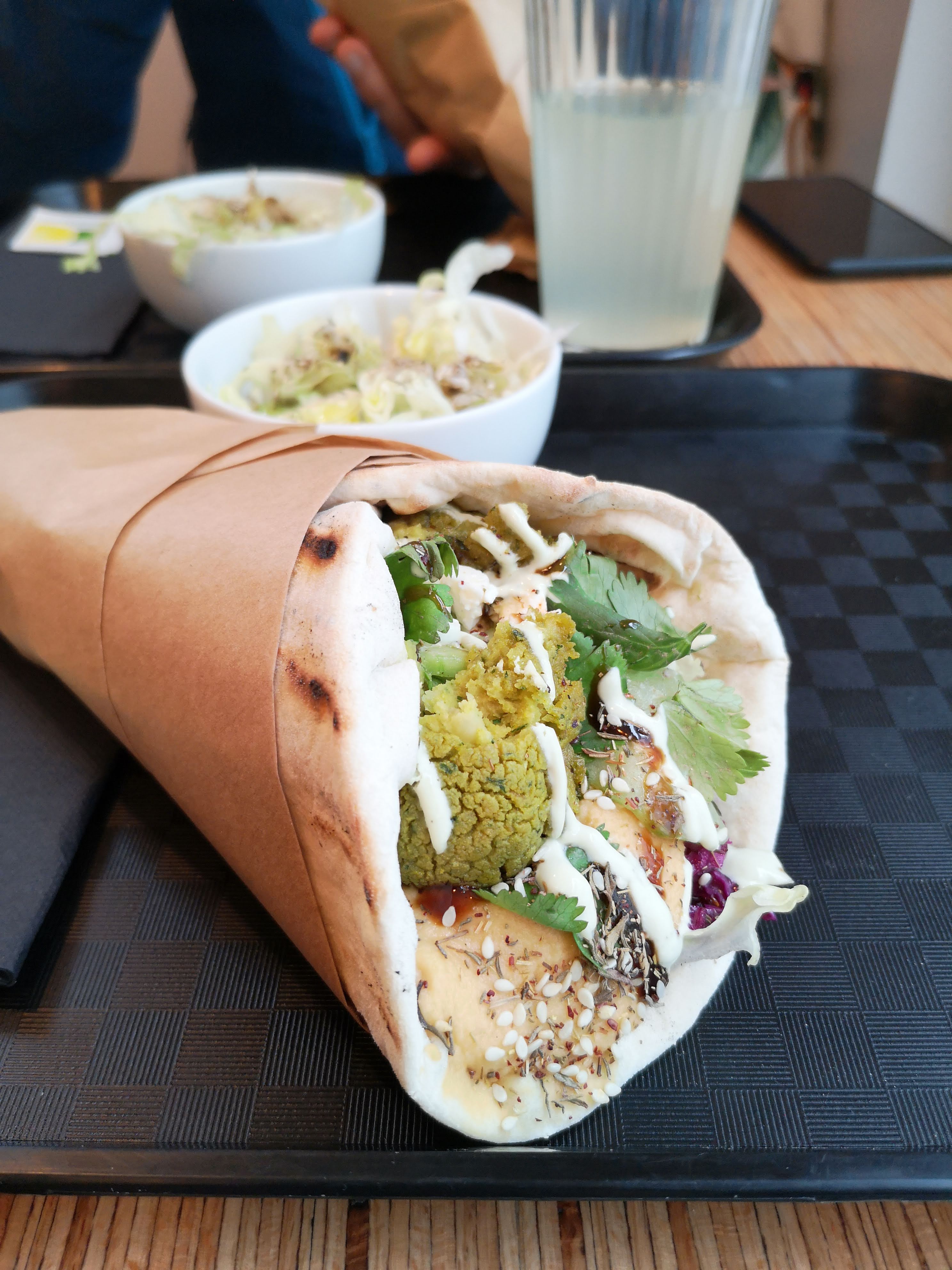 Personnel agréable. Pita falafel certes un peu cher au regard des ingrédients principaux mais très copieux et surtout très bon. Personnellement un sandwich suffit amplement à combler la faim.
