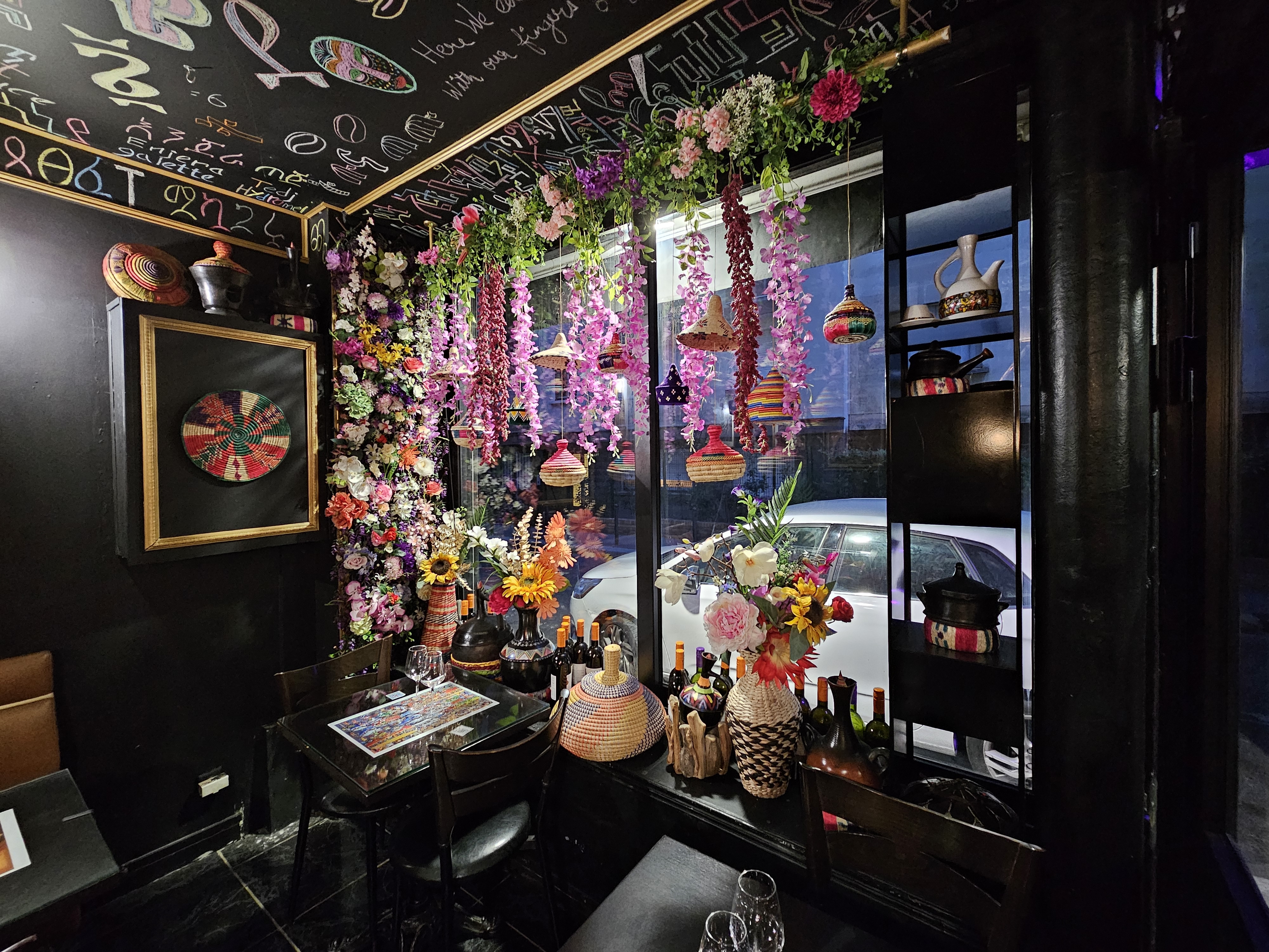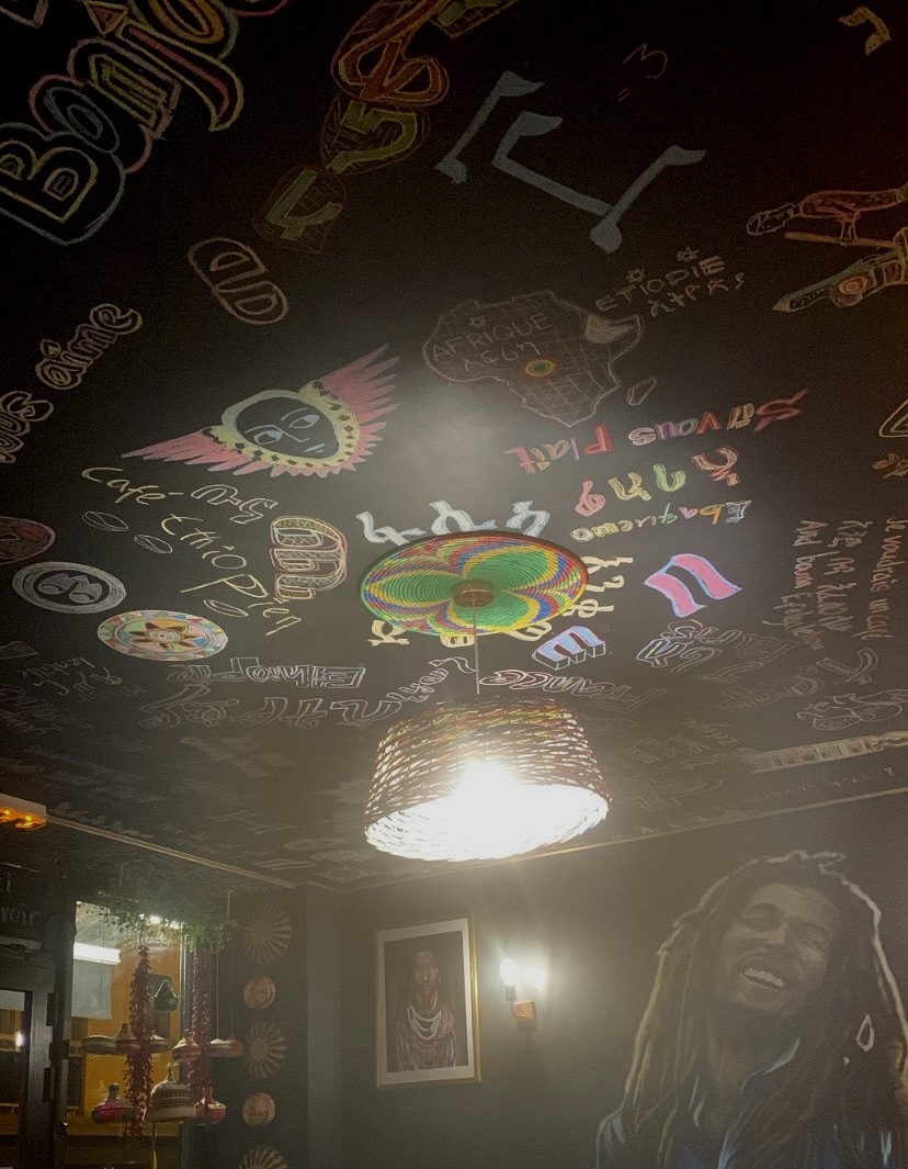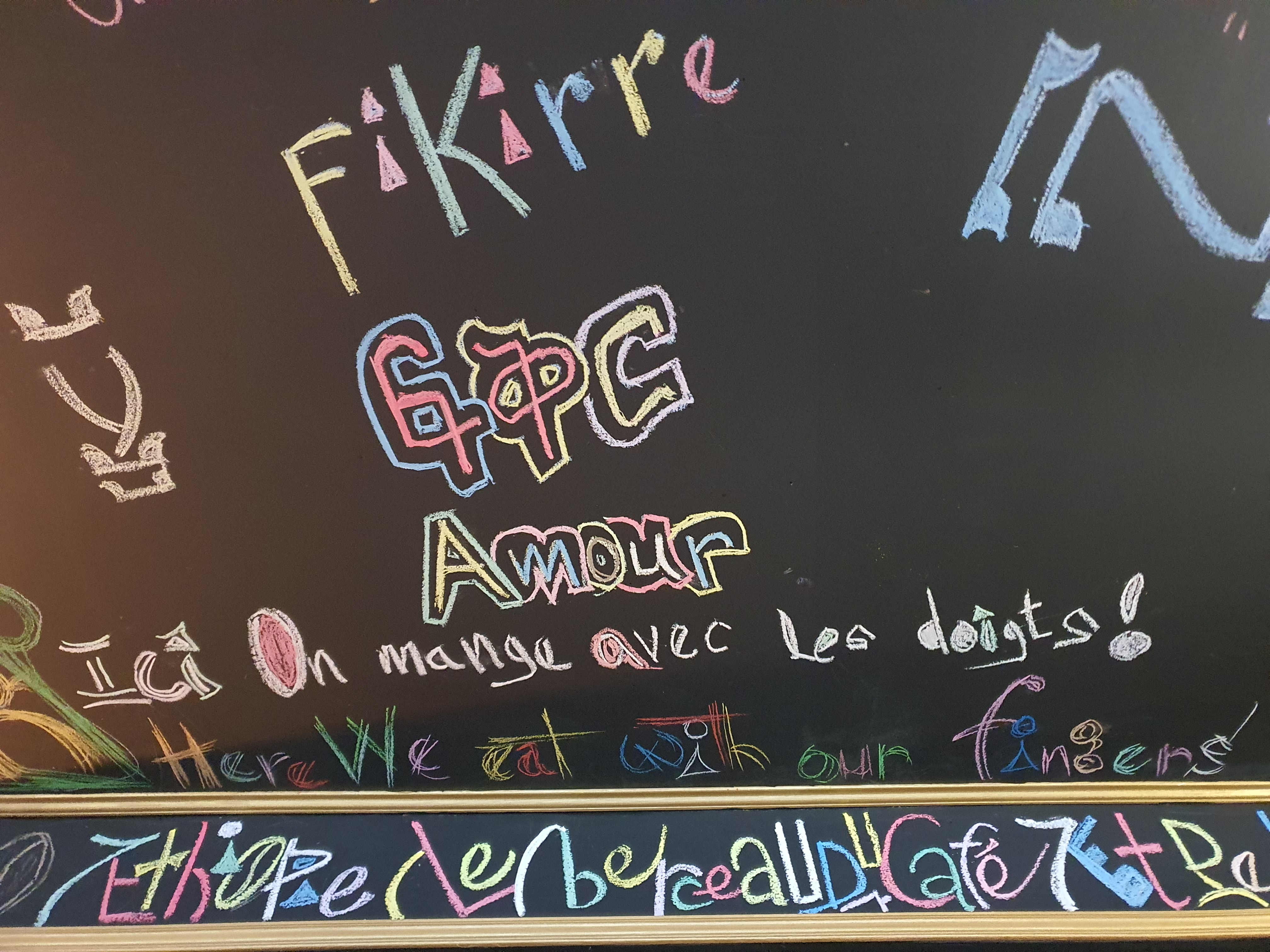 Les plats délicieusement épicés sont généreux et savoureux, le dépaysement des papilles est total. La décoration tout en dessins à la craie est inattendue et rafraichissante. J'ai plaisir à revenir dans ce petit coin d'Ethiopie, je le recommande sans modération.