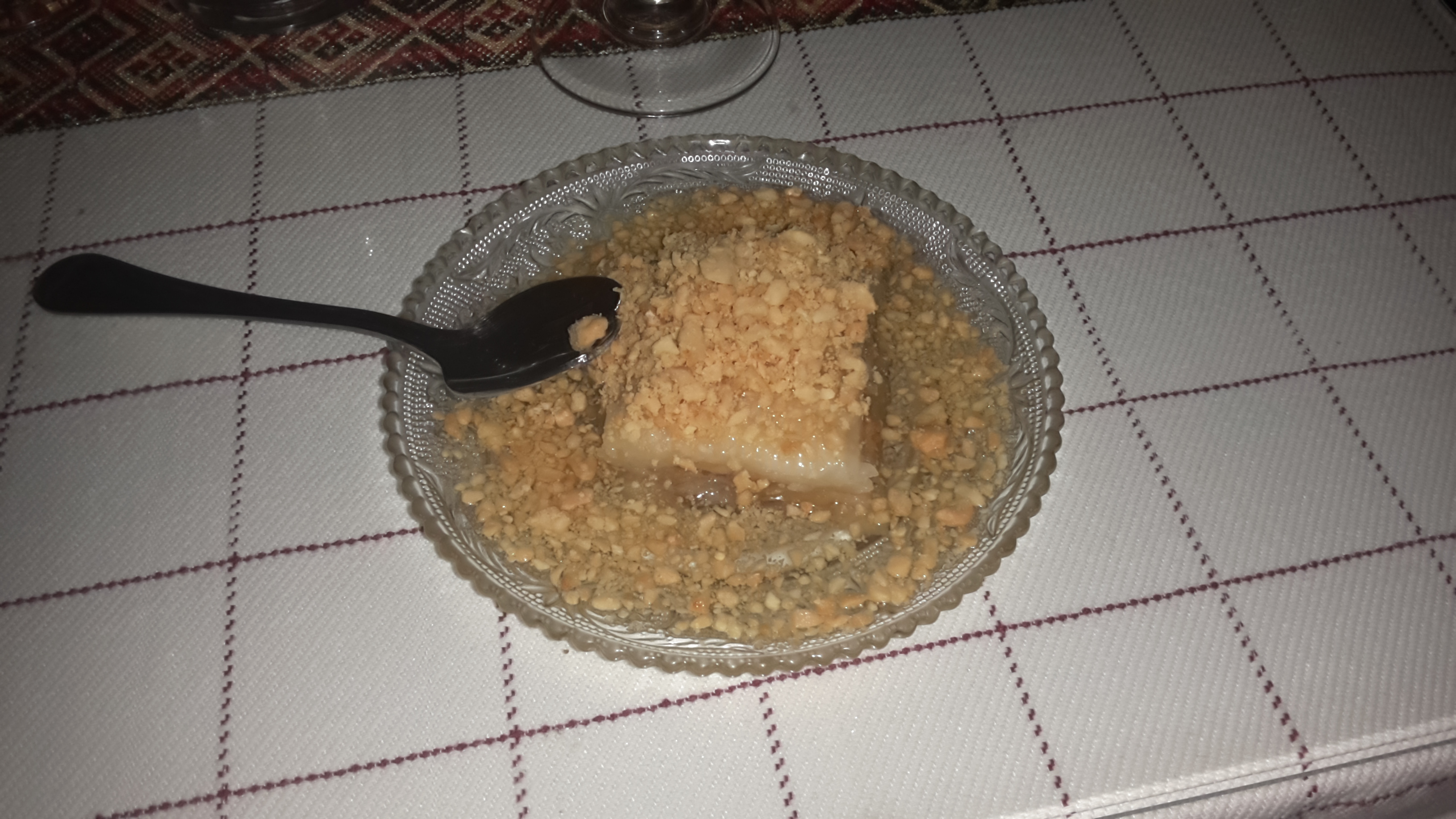 Une découverte ! Nous avons tous enfants et adultes apprécié le repas. ( jus de gingembre, goyave, mangue./ beyaynetou / baklava et café).