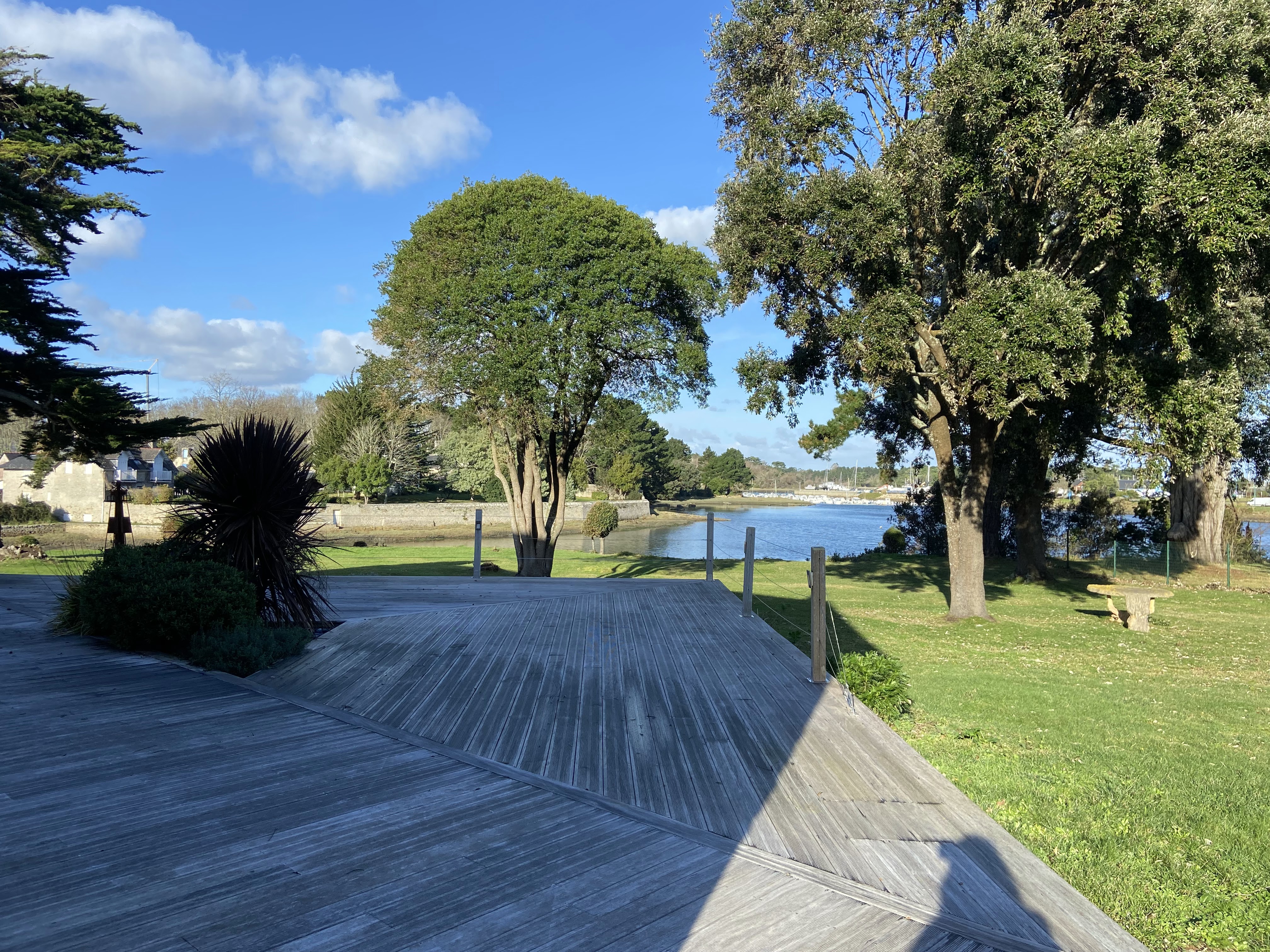 Agréable moment . Vue direct sur le port de plaisance au bout d'un long jardin .