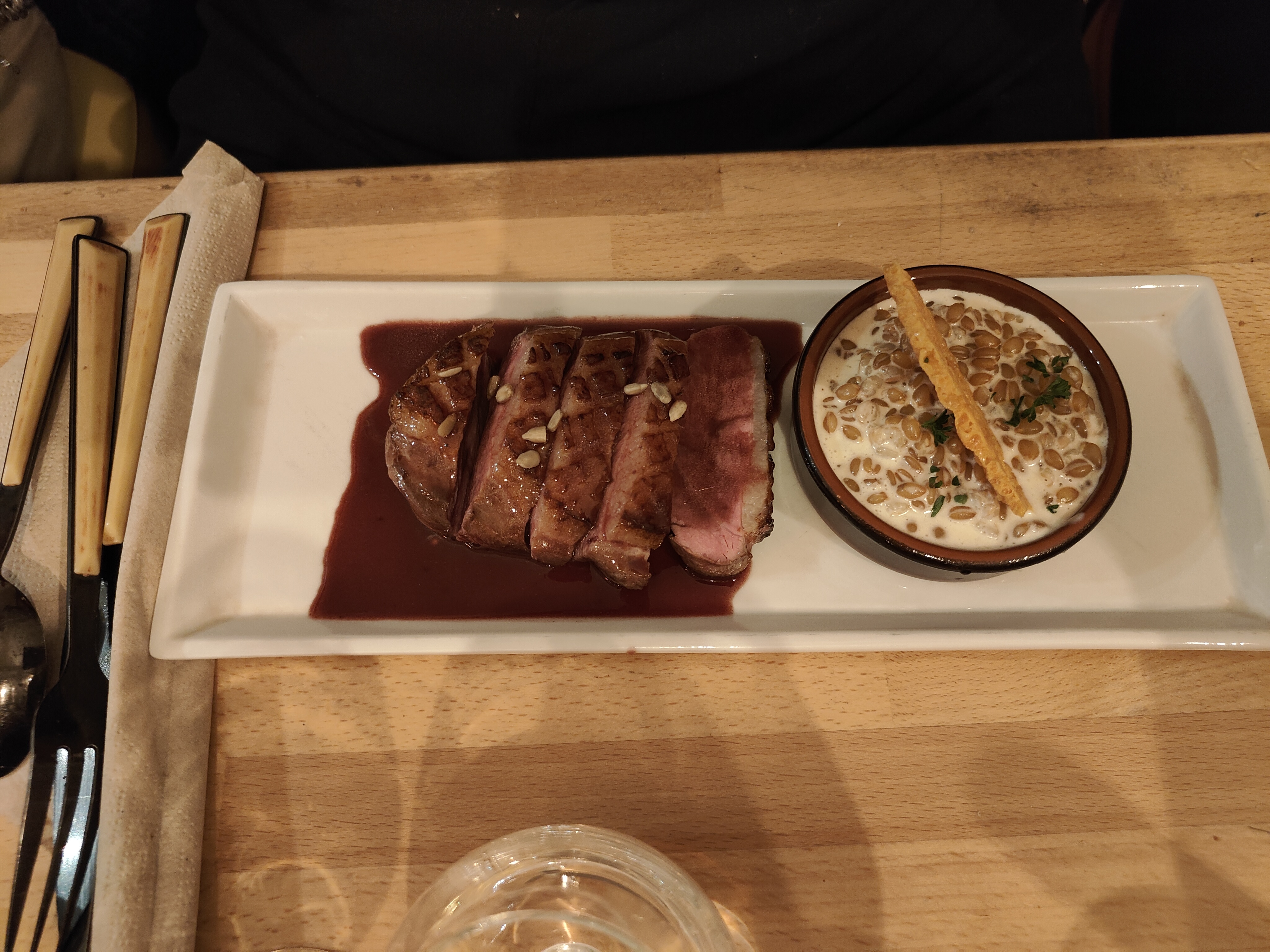 Accueil très professionnel et chaleureux. Le repas était bon avec des produits de qualité mais la quantité des accompagnement est légère. Le foie gras n'était pas à température et la tartine toute seule ne suffit pas. Le magret délicieux avec en accompagnement une purée en 2 coups de fourchettes elle est avalée c'est trop peu en garniture. Le dessert pomme caramel très bon avec un sablé très parfumé et savoureux. Une addition à 37€ qui aurait été top si la quantité était présente. Une jolie adresse mais il manque un tout petit rien pour être à l'excellence.