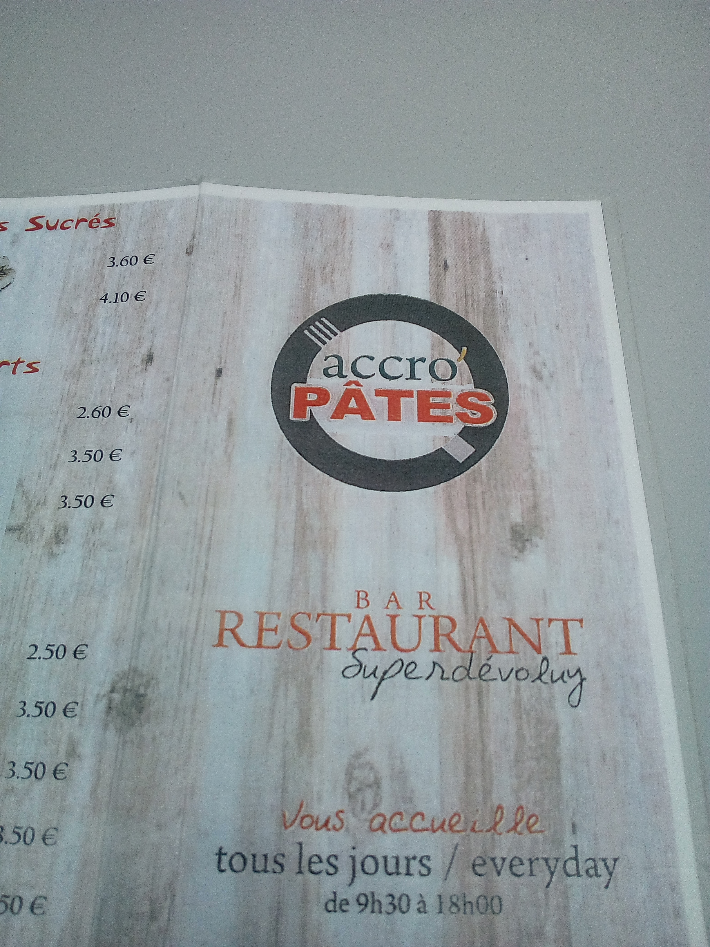 Un réel plaisir de passer du temps à l'accro'pates. Repas, goûter après les pistes ou apéro au top. Merci pour l'ambiance et pour l'accueil. A très bientôt Marjo et Nico