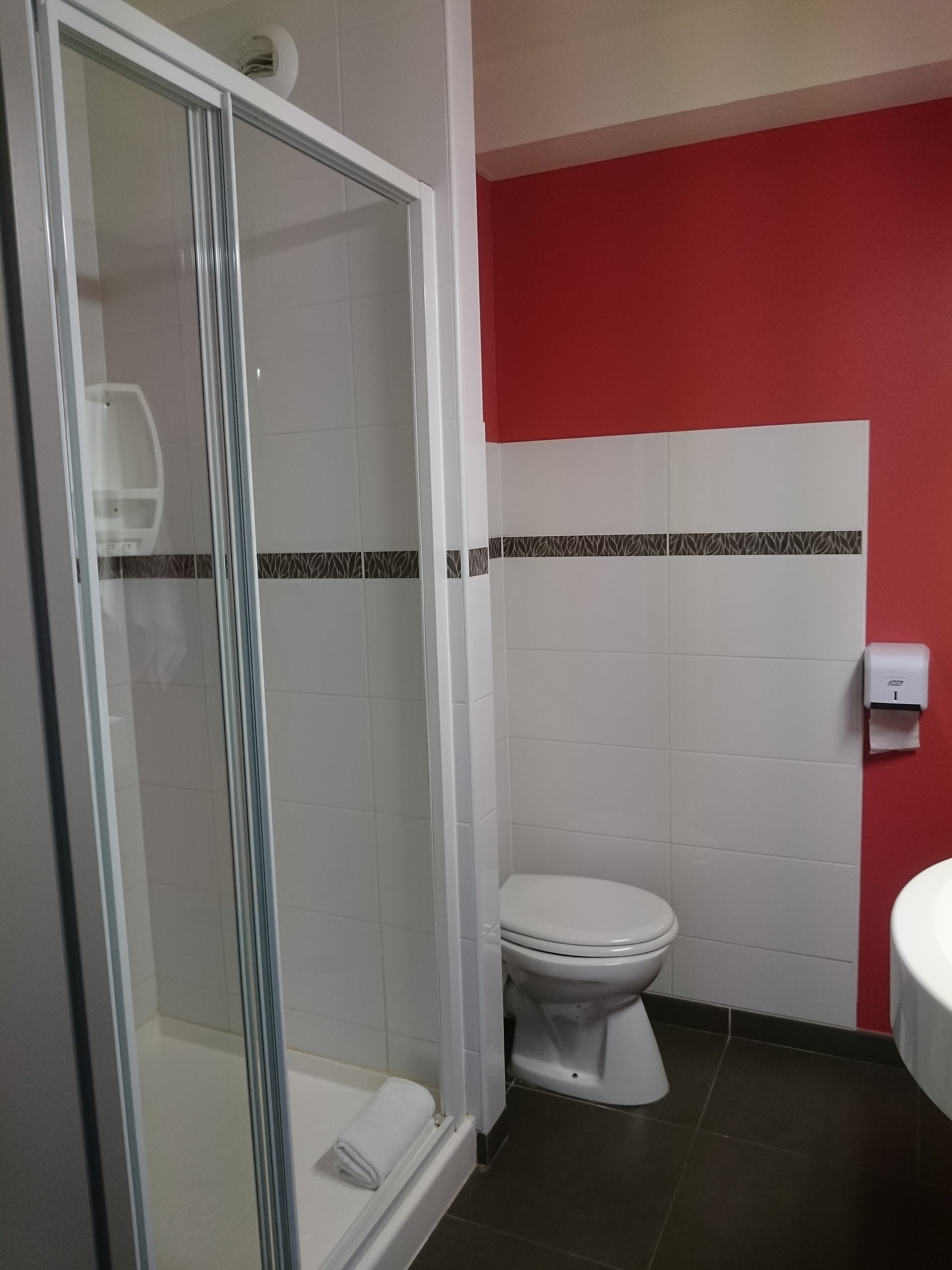 Nous venons d'y passer une excellente nuit. Hôtel en bordure de route, accès facile et grand parking. L'hôtel est parfaitement insonorisé. La chambre est propre, assez grande avec des rangements pratiques et suffisants. La déco est moderne. Lit en 160, confortable. Salle de bain assez grande, prévoir le gel douche mais 2 petits savons sont offerts et il y a un séche cheveux. Pour le prix, c'est très bien.