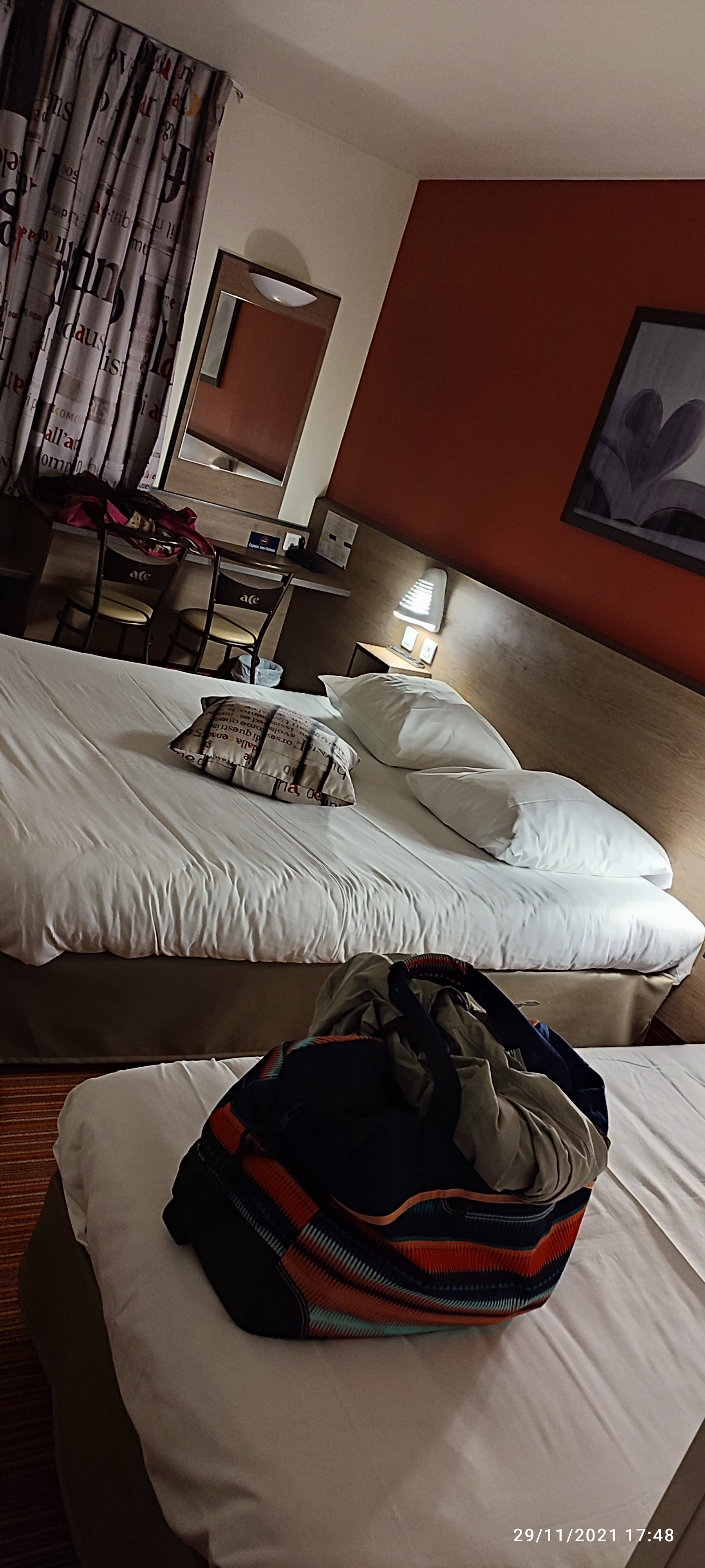 Hôtel calme, chambre spacieuse pour le prix. Tout le nécessaire d'une chambre d'hôtel. Juste une lampe de chevet ne fonctionnait pas. Je recommande.