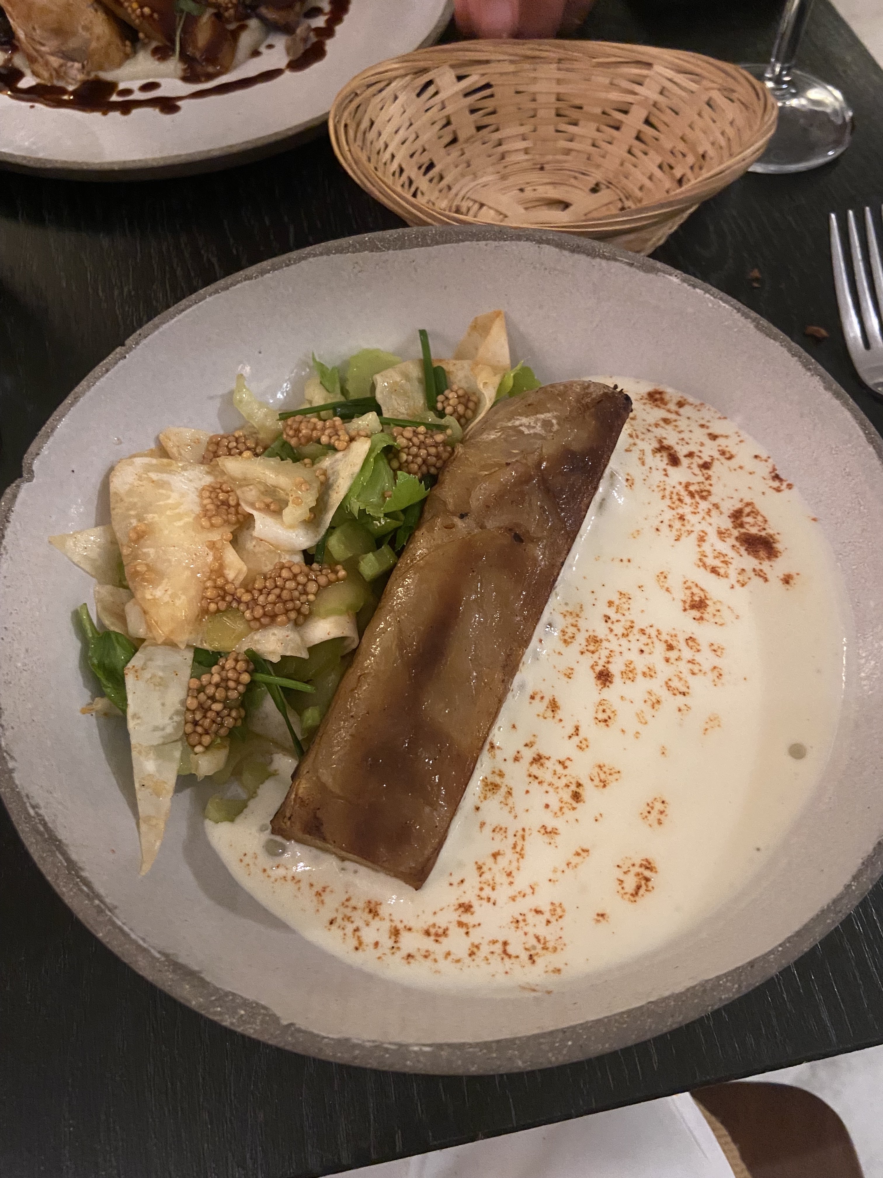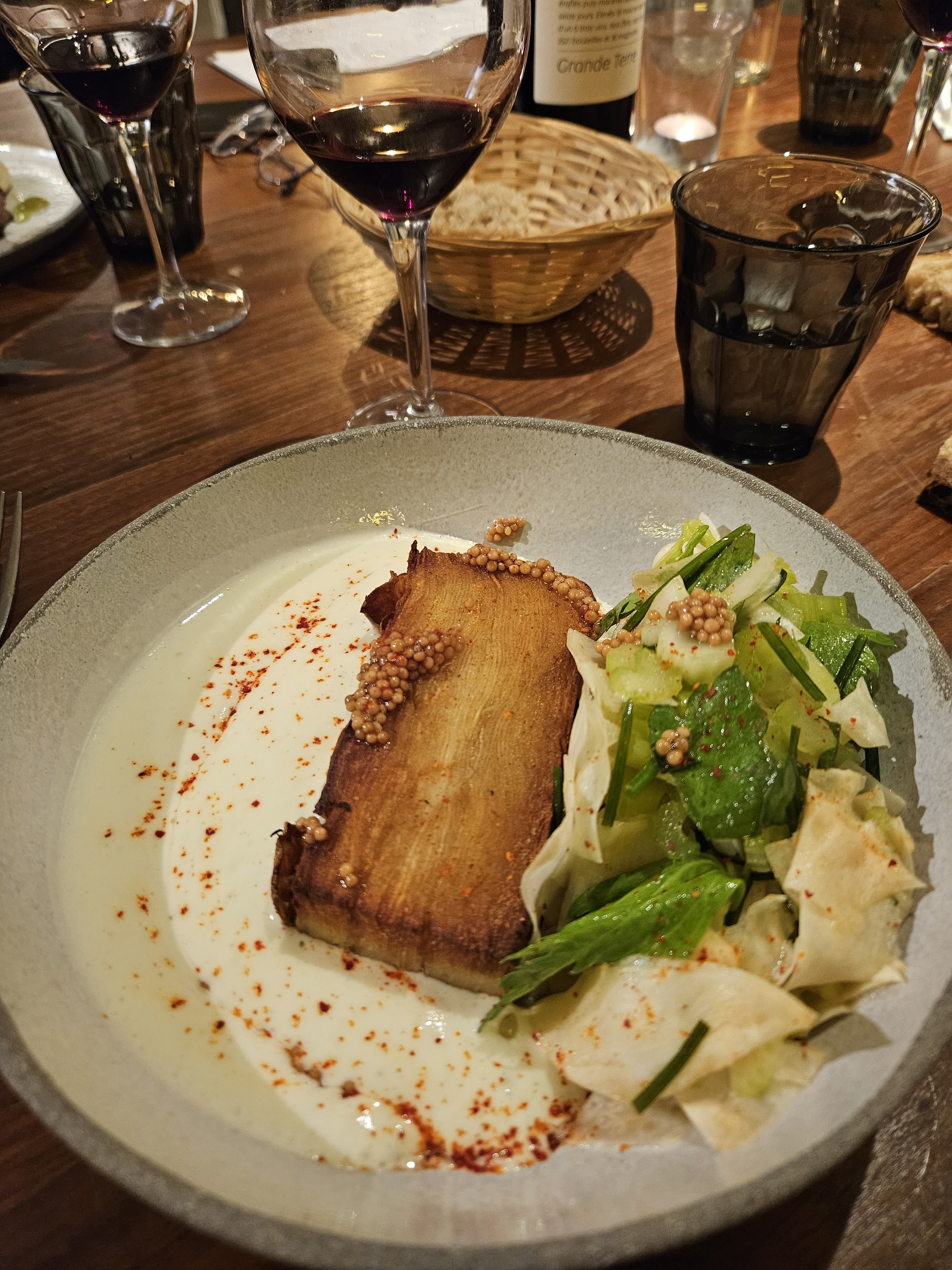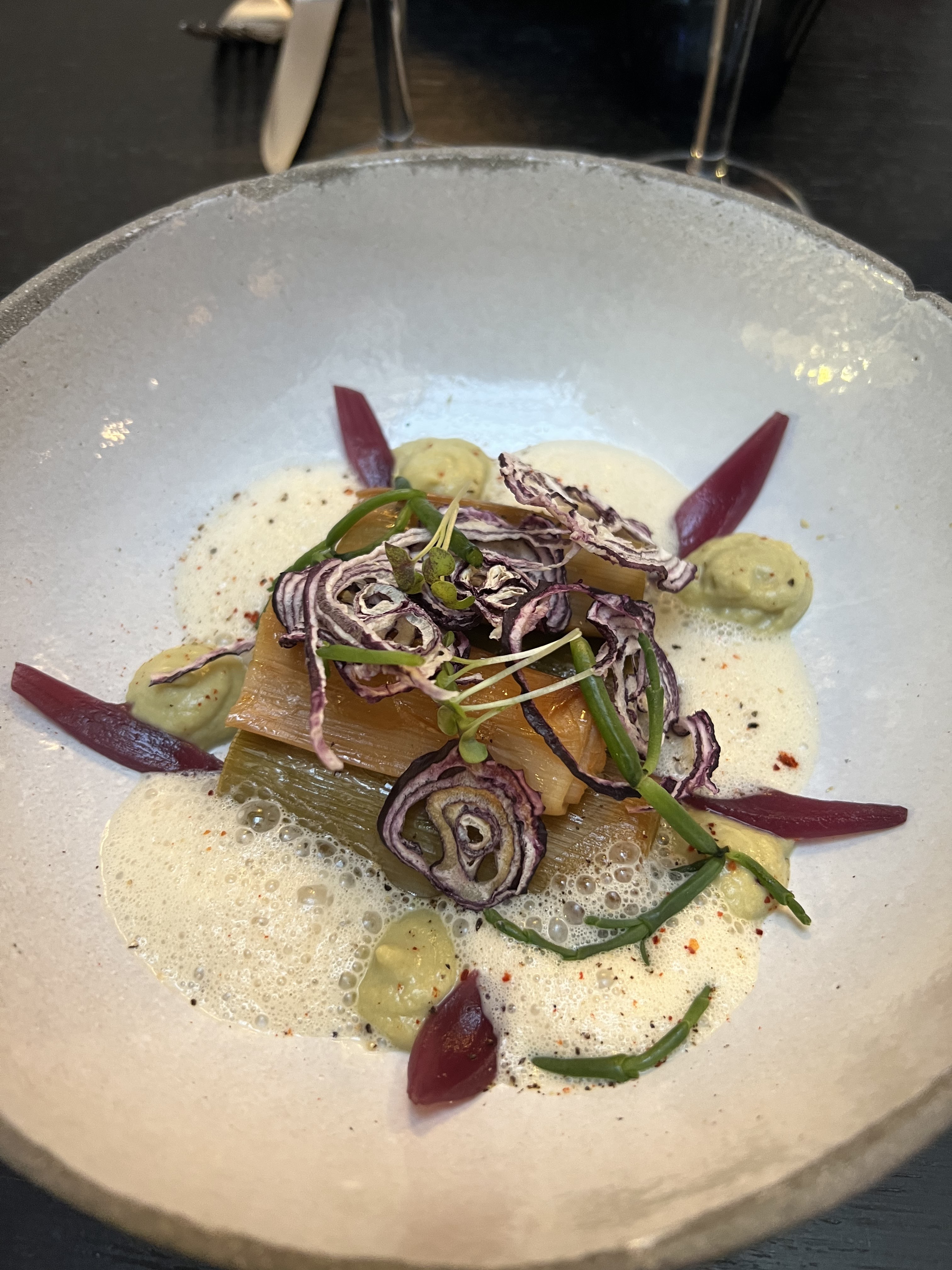 Excellente cuisine bistronomique de caractère ! Du goût et de la recherche. Des produits très frais. Précaution pour utiliser toutes les parties des légumes. Un régal ! Nous avons passé une excellente soirée ! Contente de ne pas avoir été placée tout au fond de la salle où il faisait vraiment très sombre.