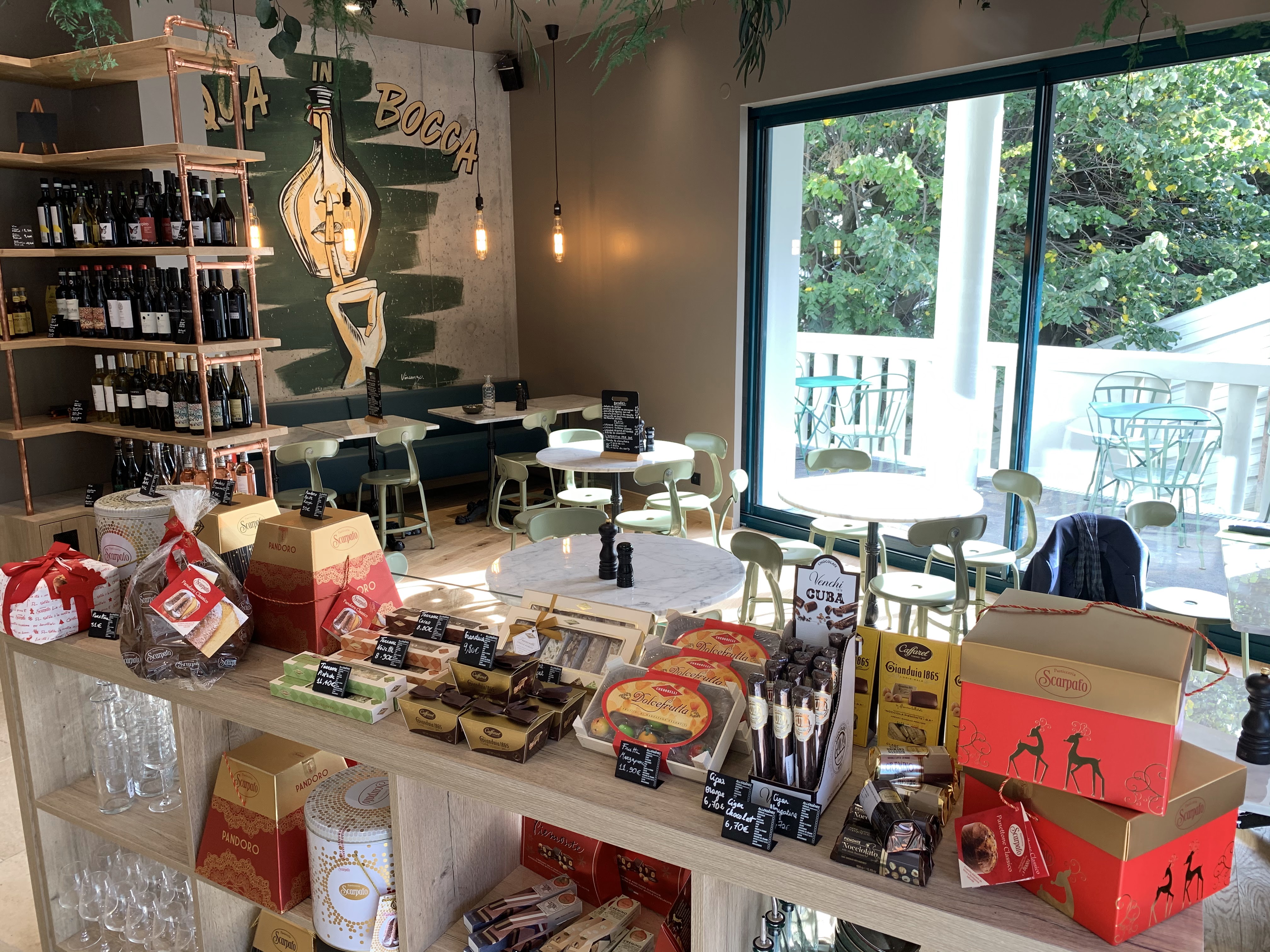 Très beau cadre, avec de très bons produits en épicerie fine.Delicieux plat de ravioles accompagné de lombrusco ainsi que le tiramisu.