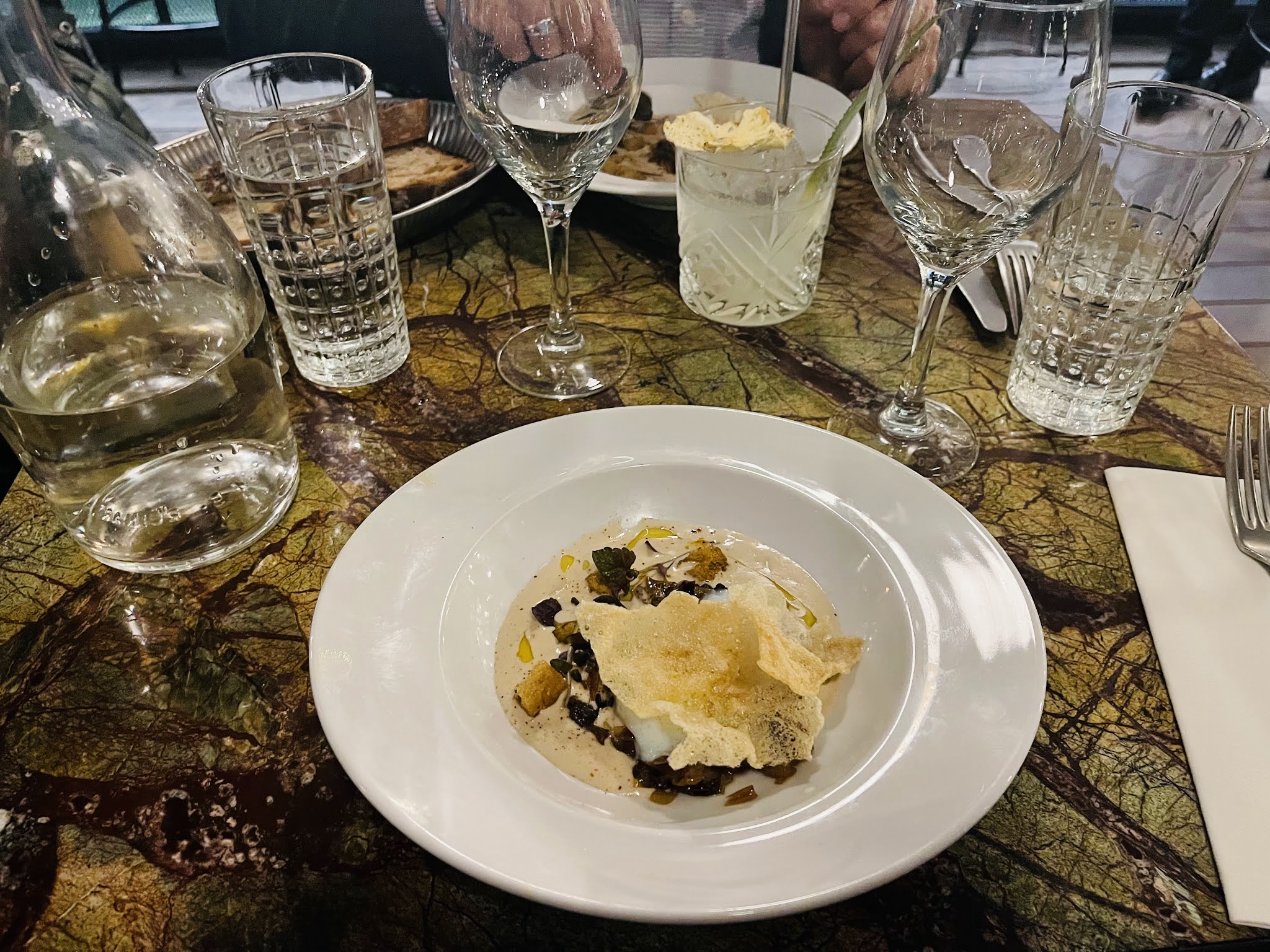 Lieu à la mode mais sans cachet, ni saveur. Très déçue : commande désorganisée, nous avons eu les verres après nos entrées. Commande expéditive. Plat peu gouteux. Je ne recommande pas.