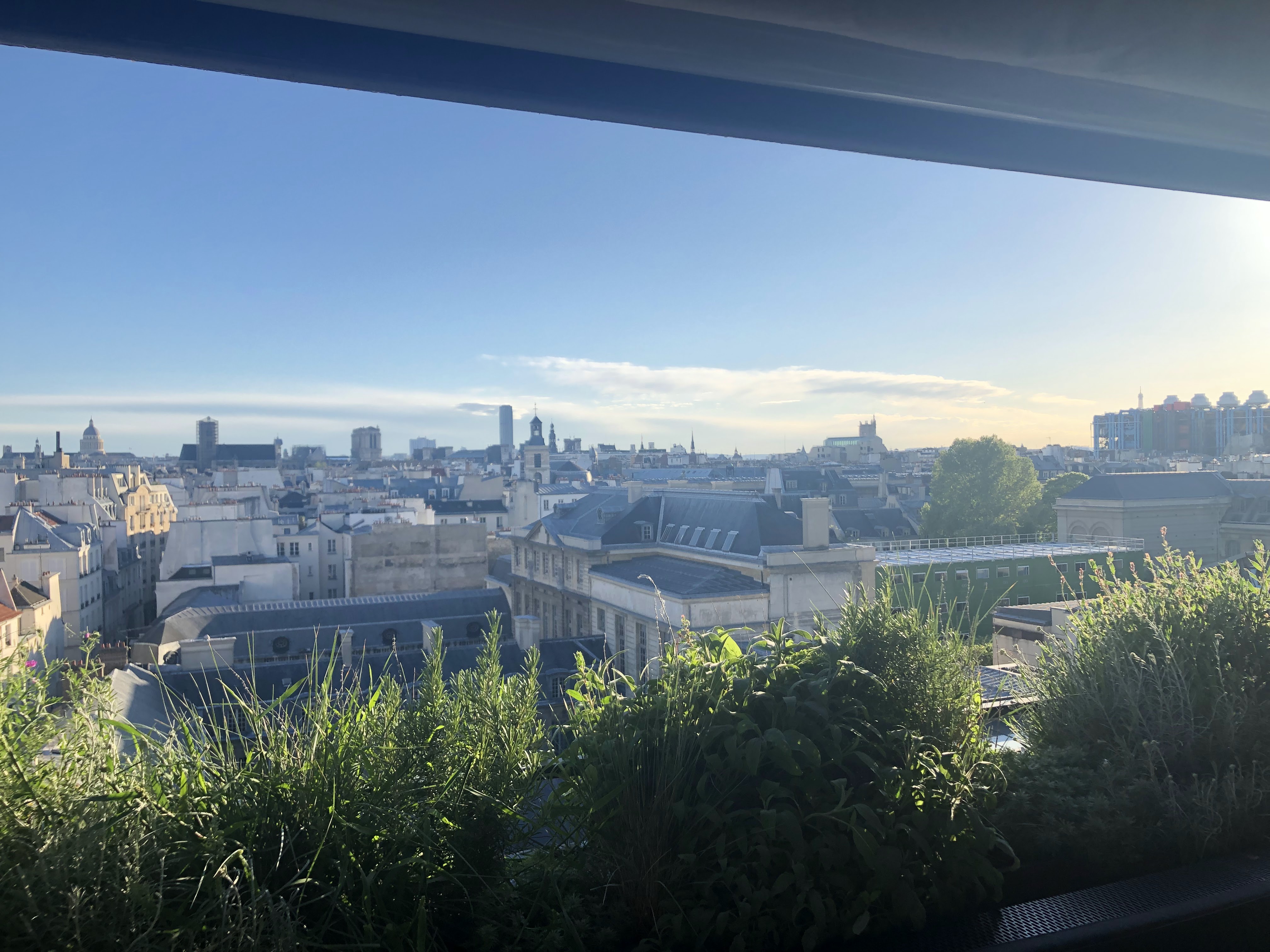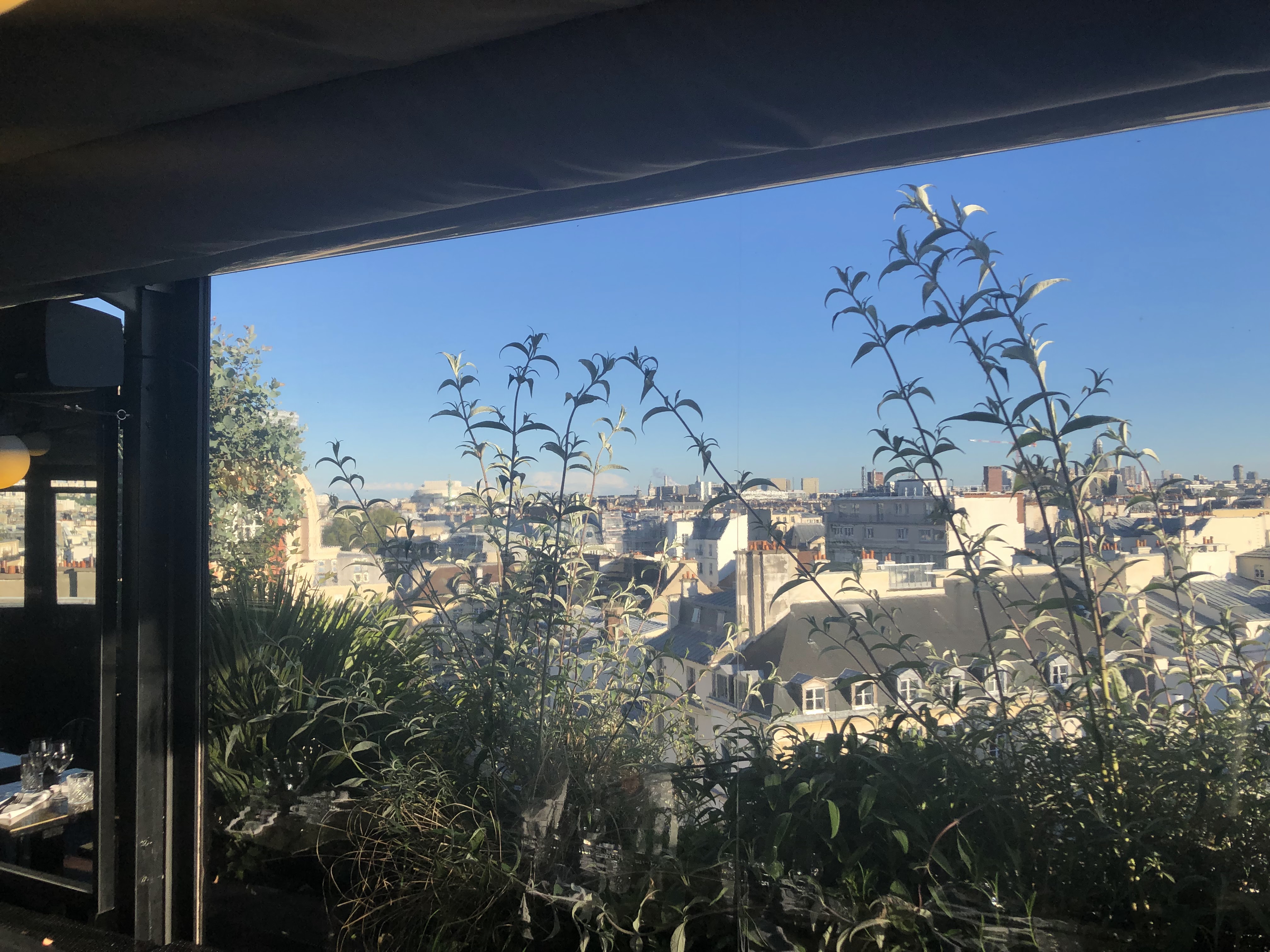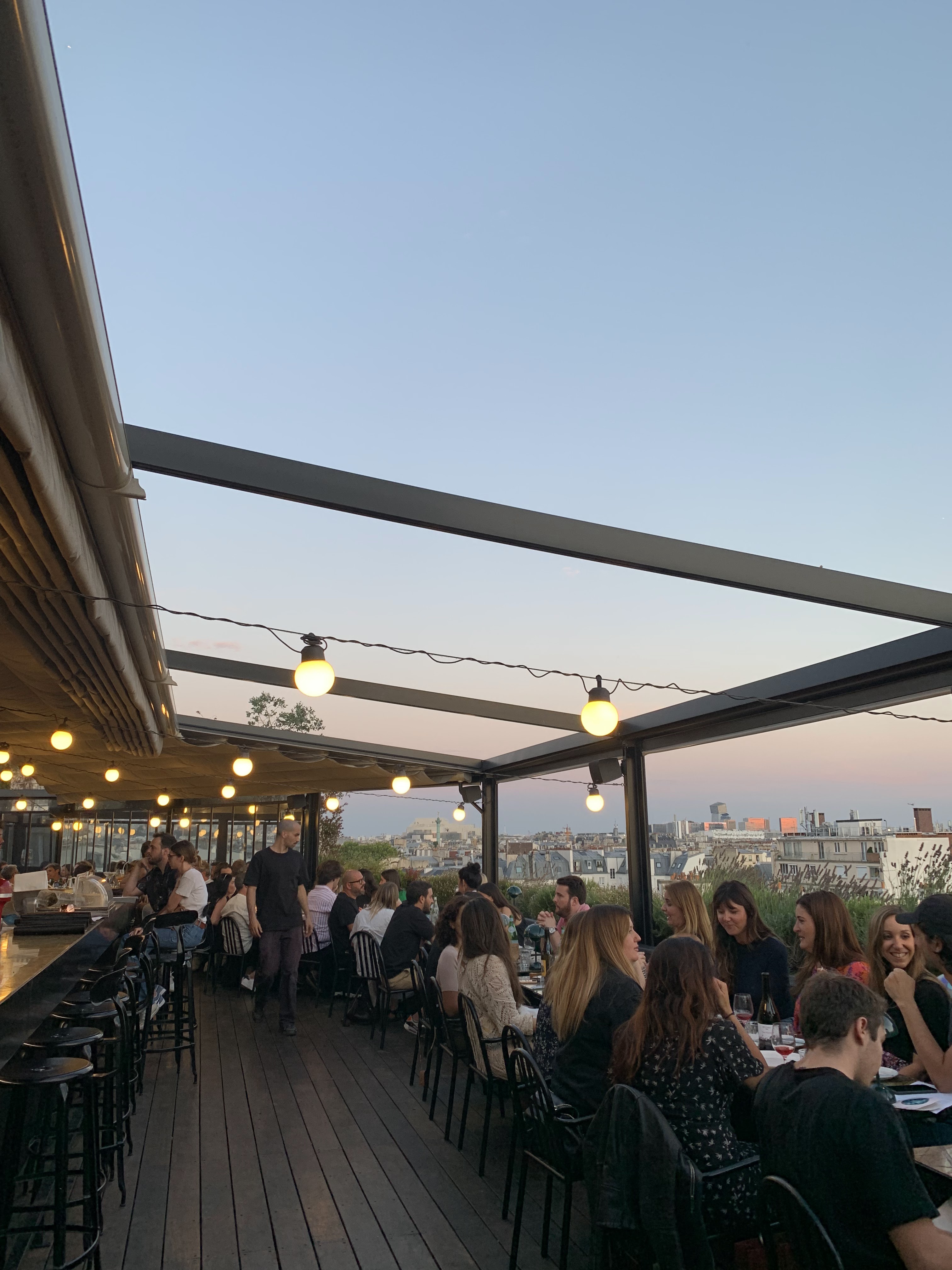 Lieu avec vue sur les toits de paris. Nous avons été très bien accueilli. Au niveau de la cuisine, les plats sont très bons (surtout les artichauts). Un petit bémol: les prix des plats ,qui restent cher. Allez y le cadre est super !
