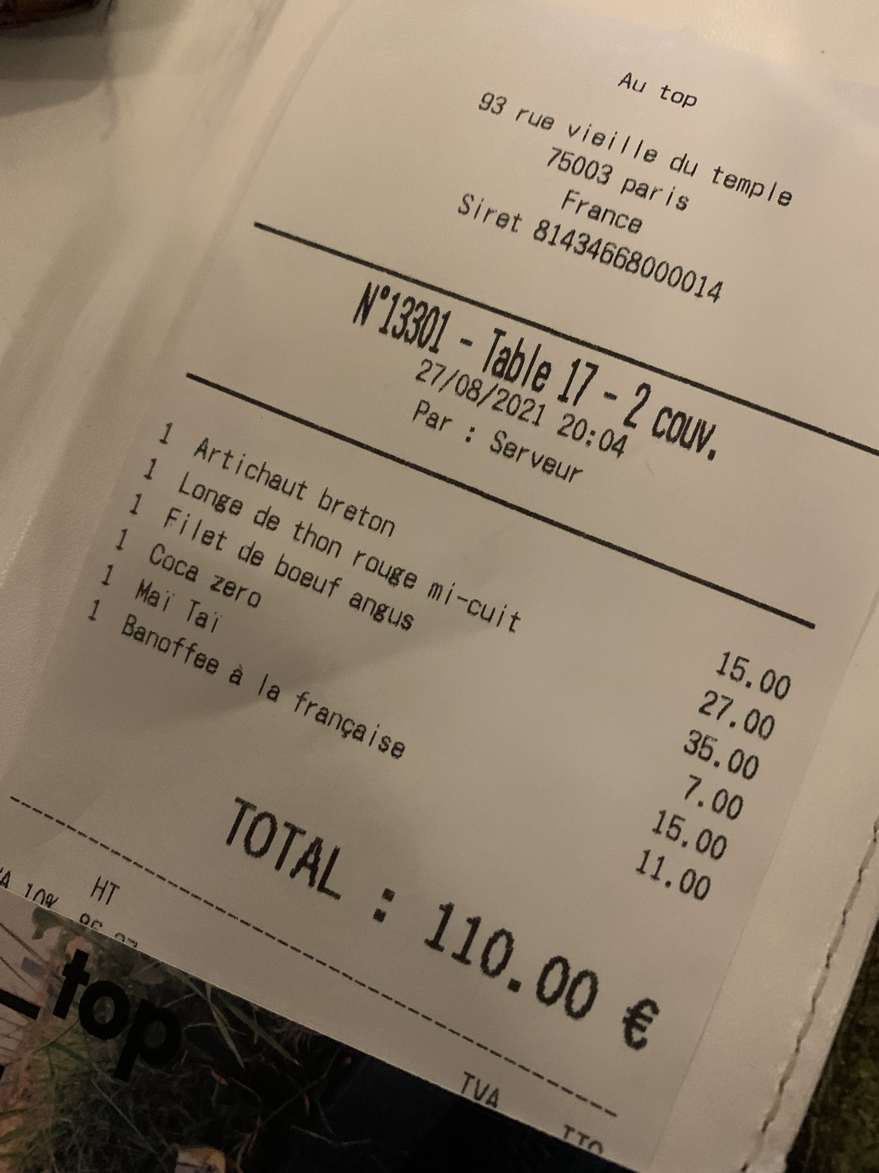 J’ai dîné pour la 2ème fois Au Top et je n’ai pas été déçu ! Les plats sont très bons, l’ambiance sympa, la vue magnifique... le prix est un peu cher mais pour une soirée spéciale c’est parfait !