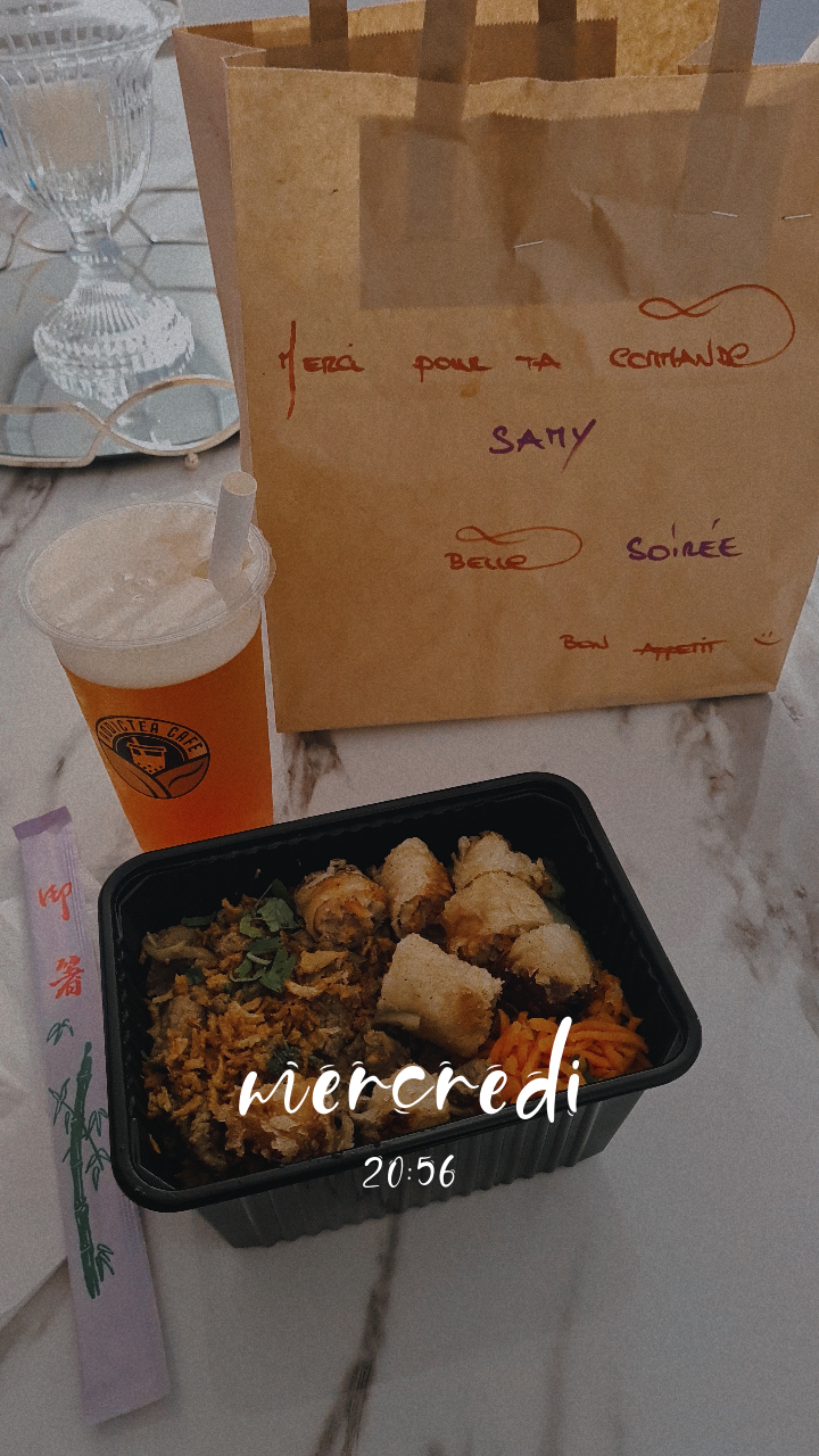 de la frappe, que ce soit les plats ou les bubbles tea ( si vous avez pas d’idee de composition laissez le faire 😉)