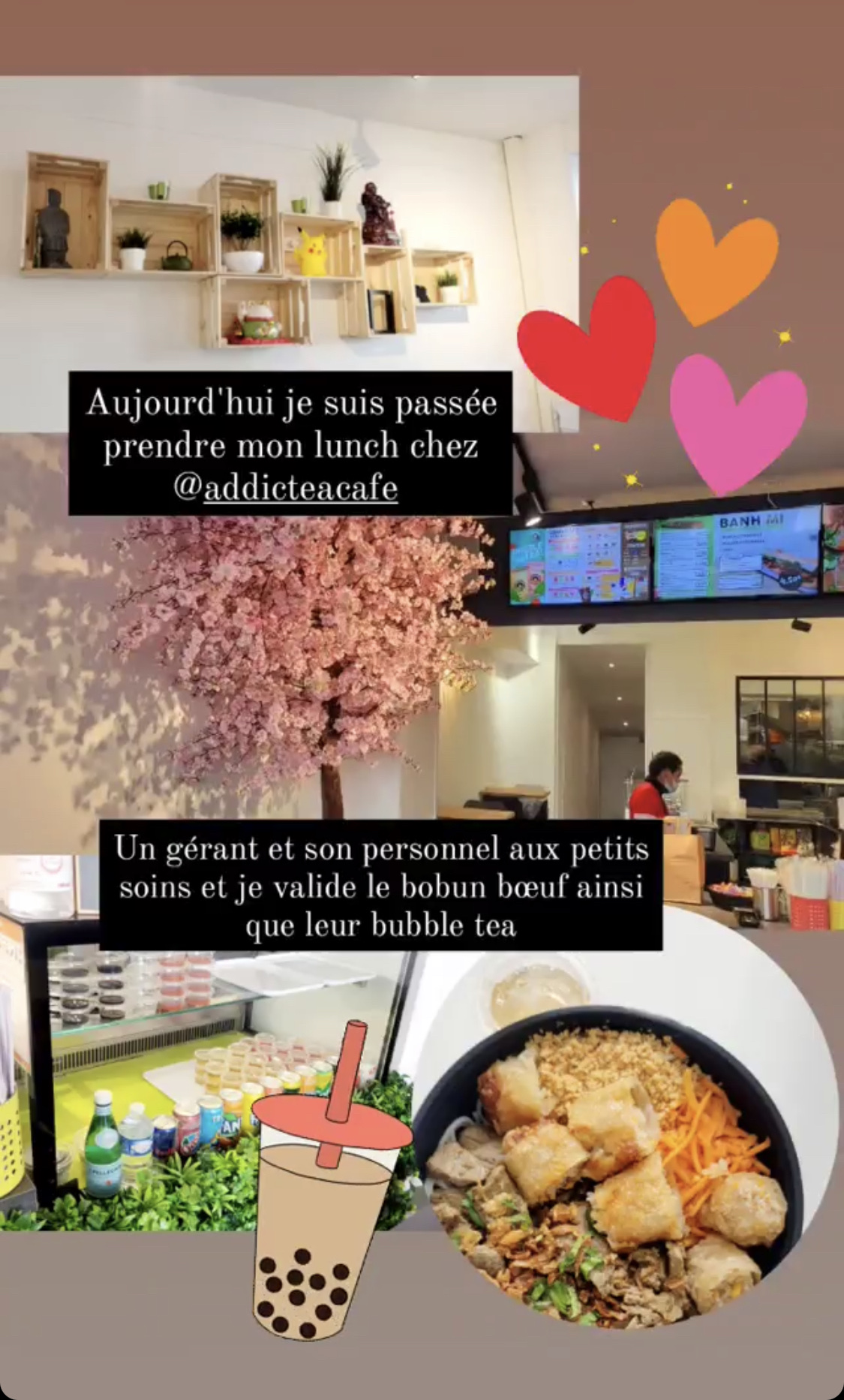 Je suis super contente Qu’un endroit aussi sympa ouvre à côté de chez moi! Fan de nourriture viet et de bubble tea j’ai bien du goûter la moitié de ceux de Paris 😂 et franchement le original brown est magnifique, les plats aussi ( je le ai tous goûté) et pour couronner le tout l’équipe est super sympa ! Merci merci je suis fan et je recommande à tous mes amis du coin