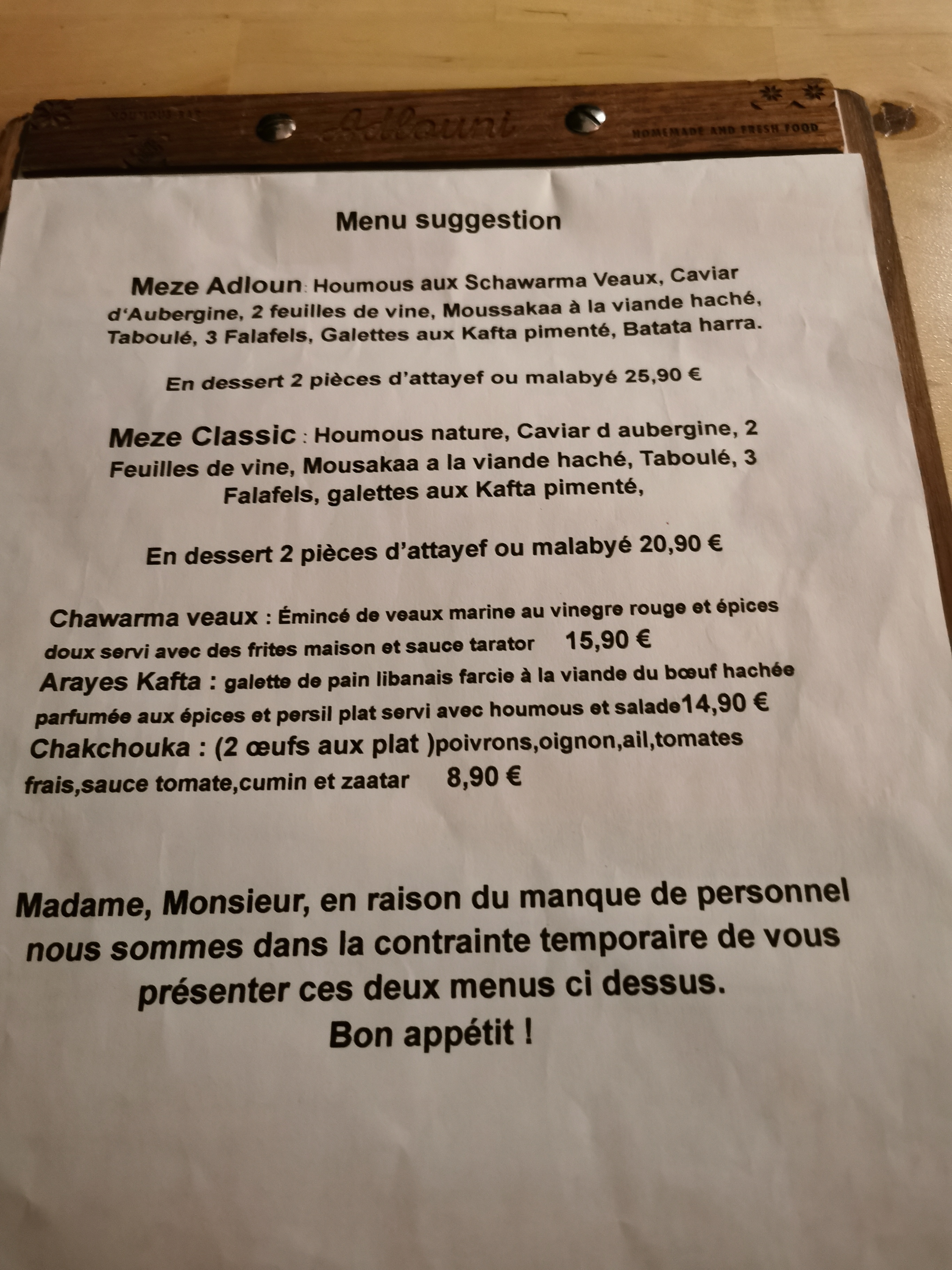 Service null. Attention à l’arnaque de mezze affiché 23euros facturé 46