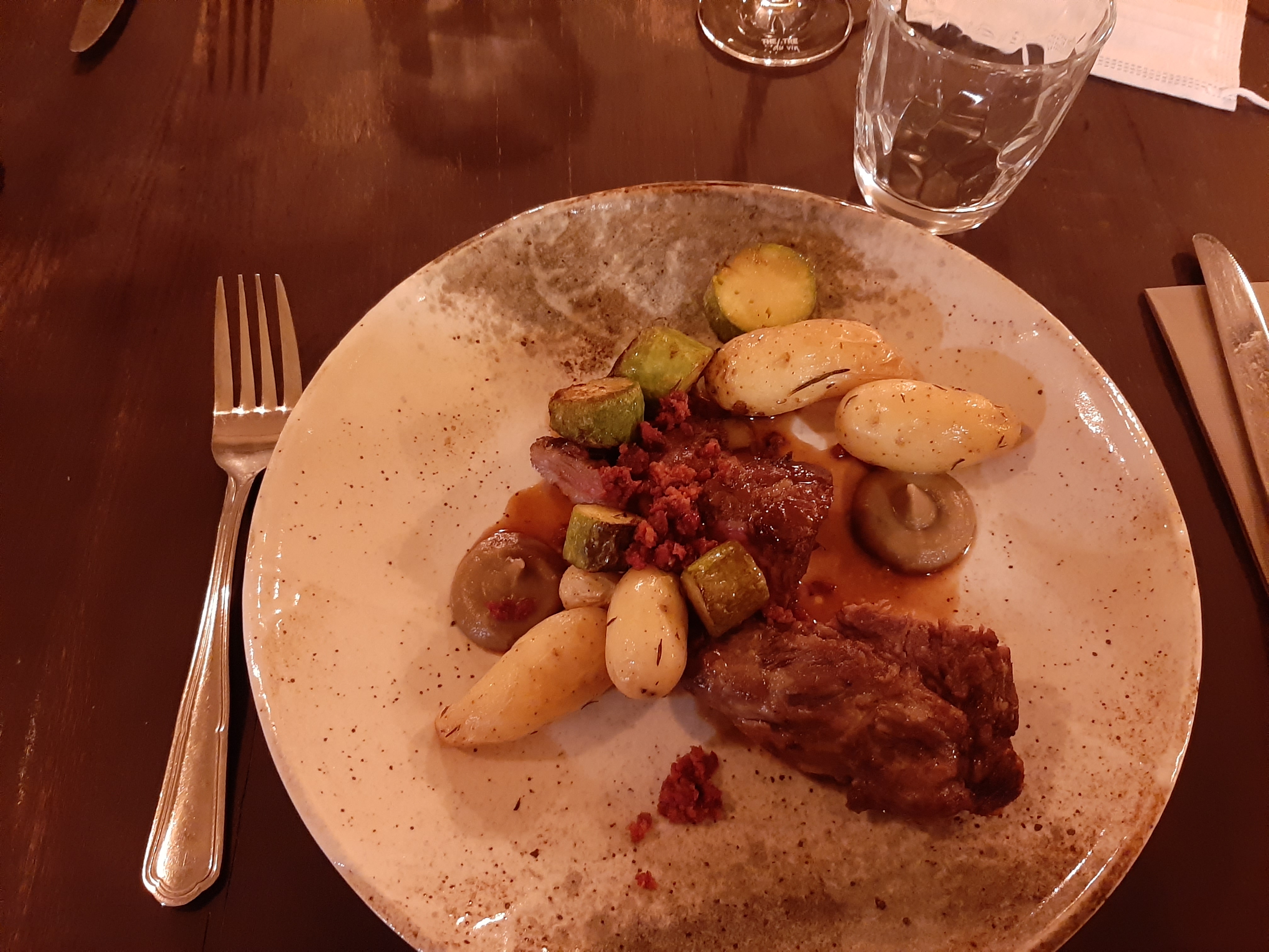 Je ne peux pas mettre plus que 2 malgré les mets délicieux. Service déplorable, quel dommage ! Vous devriez aussi rachetez quelques verres à vin rouge 😉 ça manque de vaisselle ! Ajoutez sourire et politesse.