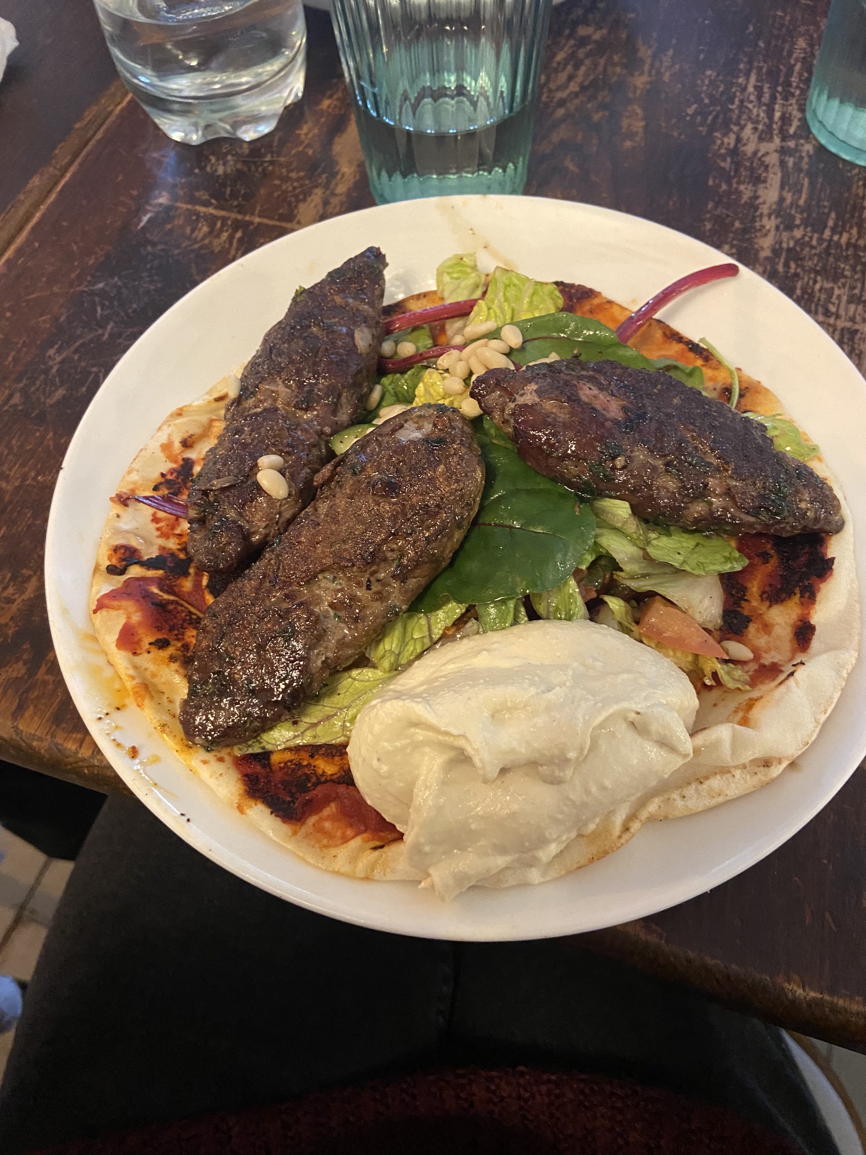 C’est TRES bon il n’y a pas à dire mais le prix n’en vaux pas la chandelle. 19euros pour un peu de viande, de la salade, du pain et du houmous… franchement j’avais encore et pourtant je me suis gavée de pain. Je n’en ai pas eu pour mon argent. Je suis ultra déçue
