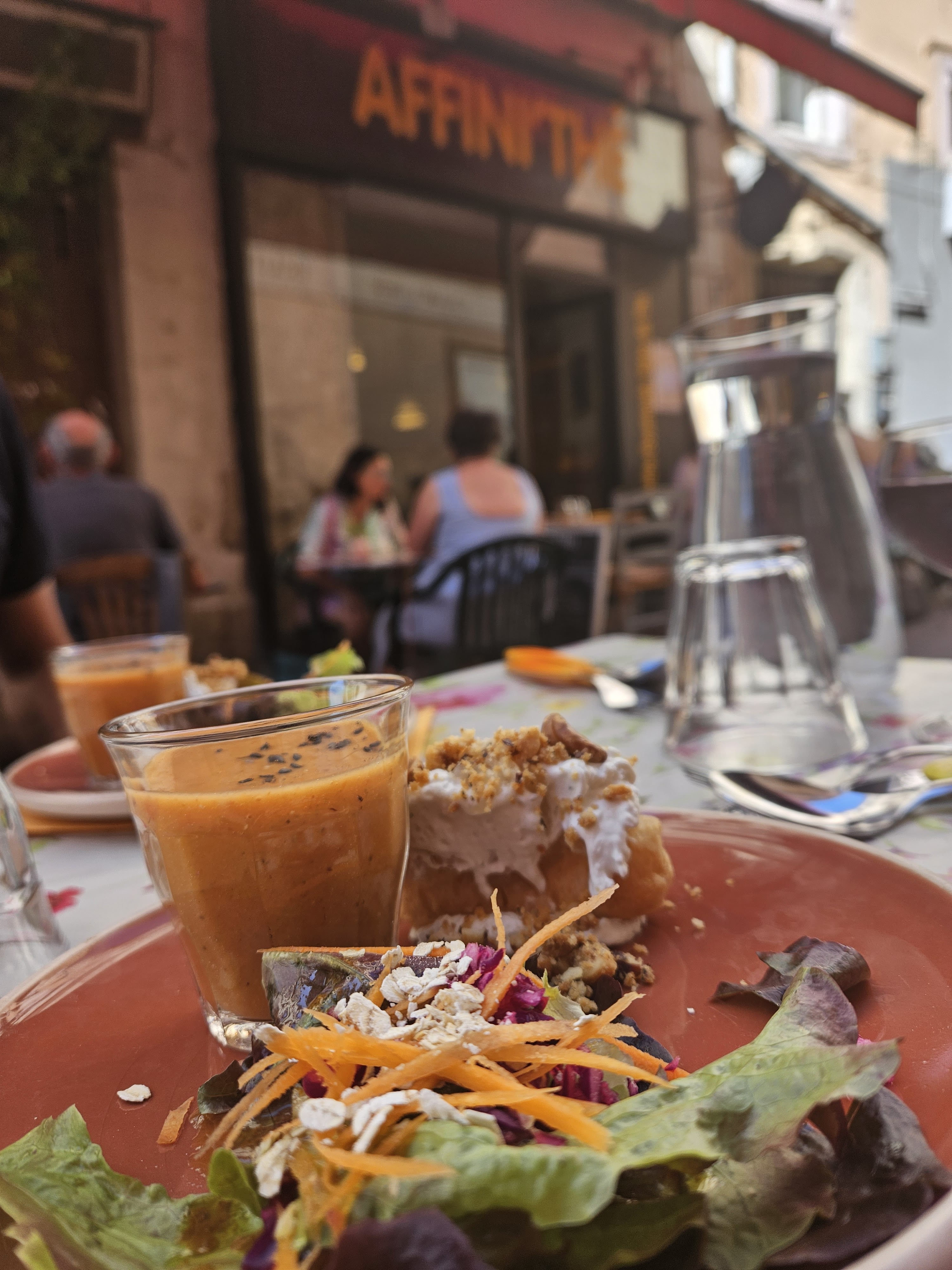 Entrez dans l’univers de Céline et Jean-Guillaume ! Ce que je retiendrai principalement de cette expérience, outre l’accueil chaleureux, les produits frais en circuit court, les saveurs surprenantes et rencontrées nulle part ailleurs, le cadre agréable que ce soit en terrasse au cœur du centre historique où à l’intérieur soigné et cosy… … Je retiendrai que Céline et Jean-Guillaume ont vraiment envie de faire plaisir à leurs clients et cela se ressent sur tous les plans… BRAVO et MERCI !!!